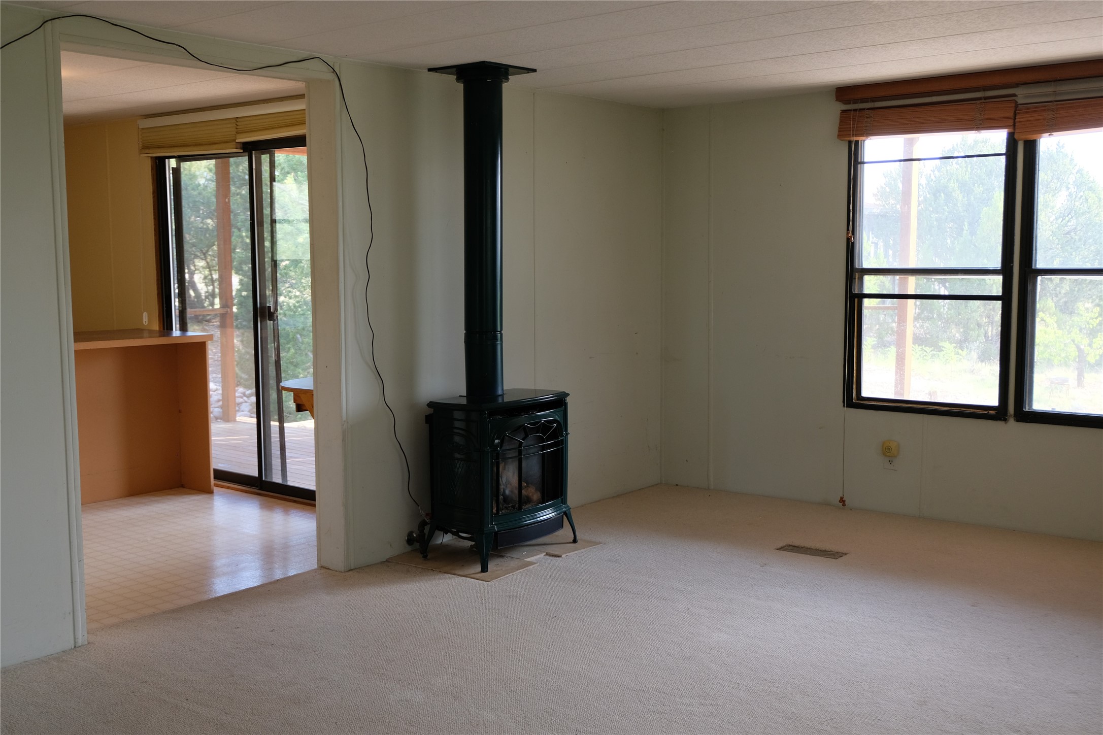 ***Will not finance, must be a cash purchase*** 4.3+ Acre Lot with 2 Bedroom 1 Bath Mobile Home & both Sangre De Christo and Jemez Mountain views! 850 Chicoma Vista is poised just outside the reach of the city and all those pesky HOAs, in the Village of Agua Fria where it enjoys Res-E (Residential Estate) zoning. With an architecturally notable home already sitting next door, this parcel is prime for thoughtful development, or could be kept untouched to continue to provide sanctuary to the wild quail and jackrabbits that traverse this special land.A site built studio with clearstory windows and electrical service sits adjacent to the long driveway's turnaround, and a spread of beautiful trees and native plants creates a natural courtyard on the way to the residence. The mobile home is livable, and will benefit from some TLC/updating from the next owners. A defining feature for the home is the ample covered porch space, inviting you to make the most of Santa Fe's incredible weather. The bedrooms and back porch enjoy a view out to our iconic Sangre De Cristo mountains, and the front and side porches cradle the home with 300 sq feet of outdoor dining space, seating options, and sunset views over the Caja Del Rio and to the Jemez Mountains in the distance. Built and titled in 1984, and never affixed to a permanent foundation, financing may not be available for the mobile home- check with your lender or plan on bringing cash.Private well is 304' deep, permitted and drilled- 1970. Existing electric service to the mobile home and the studio. The home has a septic system and propane, and could be an excellent headquarters to develop the rest of the property from. Schedule a showing and bring your boots, your architect, and your builder- your future is here, and it's looking bright!