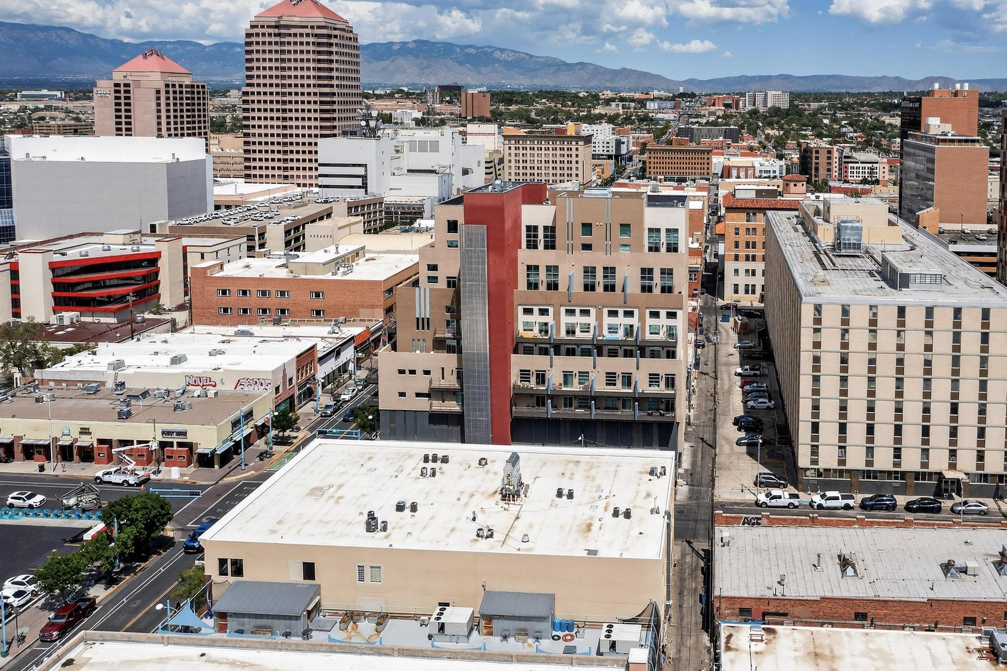 Step into your chic loft-style retreat at the Residences at the Anasazi where soaring ceilings and abundant natural light create an airy, inviting atmosphere, while sleek granite countertops and stainless-steel appliances elevate your kitchen to gourmet status. Enjoy the ease of in-unit laundry and the security of your own reserved parking space. Beyond the front entrance, Albuquerque's most exciting scene awaits. Live just moments from acclaimed restaurants and breweries like Ex Novo and the 505 Central Food Hall, buzzing nightlife, the Kimo Theater, and the vibrant downtown growers' market. Art-filled galleries, trendy bars, and entertainment hotspots are all within easy reach.