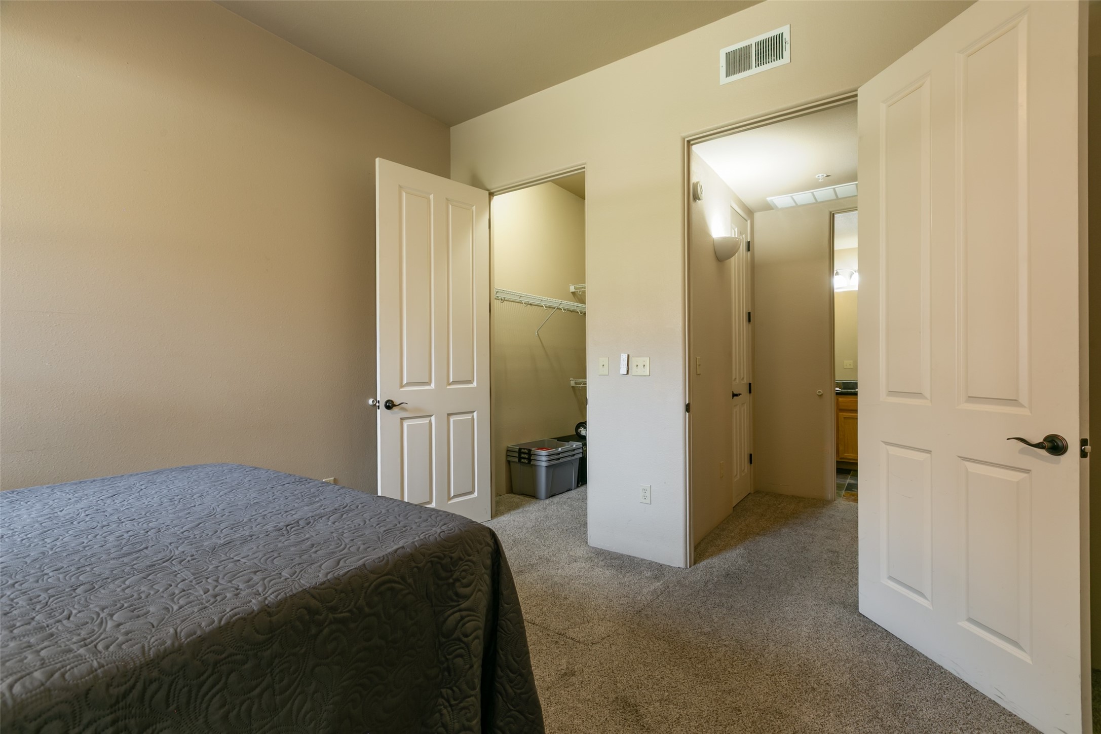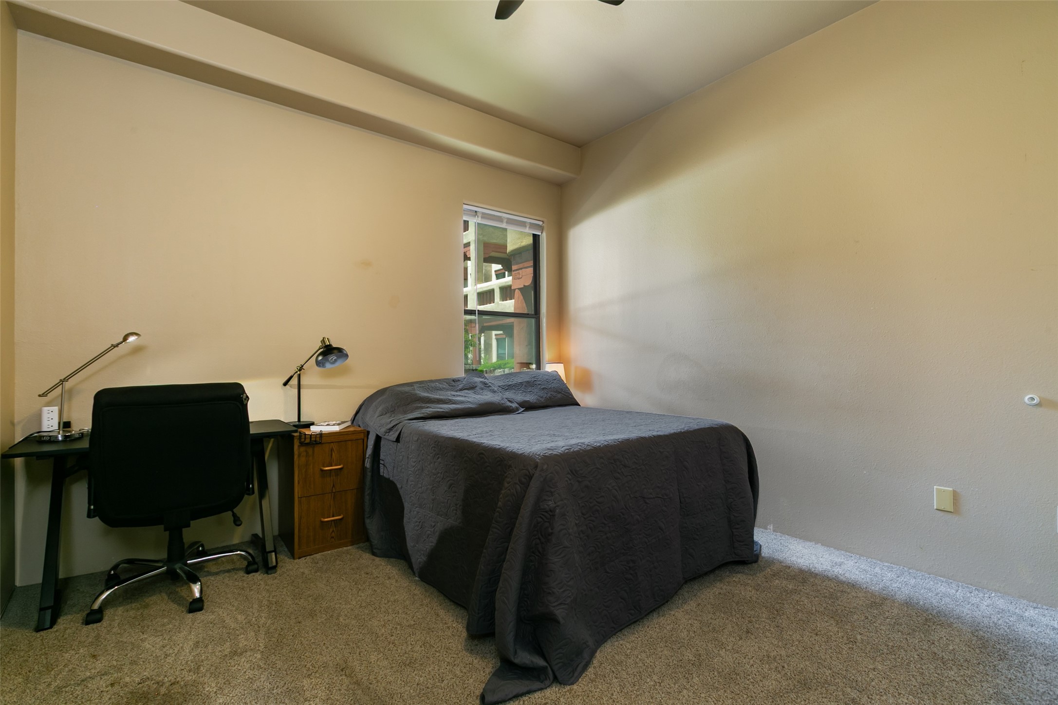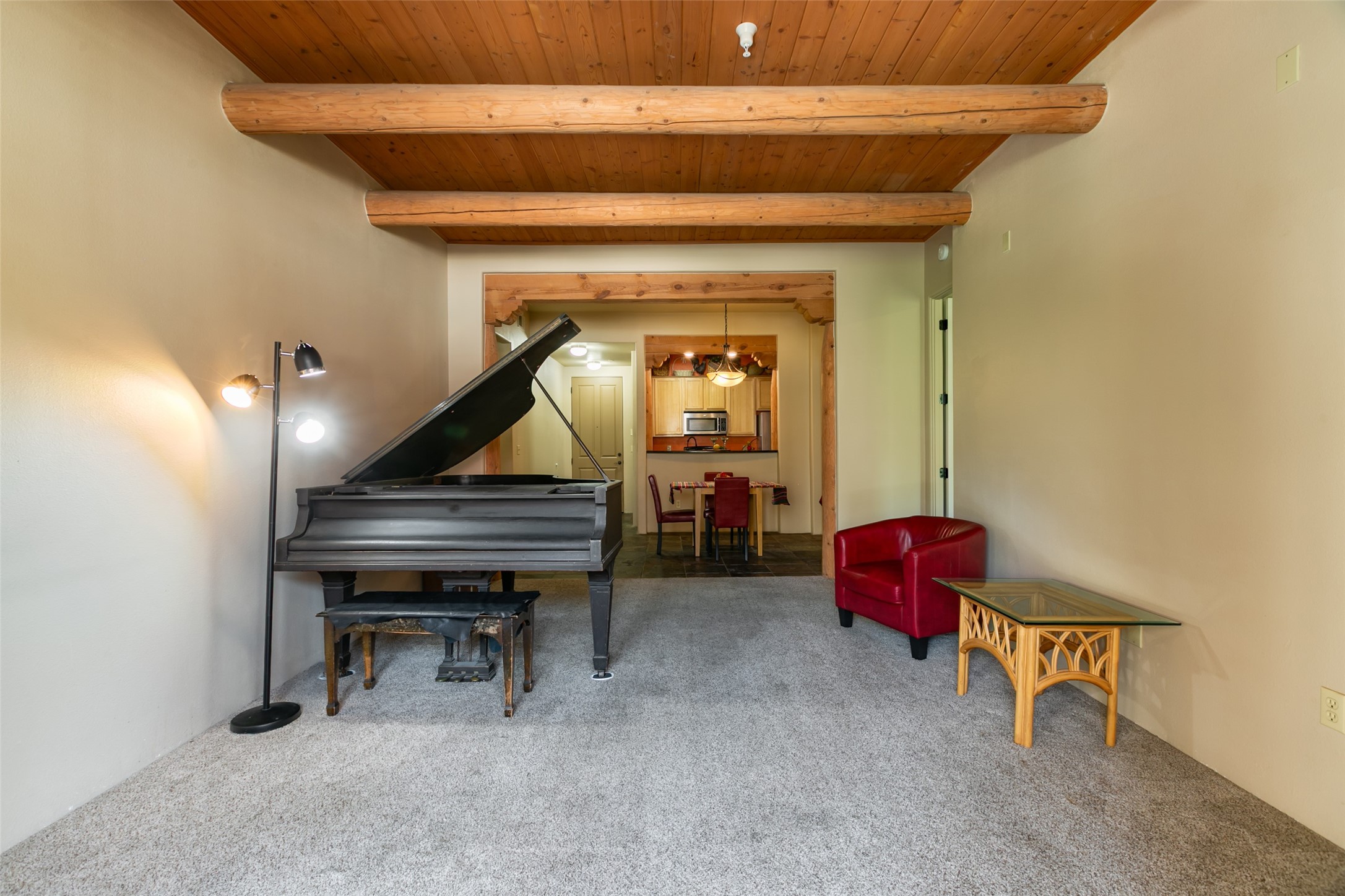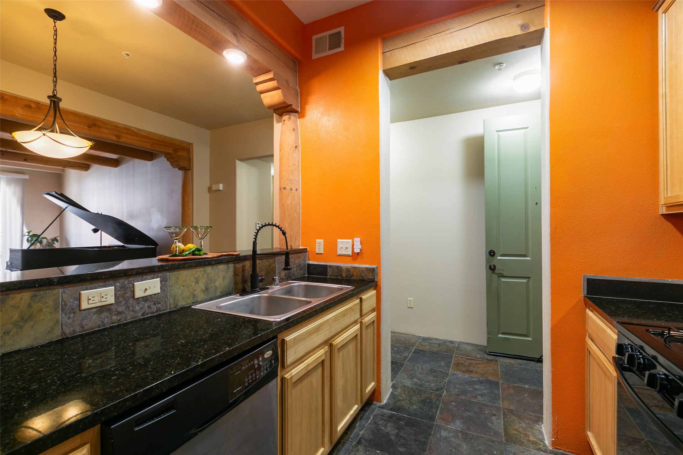 Ground Floor Gem Next to the Pool in Alameda Condos!Welcome to Santa Fe living at its finest in this stunning ground-floor condo in the sought-after Alameda Condominiums perfectly situated right next to the pool and overlooking beautifully maintained lush grounds.This spacious 2 bedroom, 2 bath unit is one of the largest in the community and blends luxury with classic Santa Fe charm. Inside, you'll find soaring ceilings, traditional vigas, a cozy kiva fireplace, and slate flooring. The gourmet kitchen and baths are appointed with granite countertops, and the luxurious primary suite boasts a spa like bath, huge walk-in closet, and private access to the covered portal patio ideal for enjoying the peaceful outdoor setting.Additional feature include in-unit washer/dryer that reflects pride of ownership from its owner.The gated Alameda complex offers premier amenities including an outdoor pool, fitness center, two elegant community living rooms with full kitchens, a conference room, and on-site management all within a secured building. Enjoy direct access to the Arroyo Chamisa trail for hiking or biking, and a prime central location just minutes from shopping, dining, entertainment, and I-25. This is resort-style living in the heart of Santa Fe.
