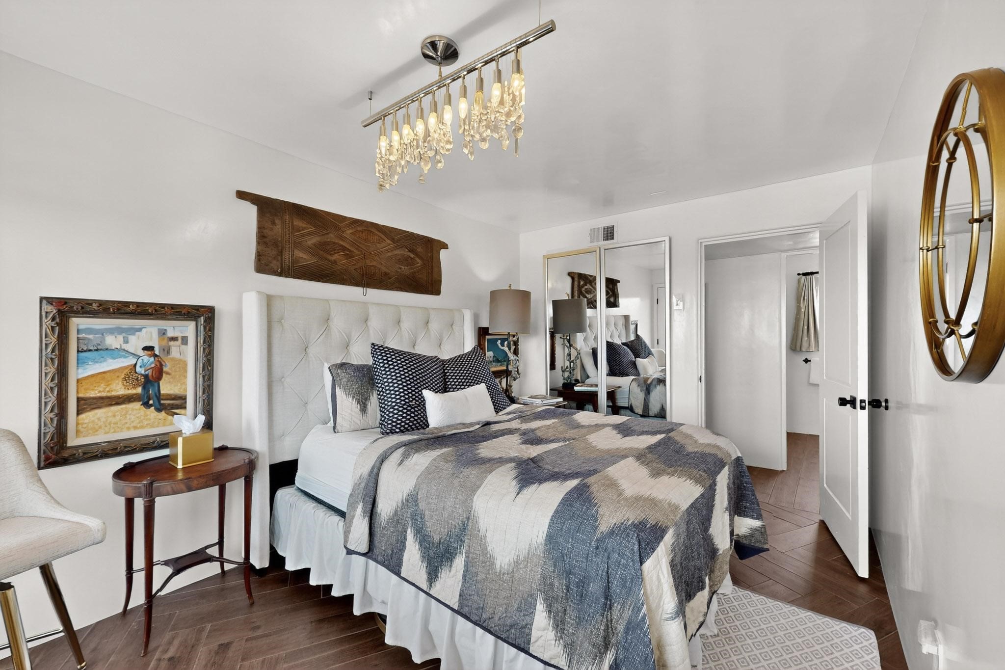 This lovely and convenient two story condo is located not far from the plaza, close to Fort Marcy, and at the bottom of the road leading up to the ski basin. The unit overlooks the green area in the center of the complex, with plenty of light. The living room has a charming kiva fireplace in the corner and views, the dining area has a full mirror to add to the space, and there are built in bookcases. The galley kitchen is convenient and a delight. Located on the main floor is a bath. Up the stairs are two bedrooms, both with access to a private balcony. There is a nicely sized primary bedroom with a private bath and a stacked laundry, and a guest bedroom with a bath in the hall. This beautiful condo complex is arranged on a hill with lovely views, a heated indoor swimming pool, hot tub, storage, rv parking, and on-site management. This particular unit has new heating, air conditioning, roof, and hot water on demand. All furnishings can be included.