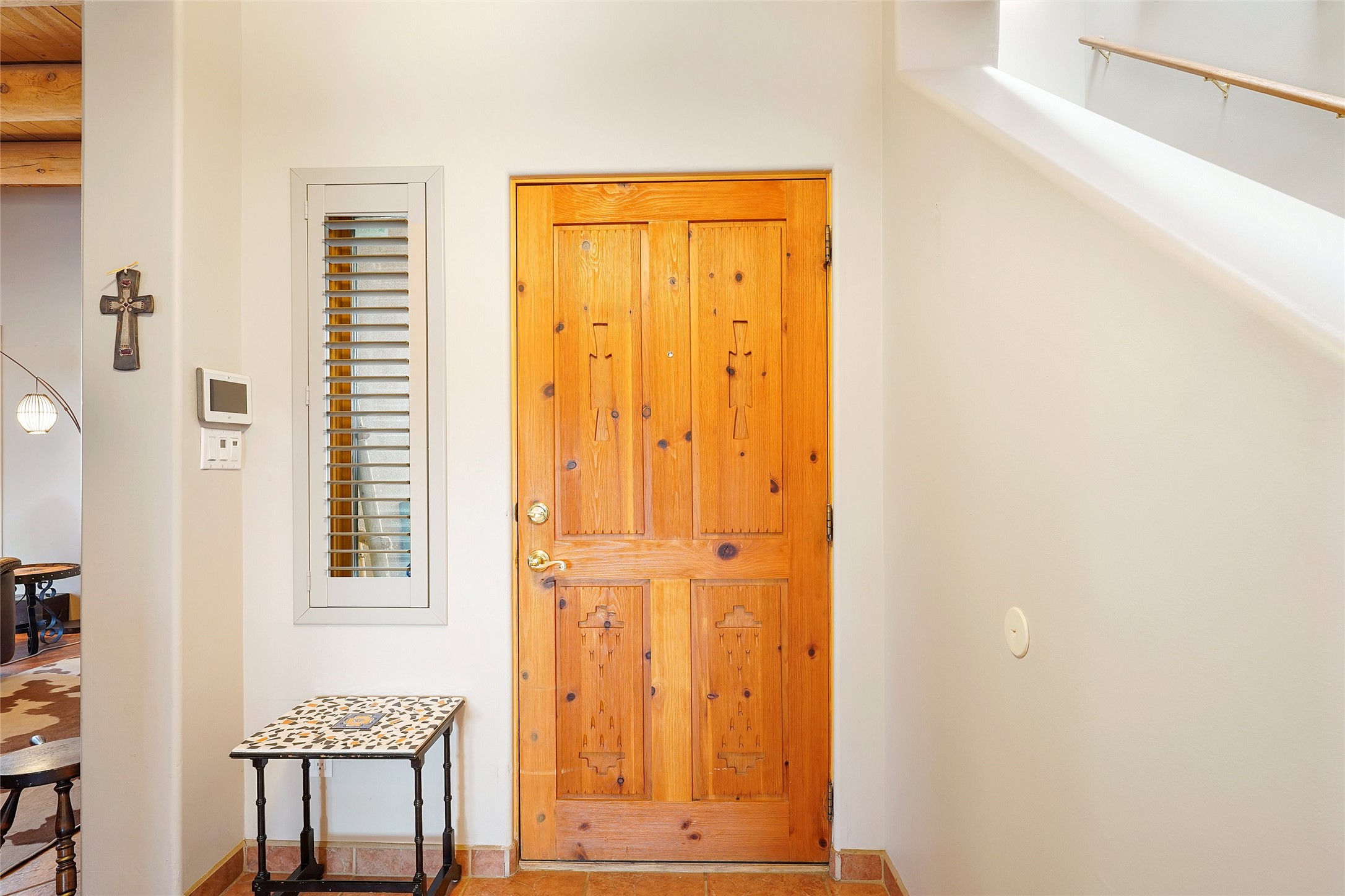 Welcome to this beautifully maintained home in the sought-after Pueblos de Sol subdivision, offering comfortable living and sweeping views. Recent upgrades include a modern kitchen with stainless steel appliances, granite countertops, and a spa-like primary bathroom with a standalone tub and custom stone tile. The primary suite also features a private deck with durable Trex decking. A TPO roof was installed in 2022. Enjoy year-round comfort with 5 mini-splits and radiant heating. Outdoor living shines with multiple decks, a charming courtyard, mature trees, and drip irrigation. A separate-entry studio/guesthouse with full bath offers rental or creative flexibility. Don't miss this Santa Fe gem! Trails and parks nearby!