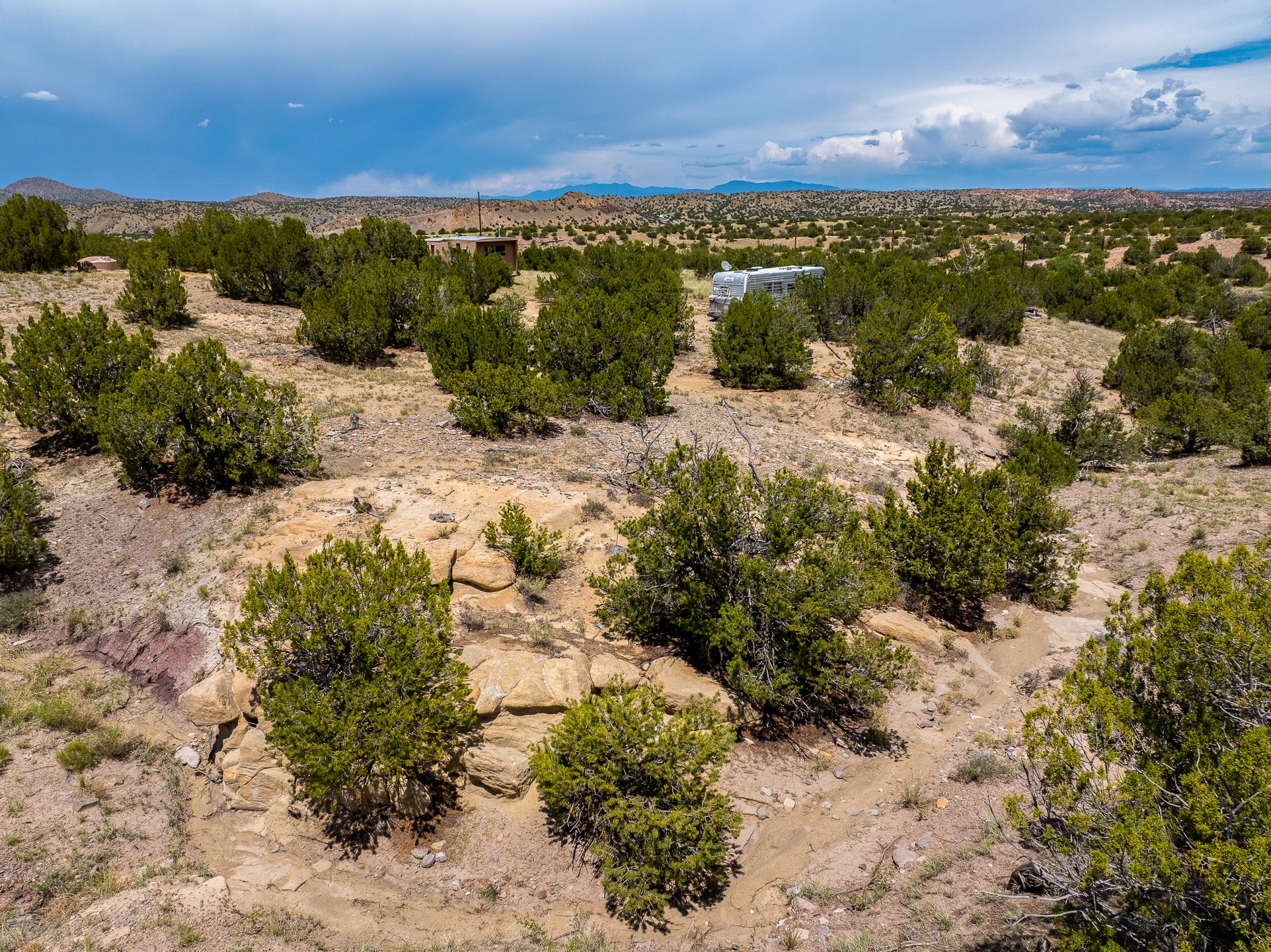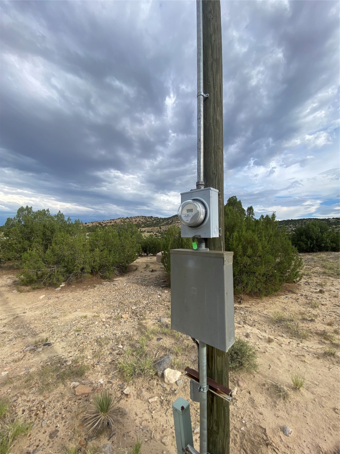5.5 acres with water and power, adjacent to pavement on Goldmine Road. This acreage, just outside of Cerrillos, offers rolling topography with a number of potential building sites, excellent views, and country quiet. Located minutes from Cerrillos and Madrid, and just seventeen mostly highway miles from the south side of Santa Fe, the property provides room to stretch out without sacrificing convenience. Electric meter and community water on the property. Single wide, travel trailer, shed, and outhouse convey without value.