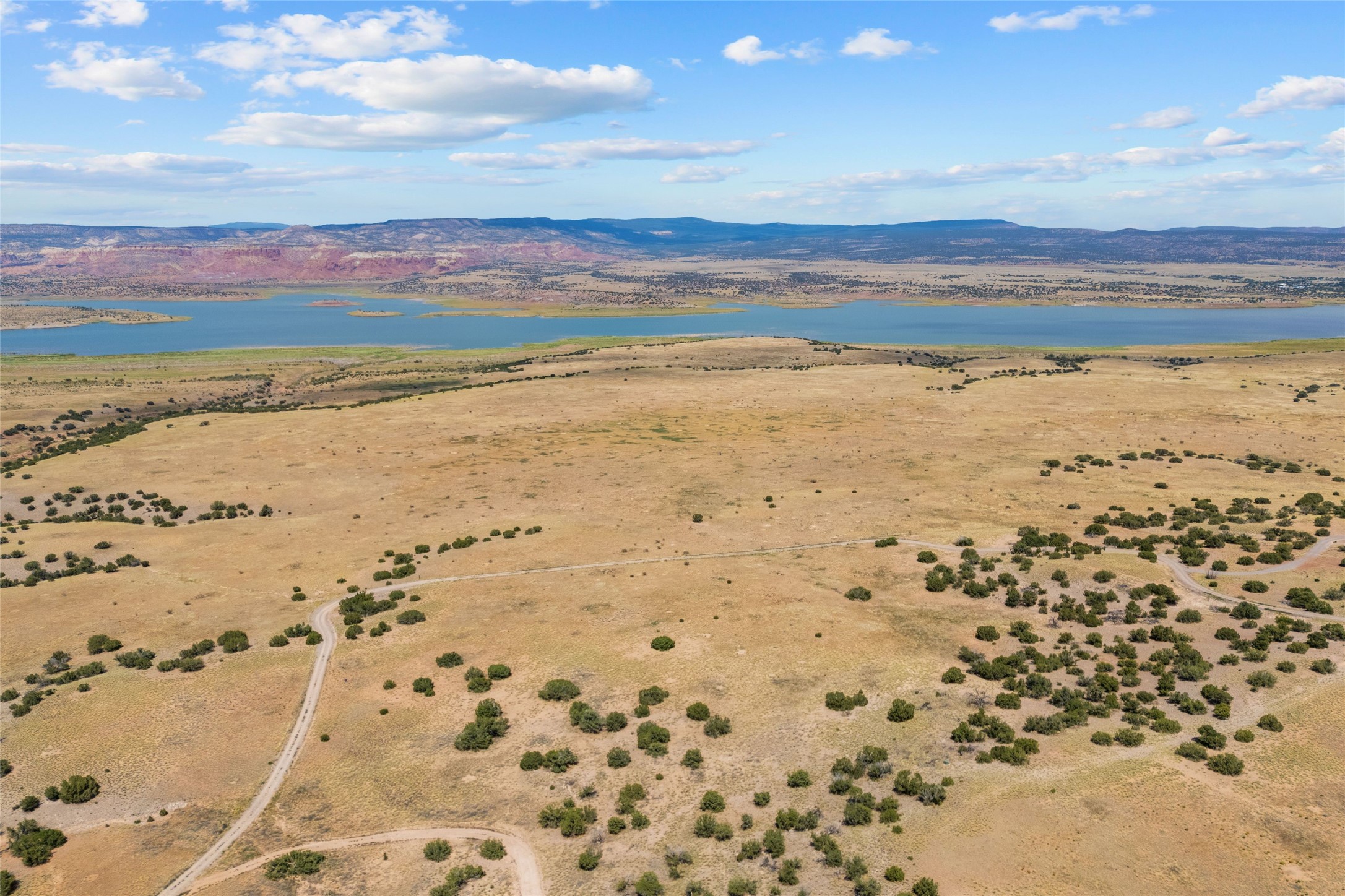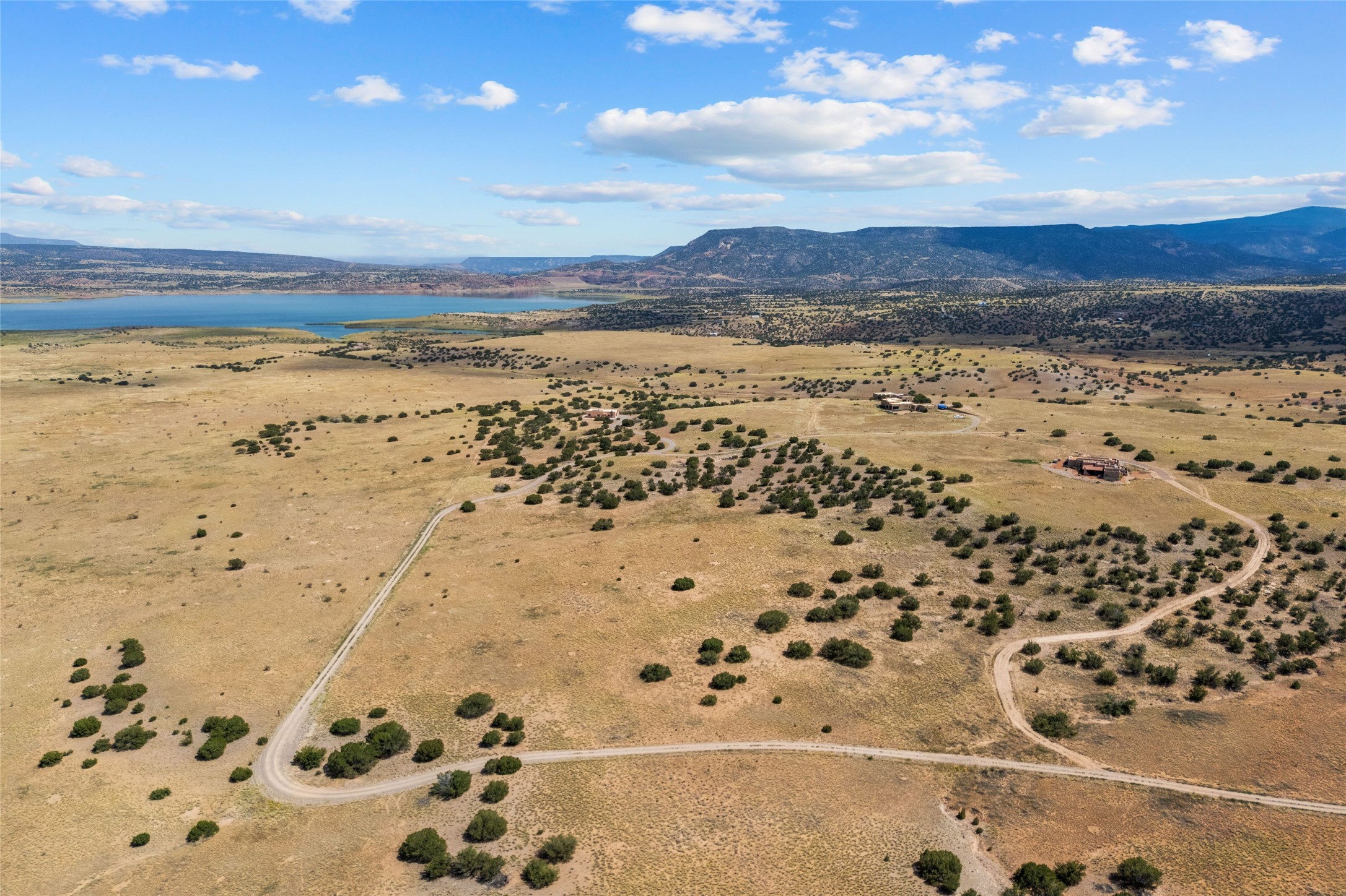 Very Special and Secluded 13.61 acres with expansive views of Abiquiu Lake. This parcel is located in a gated community consisting of large parcels, beautiful homes and access to a private small boat ramp. An electric transformer is situated on the property. All roads in the subdivision are accessible. Spend your days boating or fishing or simply enjoying the peacefulness and the beautiful scenery.