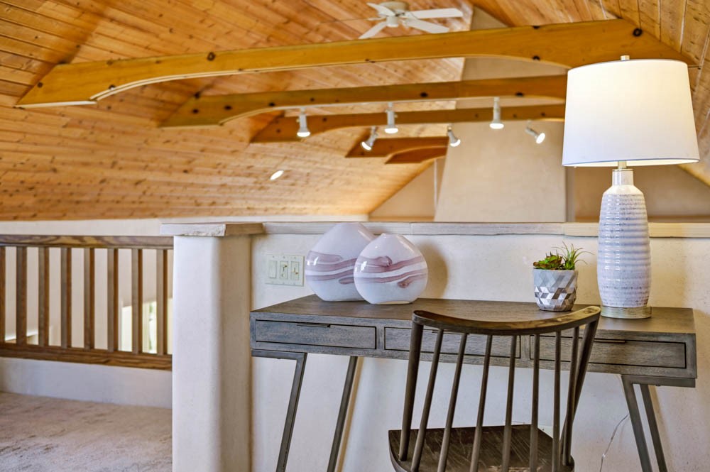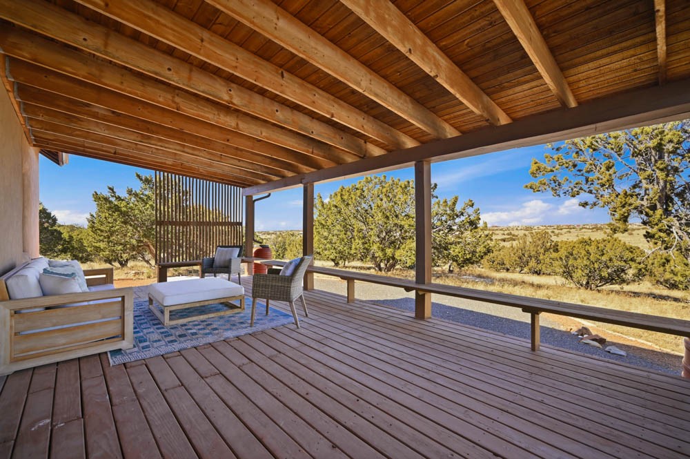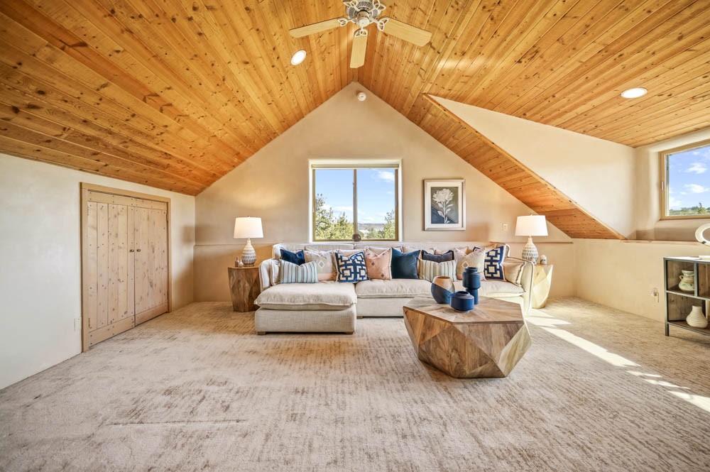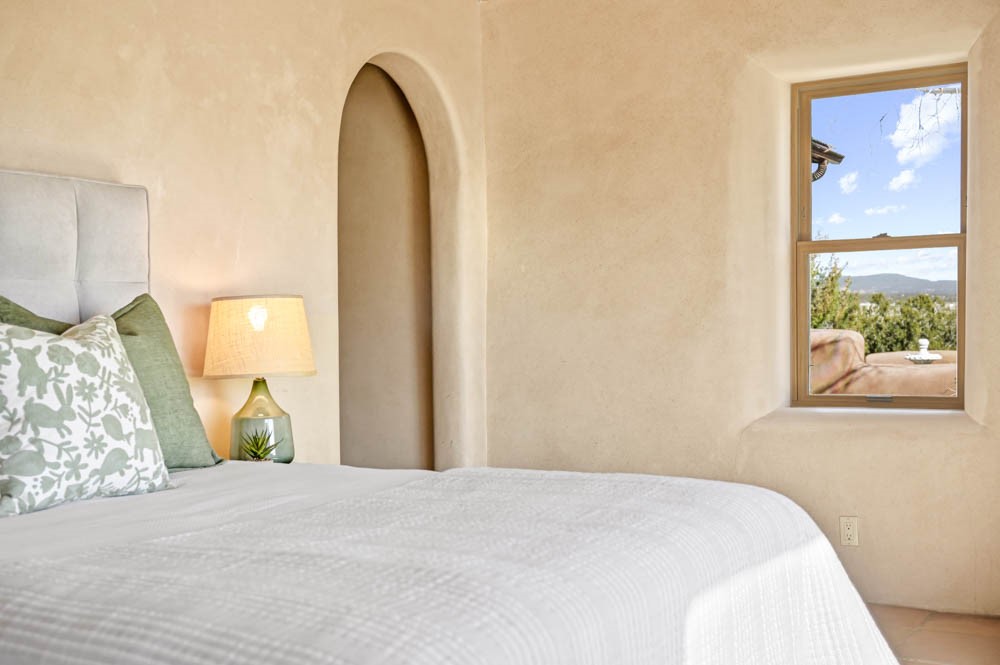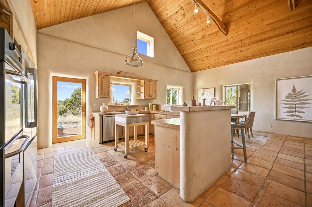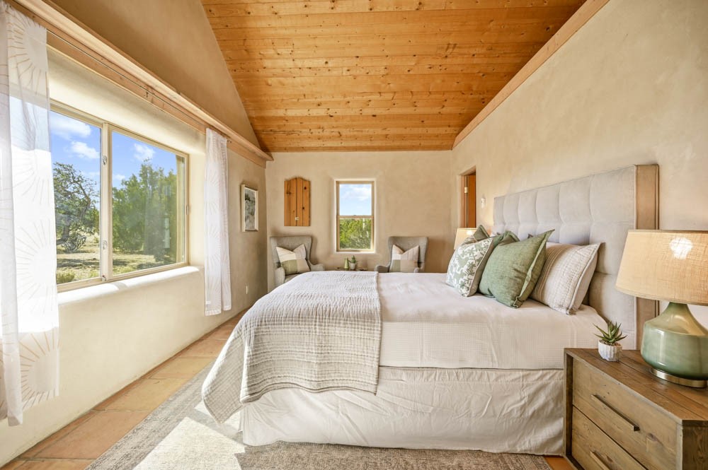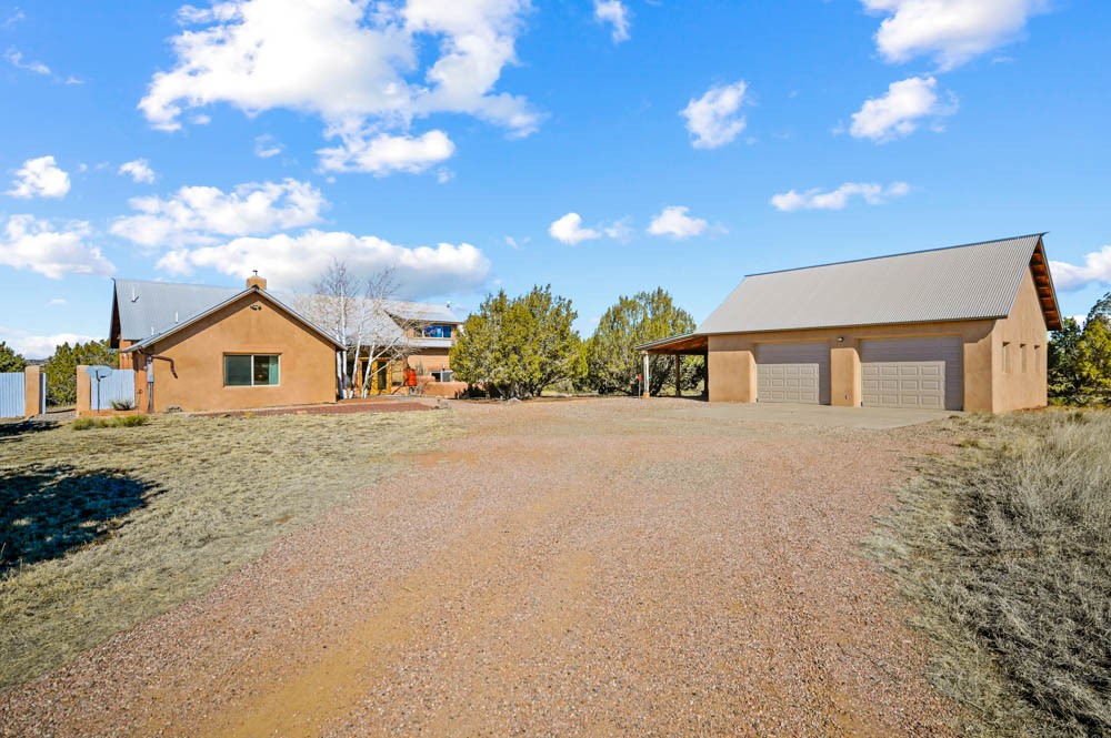 Nestled in the sought-after Art Barns area of Lamy, just a scenic 20-minute drive from Santa Fe, this distinctive 2-bedroom, 2-bath home offers a rare blend of privacy, character, and sweeping mountain views on 5.86 acres. Spanning 2,563 square feet, the residence features beautiful Saltillo tile flooring, comfortable in-floor radiant heating, and a flexible loft space ideal for a home office or family room. A pitched roof and classic Southwestern styling complement the surrounding landscape, while recent 2025 updates--including a new boiler, stucco repairs on the home, and brand-new stucco on the detached oversized 2-car garage--provide peace of mind. With expansive outdoor space, stunning vistas, and easy access to Eldorado's shopping and Santa Fe's amenities, this property is an exceptional opportunity to enjoy serene high-desert living at its finest.