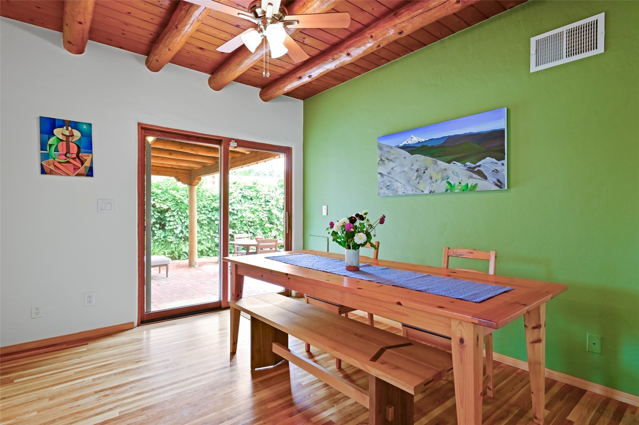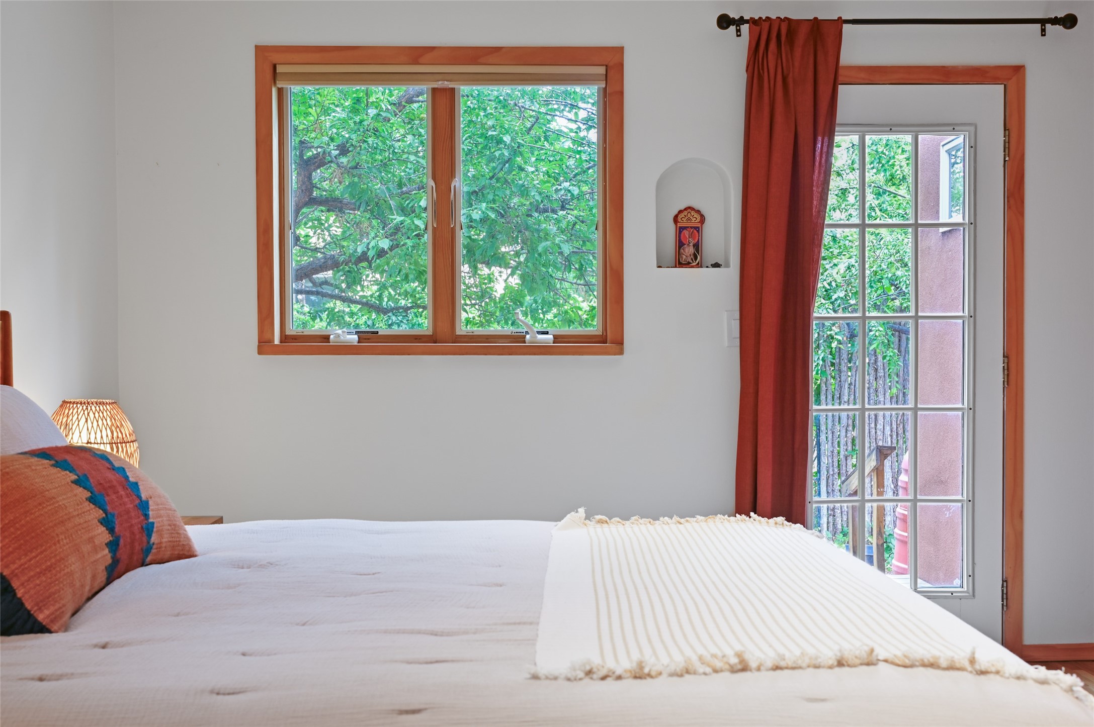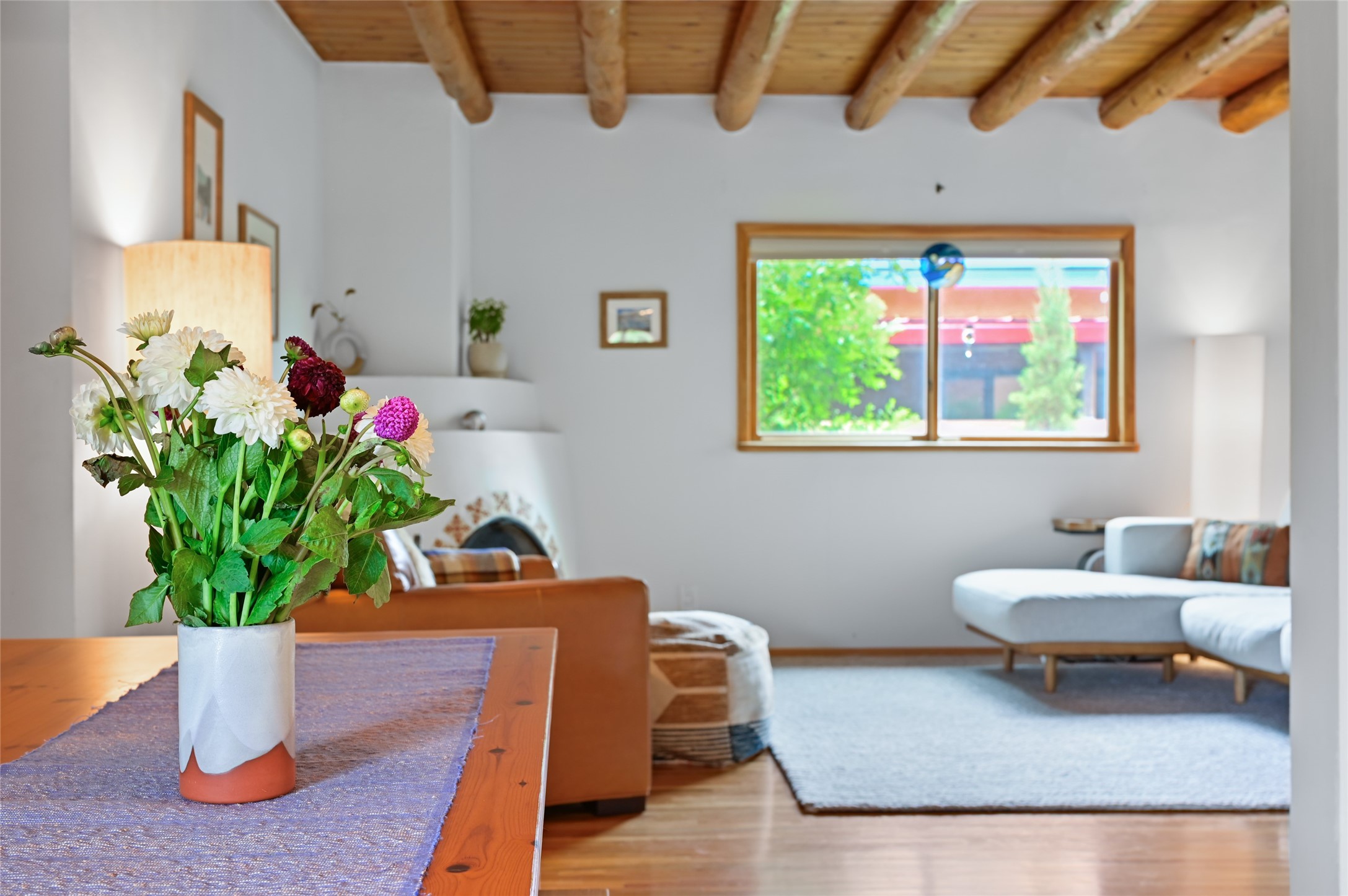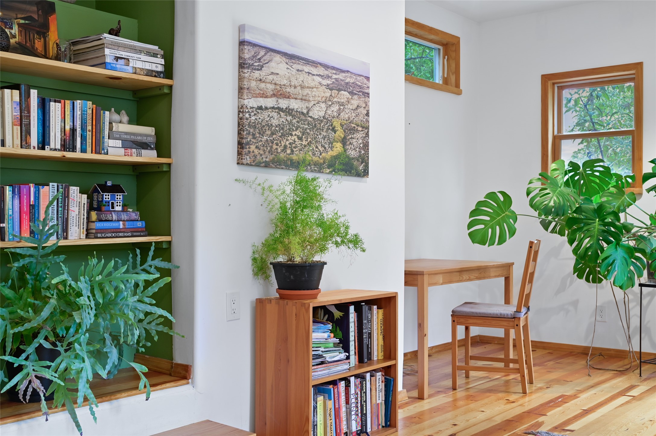 Located in the picturesque Casa Solana neighborhood, this charming 4-bedroom, 3-bathroomreimagined Stamn home offers over 2500 sqft of comfortable living spaces.Step inside to find wood floors that flow throughout the main living areas along with Vigas and aKiva fireplace. The versatile 4th bedroom, currently utilized as a cozy den, can easily transforminto an art studio or flex room to suit your lifestyle. An extra room, with its own bath, adjacent to the laundry areacan be used as another living space or as storage.Retreat to the spacious upstairs bedroom, complete with its own sitting room and privatebalcony, offering ski basin and sunset views for your enjoyment.Enjoy the serene and private outdoor environment on a beautifully landscaped lot that is completely fenced,featuring fruit trees, grape vines and two storage sheds. The tranquil fountain and multipleoutdoor seating areas create the perfect backdrop for entertaining and relaxation.This air conditioned home combines thoughtful design with abundant outdoor charm, making it an ideal havenfor families and entertaining guests alike.Located just blocks from shopping, dining, and the La Montaita Food Co-op, walkable via the River Trail to the Farmers Market,and only minutes to the Plaza. This home will not disappoint!