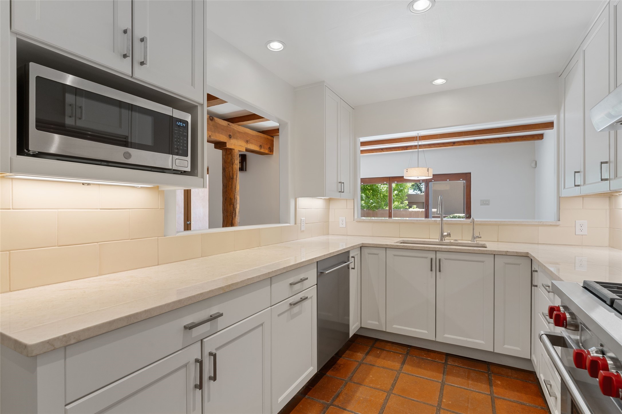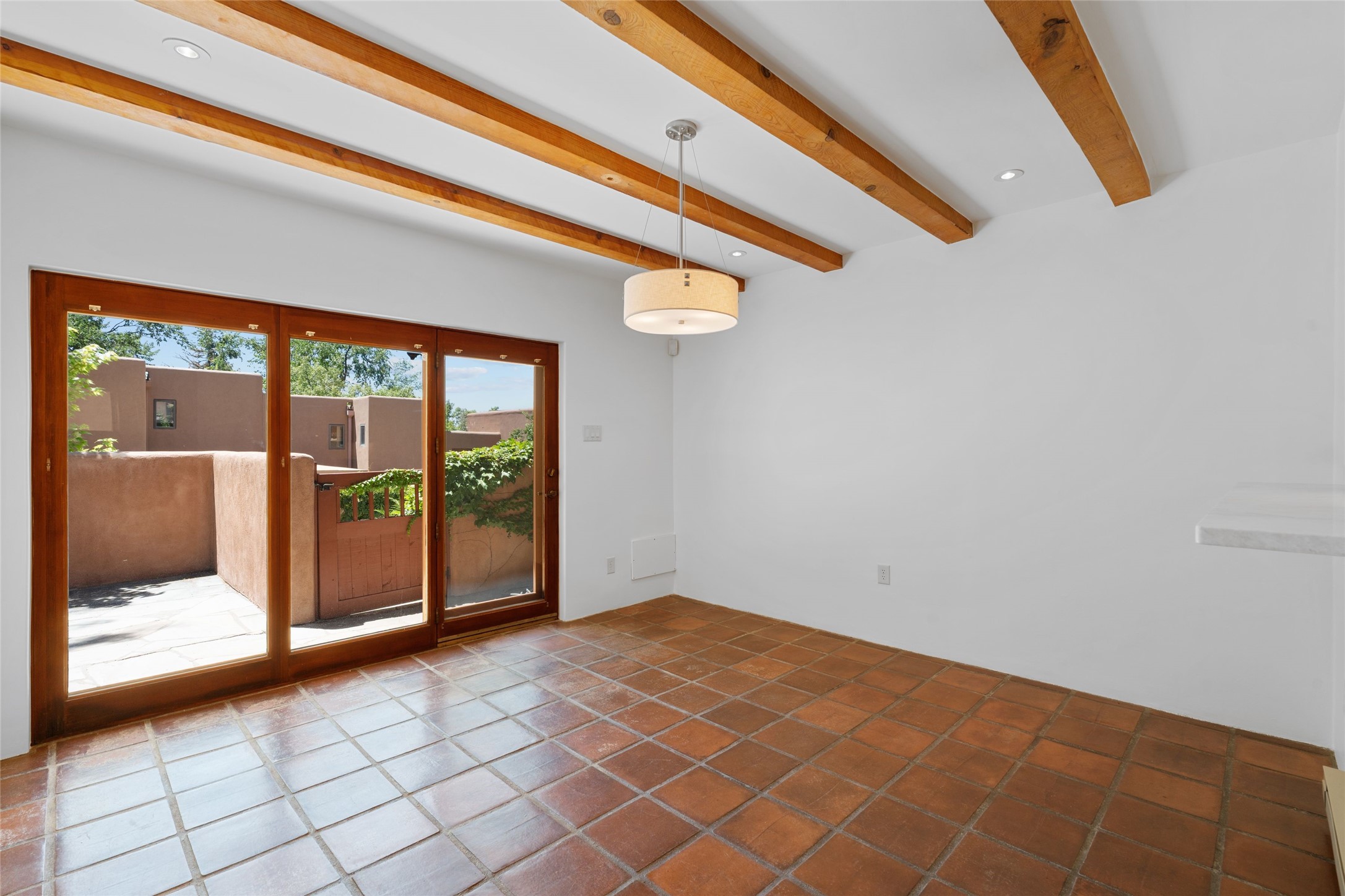 Nestled in the heart of historic Santa Fe just steps from Canyon Road, galleries, restaurants and the historic Plaza, this refined condominium in the highly sought after La Vereda Compound offers a rare blend of traditional charm and modern sophistication. Boasting 2 spacious bedrooms, a large office (perfect for remote work or guest overflow), 2 full bathrooms, and a half bath, this home is thoughtfully designed for comfort, convenience, and style. The updated kitchen features high-end appliances including a gas oven/range, contemporary cabinetry, and premium finishes, making is a delight for home chefs and entertainers alike. The high ceiled living and dining area are warm and inviting, with classic Santa Fe touches throughout. An added bonus to this property is the solarium off the living and dining rooms which provides extra living space as well as passive solar heat. There is a large laundry room and an extra utility/storage room. Upstairs, the primary suite opens to a private balcony with lovely views - an ideal spot for morning coffee or sunset unwinding. Enjoy serene surroundings and beautifully maintained grounds in a quiet community. Whether your seeking a peaceful getaway, a lock-and-leave second residence, or a sophisticated pied-a-terre, this La Vereda gem offers the quintessential Santa Fe lifestyle.