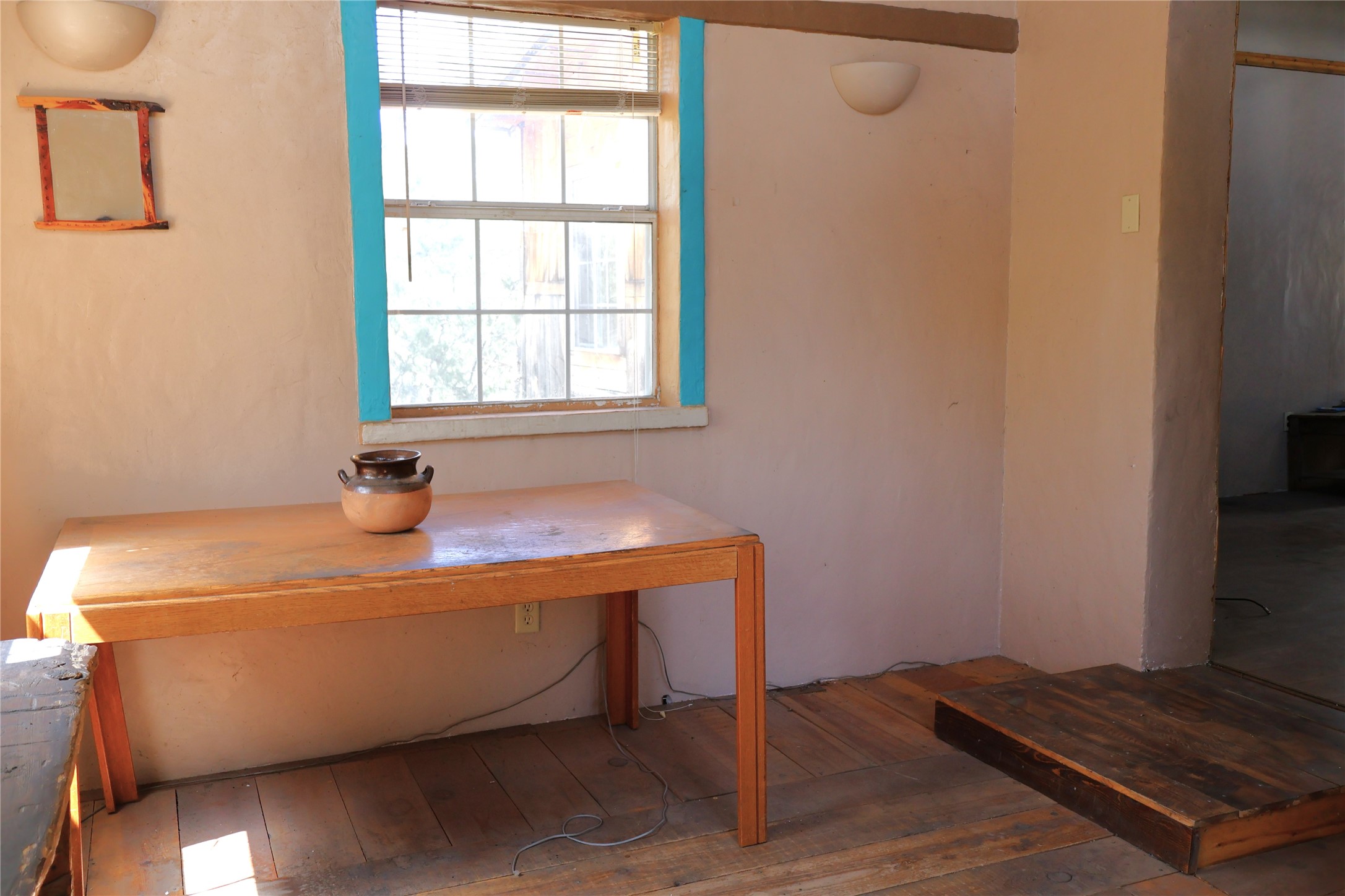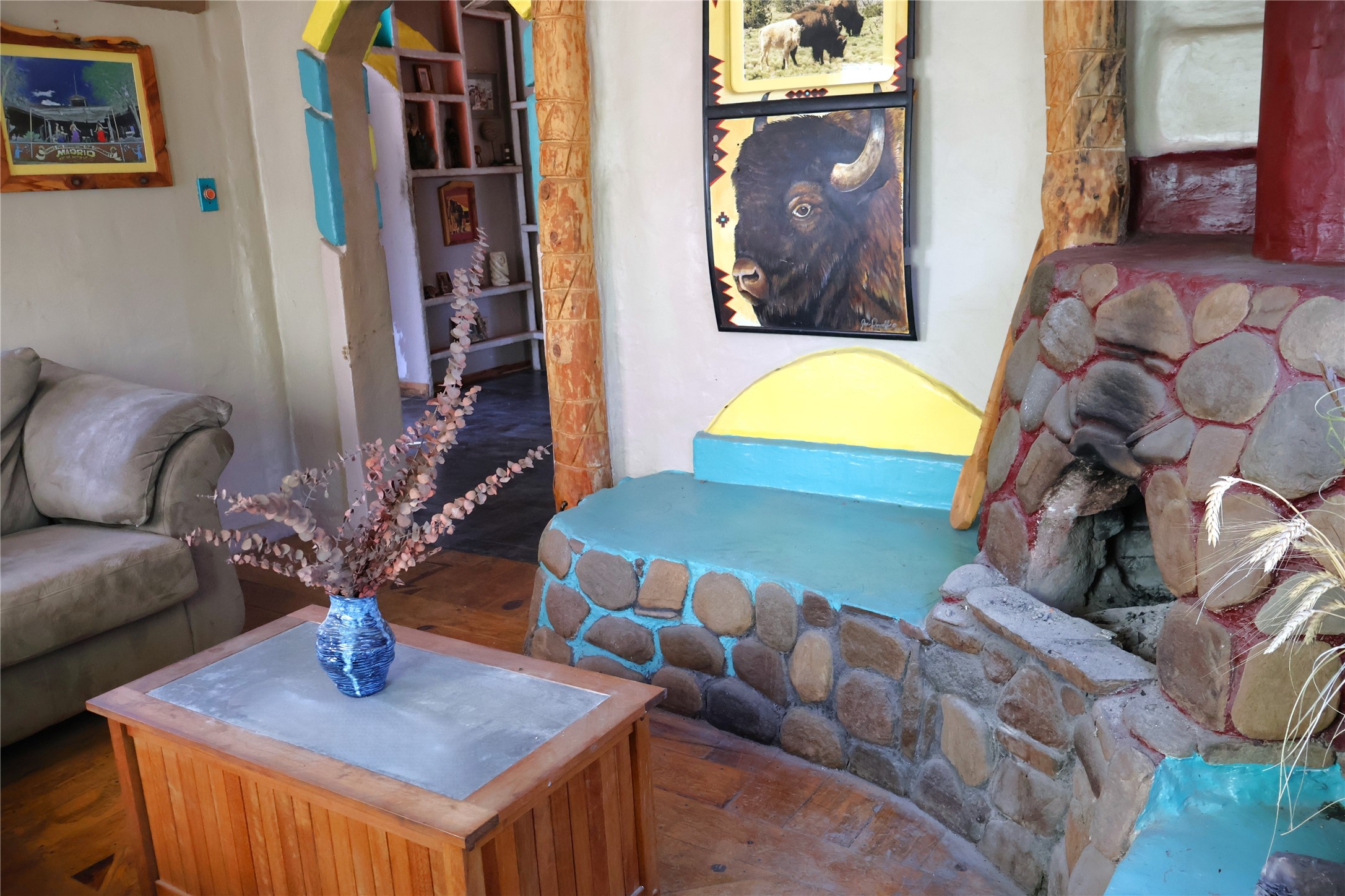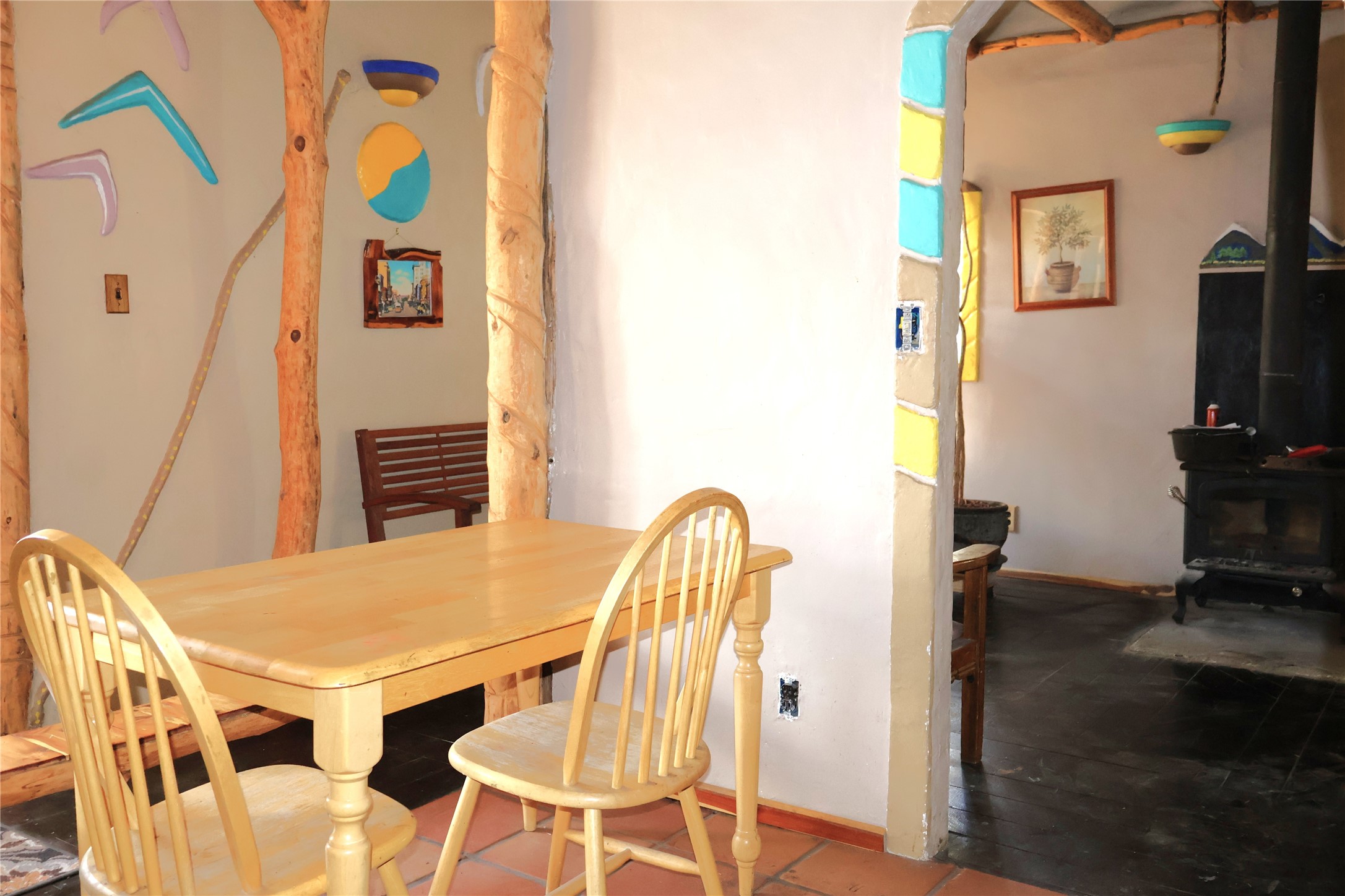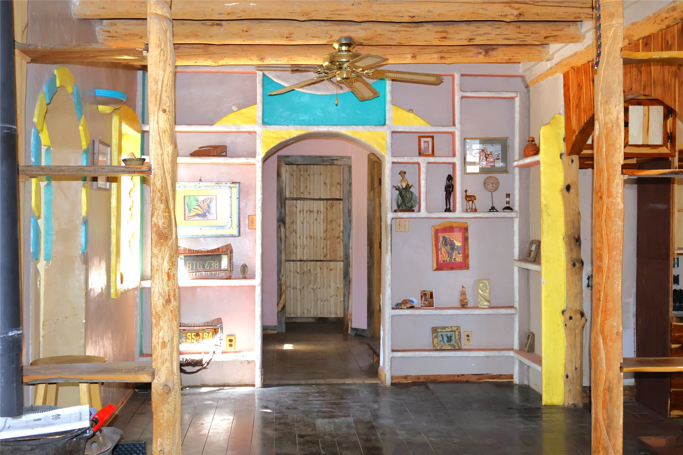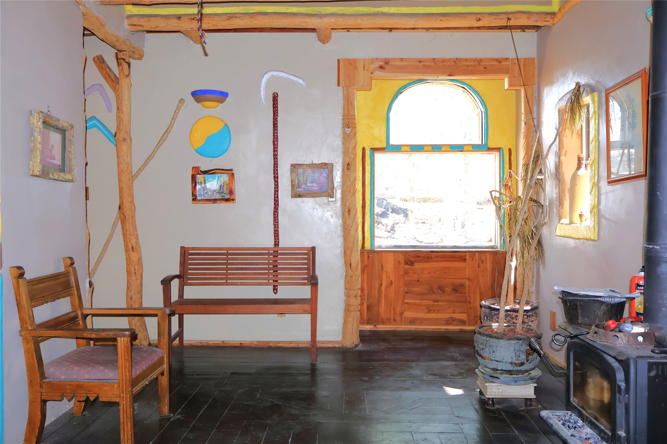 Experience the lush Sherwood Forest Subdivision in Torreon, NM! This carefully crafted 2-Bedroom 1-Bath home sits on nearly half an acre surrounded by tranquil forest. This property is ideal as a mountain getaway / retreat or as a primary residence! Enjoy the warmth of the kiva fireplace downstairs, a large primary bedroom and landing / loft upstairs. This home is spacious with a living area and den. Enjoy the detached carport coupled with two attached spaces for additional storage. An open deck overlooks the spacious backyard with a large pond. This home has mountains of potential, come and make it yours today!
