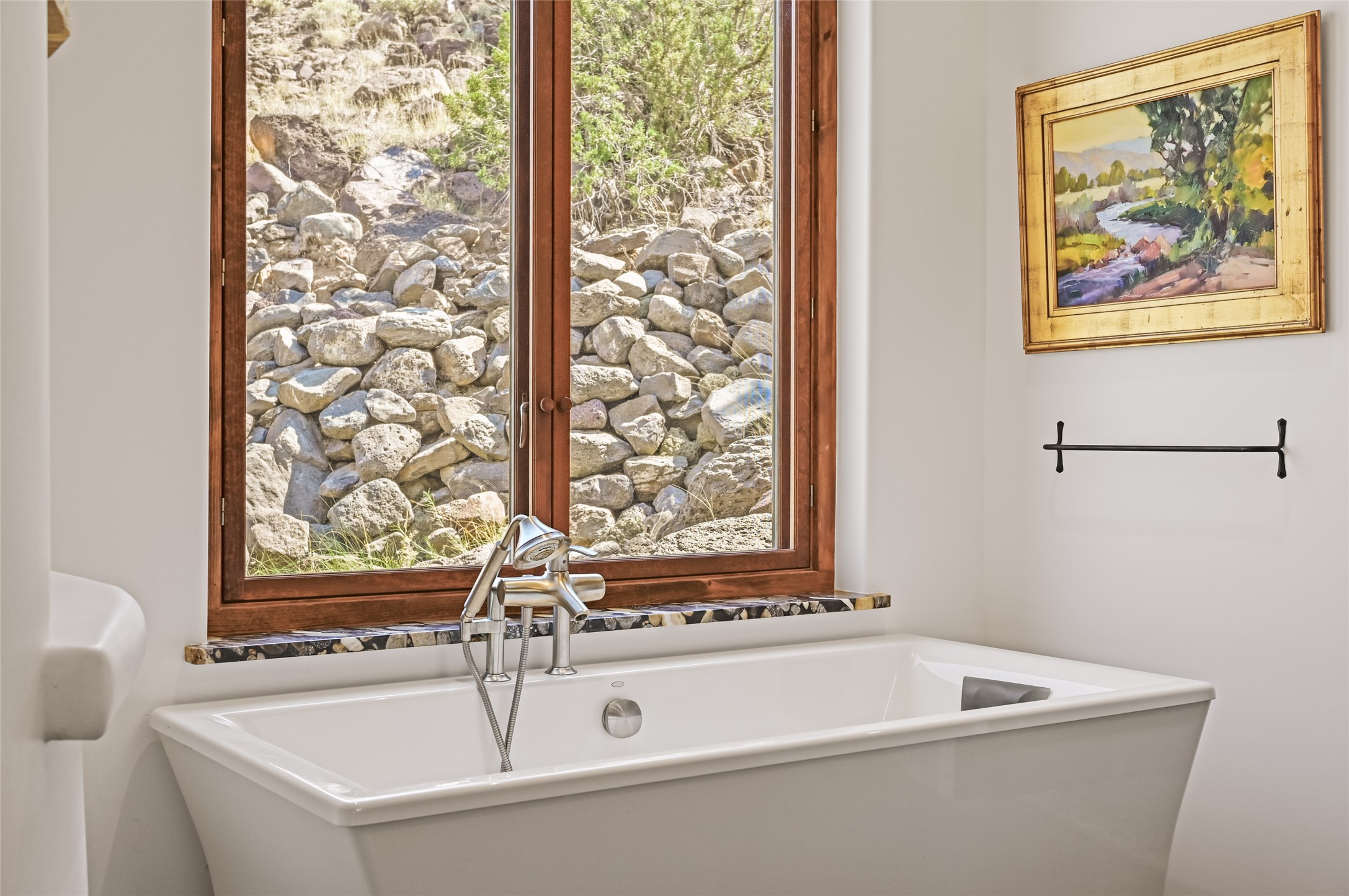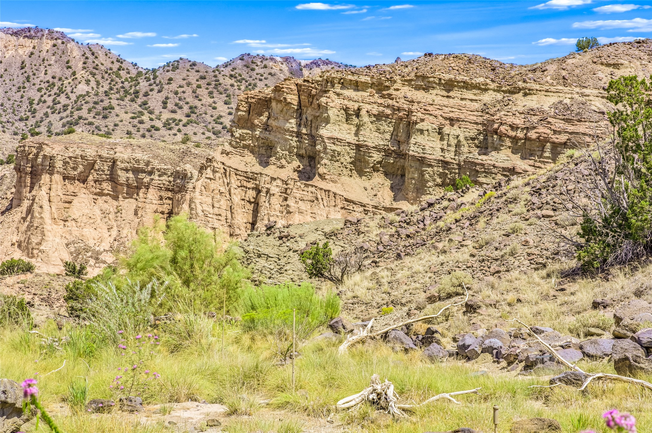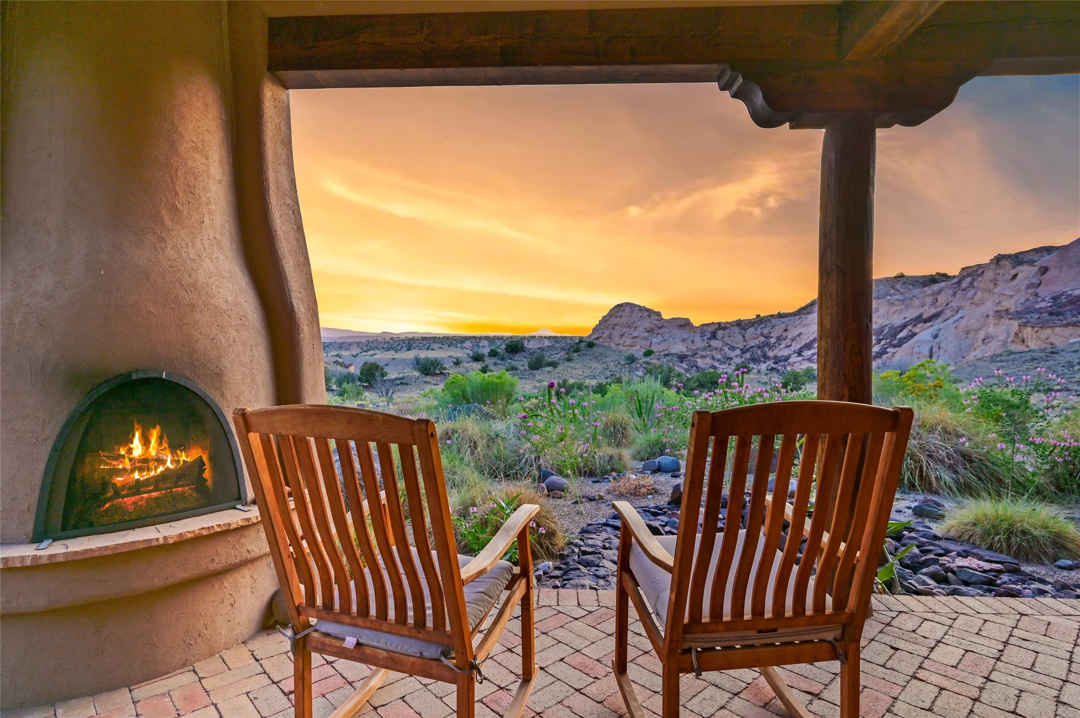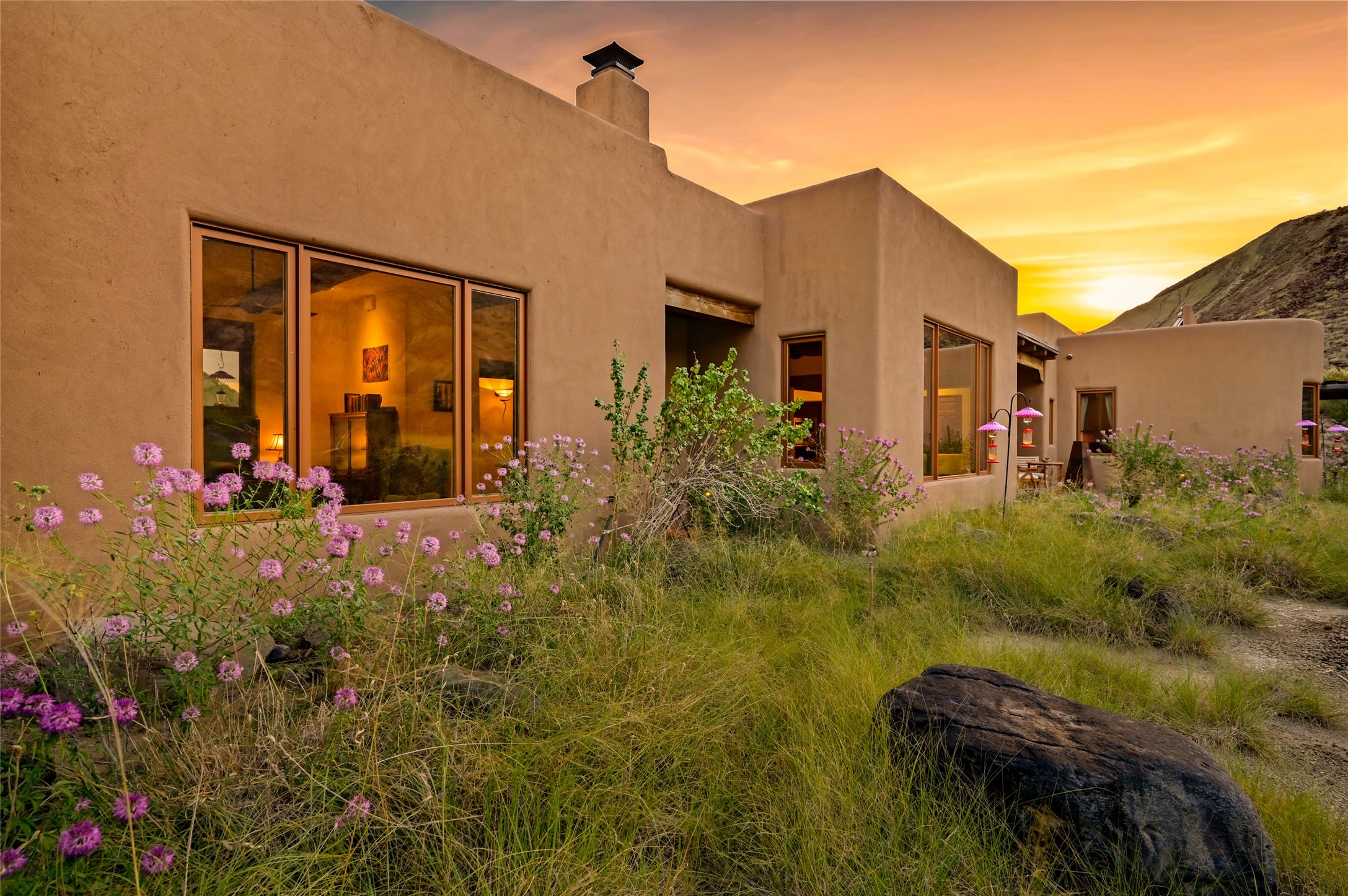 A rare opportunity to own a private wilderness sanctuary, on the market for the first time. This 39-acre self-sustaining refuge, lovingly named Rincn Escondido, "Hidden Corner," is tucked away in the foothills of Sierra Negra and borders Carson National Forest, offering unparalleled privacy just one hour from Santa Fe. Panoramic views of Cerro Pedernal, Sierra Negra, and the Jmez Mountains stretch across rewilded meadows, pollinator gardens, and a tranquil pond with a cascading waterfall.The 4,032 sq ft property combines a 3,059 sq ft residence with a heated garage and storage room, offering an additional 973 sq ft of versatile space. The home blends timeless Southwestern architecture with refined modern finishes, including hand-carved wood doors, artisan detailing, and locally sourced Namb brick floors that flow throughout. Each room is designed to maximize natural light and frame dramatic vistas. A chef's kitchen features a Sub-Zero fridge/freezer, Wolf oven, induction cooktop, and custom craftsmanship, while the spa-inspired primary suite offers a deep soaking tub and walk-in shower.Built for environmental stewardship, the home is fully powered by a grid-tied 20.16 kW photovoltaic system with four Tesla Powerwall 3 batteries and solar-thermal hot water. Passive solar design, radiant in-floor heating and cooling, and high-efficiency systems ensure year-round comfort.Whether a spiritual retreat, sustainable homestead, or luxury escape, this private refuge is more than a home--it is a living sanctuary.Video Link: https://youtu.be/VyCAPihgIhU
