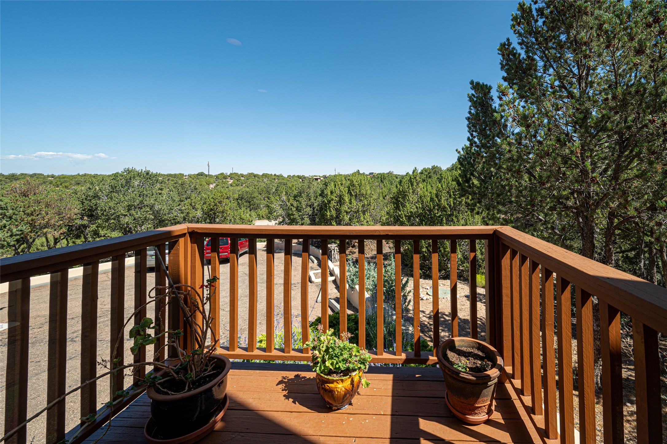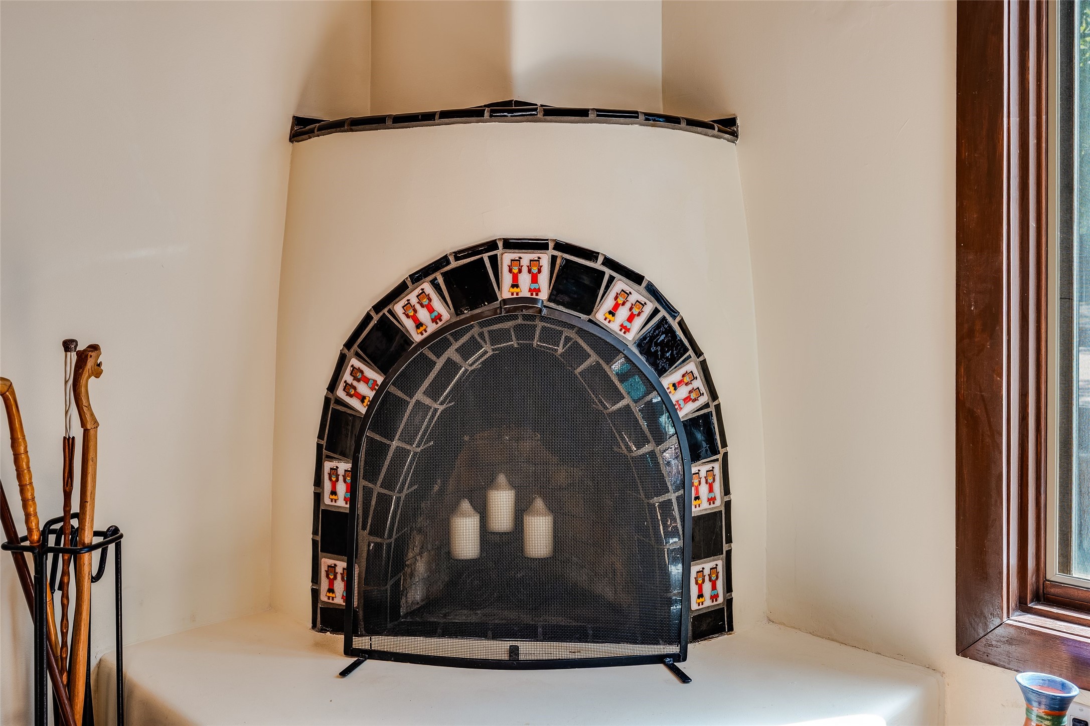 This handsome traditional residence is graced with enchanting and abundant architectural elements, including soaring ceilings, vigas, latillas, exceptional tilework, and arched doorways, as well as breathtaking sunsets and stunning mountain views. Warmth and elegance are hallmarks of this beautiful property, just five minutes from the Santa Fe Plaza. On over an acre on the coveted north side, the impressive size of the rooms is superb for both entertaining and private luxurious enjoyment. Abundant outdoor areas, accessible from several rooms, are embraced by handsome coyote and post-fencing, and stunning evergreens. Delightful alfresco and entertaining options include a dining portal, a grill area, and flagstone terraces. The flexible floor plan, with two kitchens, living and dining areas, is ideal for multi-generational living, or as a single residence with fabulous guest wing. There are two oversized principal suites, one with sweeping mountain views. The generous family room has a lovely fireplace, custom cabinetry, and French doors to a private terrace. The impressive dining room with an adjacent buffet area, is marvelous for gatherings with friends and family. There is also a beautiful library/music room that easily accommodates a grand piano - an extraordinary offering.