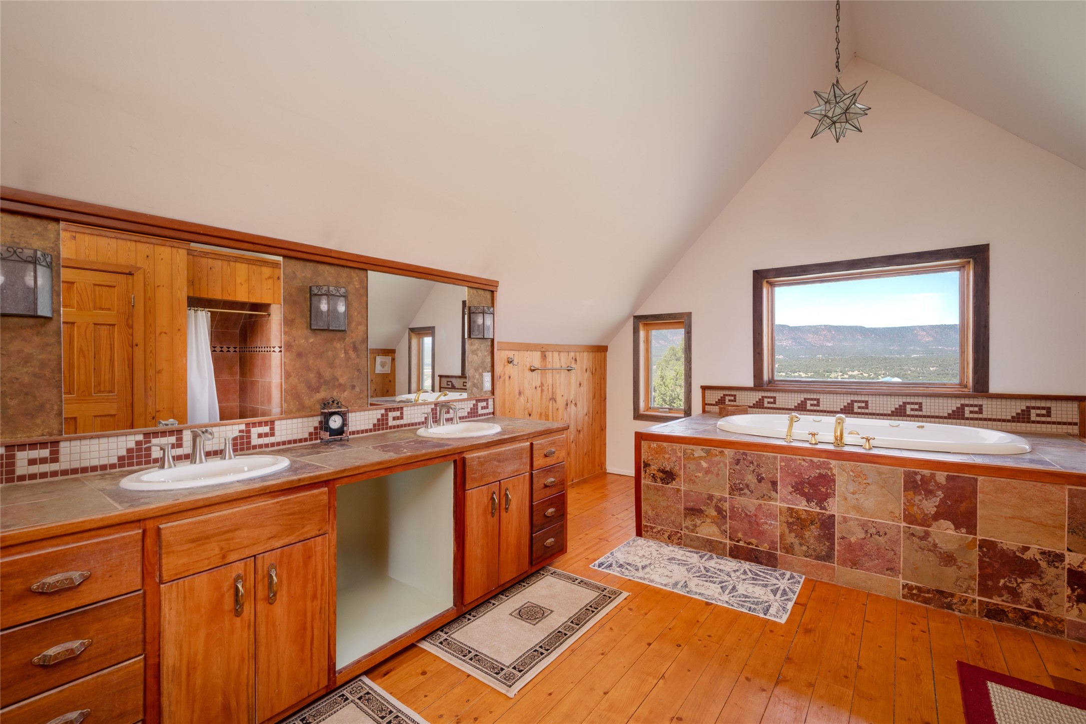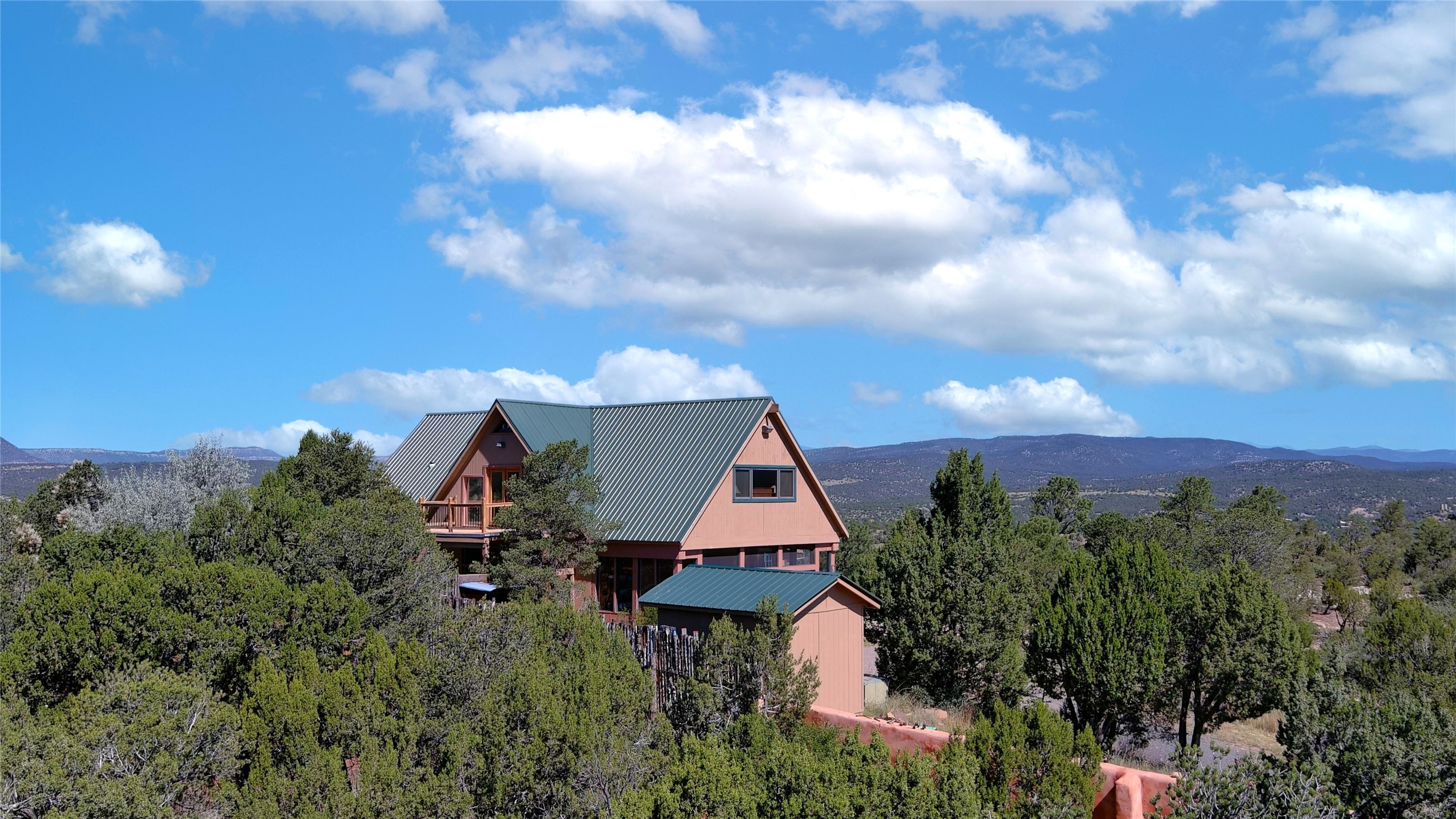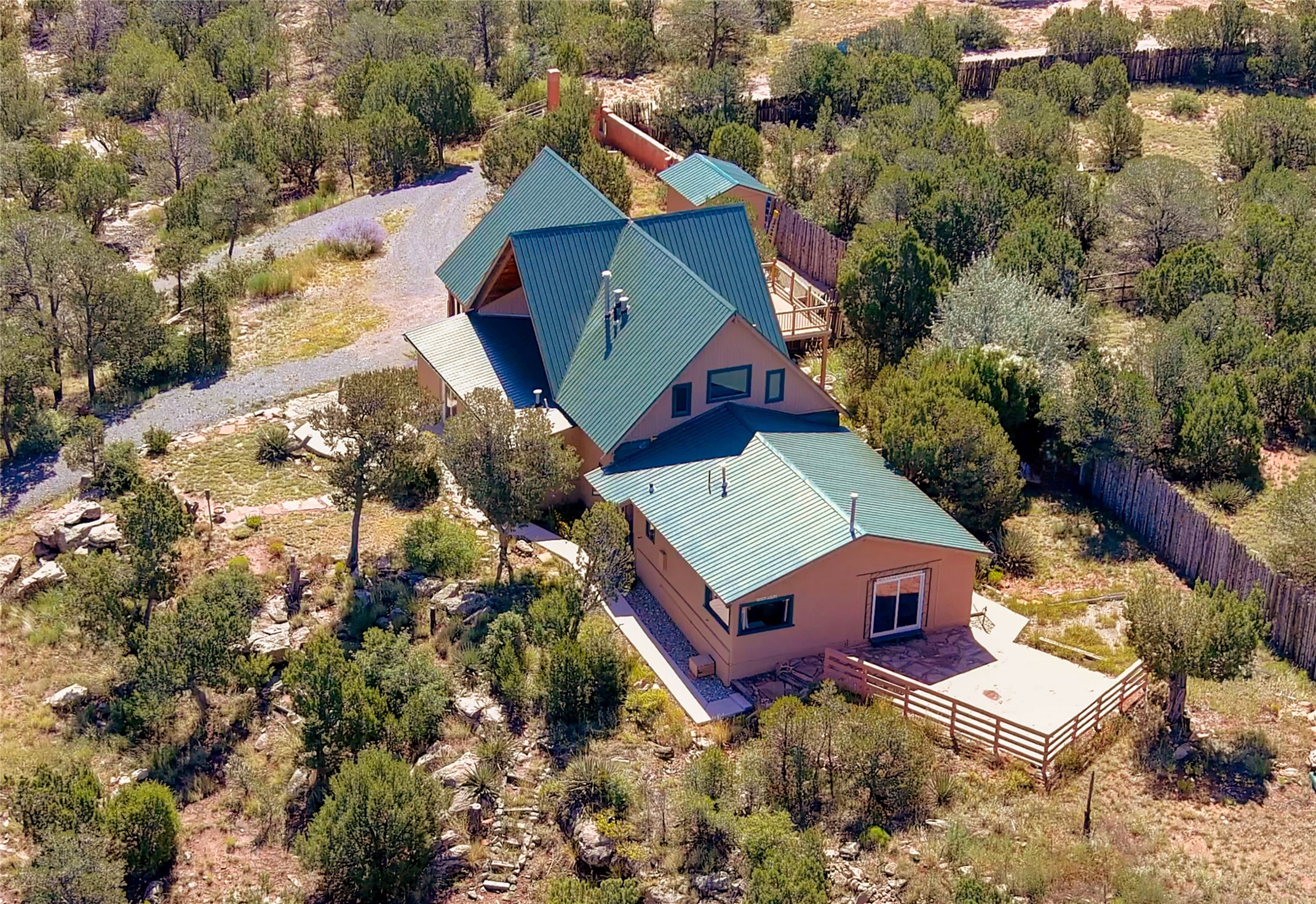 Expansive Views and Endless Possibilities: A Country Retreat on 10 Acres Near Santa FeTucked away in the tranquility of Northern New Mexico, this distinctive property offers a rare combination of privacy, natural beauty, and versatility. Situated on 2 acres with three additional deeded lots--totaling 10 acres--this home invites a lifestyle immersed in sweeping vistas, open skies, and quietude, all within easy reach of Santa Fe.The main residence spans 2,214 square feet, plus 969 sq.ft guest house for 3,383 sq.ft. thoughtfully designed to capture the light and landscape from every room. Warm wood beams, natural flooring, and vaulted ceilings bring a rustic elegance to the interior, enhancing the home's connection to its surroundings. A sun porch entry welcomes you in, setting the tone for a home that is both inviting and expansive.The heart of the home is a custom-designed kitchen with a generous island and adjacent dining area. A gas fireplace adds warmth and ambiance, making it a comfortable space for both quiet meals and lively gatherings. With three bedrooms and three baths, the layout offers flexibility, with the bedrooms that can serve as home offices.The primary suite is a true retreat, featuring a private walk-out balcony, a luxurious whirlpool tub, and breathtaking 360-degree views of the surrounding high plateaus and mountains. Every aspect of this space is designed to create a sense of peace and immersion in the landscape.Attached to the main home is a 969-square-foot guest house, complete with a private entrance, view patio, and three-quarter bath. Whether used for visiting family, long-term guests, or as a rental opportunity, this space offers comfort and privacy without compromising on style.Beyond the living spaces, the property presents substantial value in its land. The three additional lots included in the sale not only offer privacy but also development potential. One of the lots (Lot 3) is already equipped with a transformer and community water access, making it ready for construction--ideal for a second home, studio, or income-generating property.Modern infrastructure meets rural living, with high-speed internet already in place and reliable year-round road access. Located just 25 minutes from Eldorado and another 10 minutes from Santa Fe, the home offers a rare balance: peaceful country living within commuting distance to town amenities, cultural attractions, and restaurants.This is more than a home--it's an opportunity to embrace a different pace of life, where wide-open space, architectural warmth, and modern comfort converge. Whether you're seeking a full-time residence, a family compound, or an investment with room to grow, this remarkable 10-acre estate invites you to imagine the possibilities.