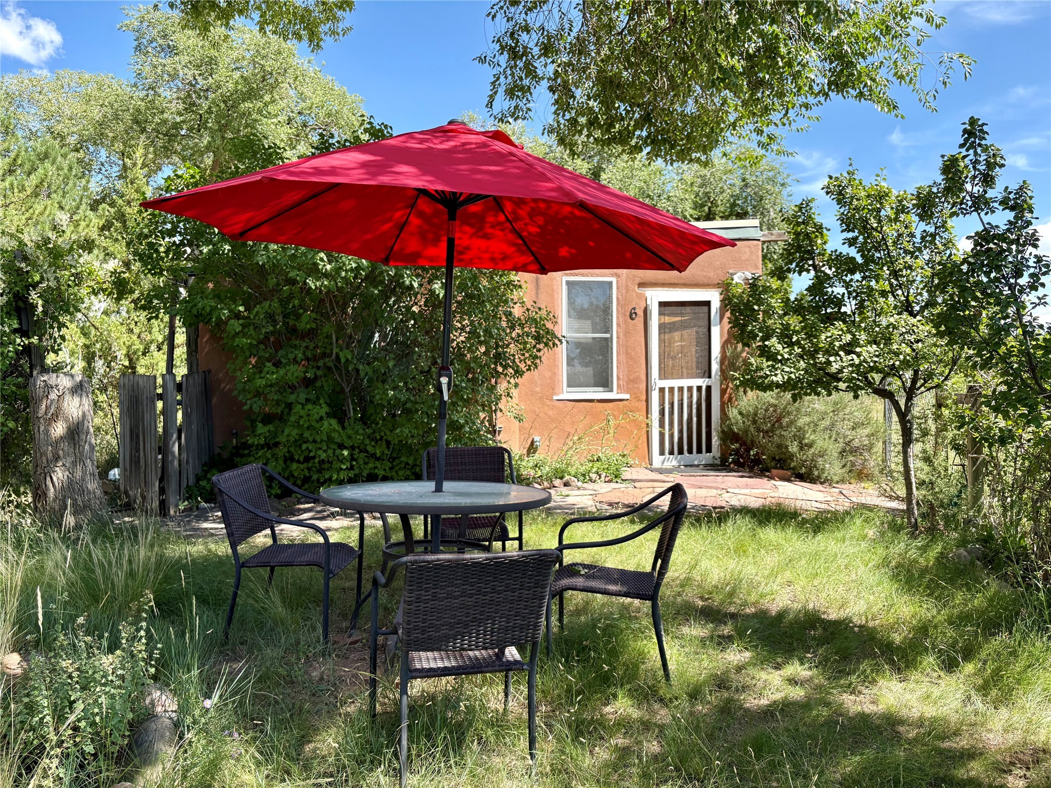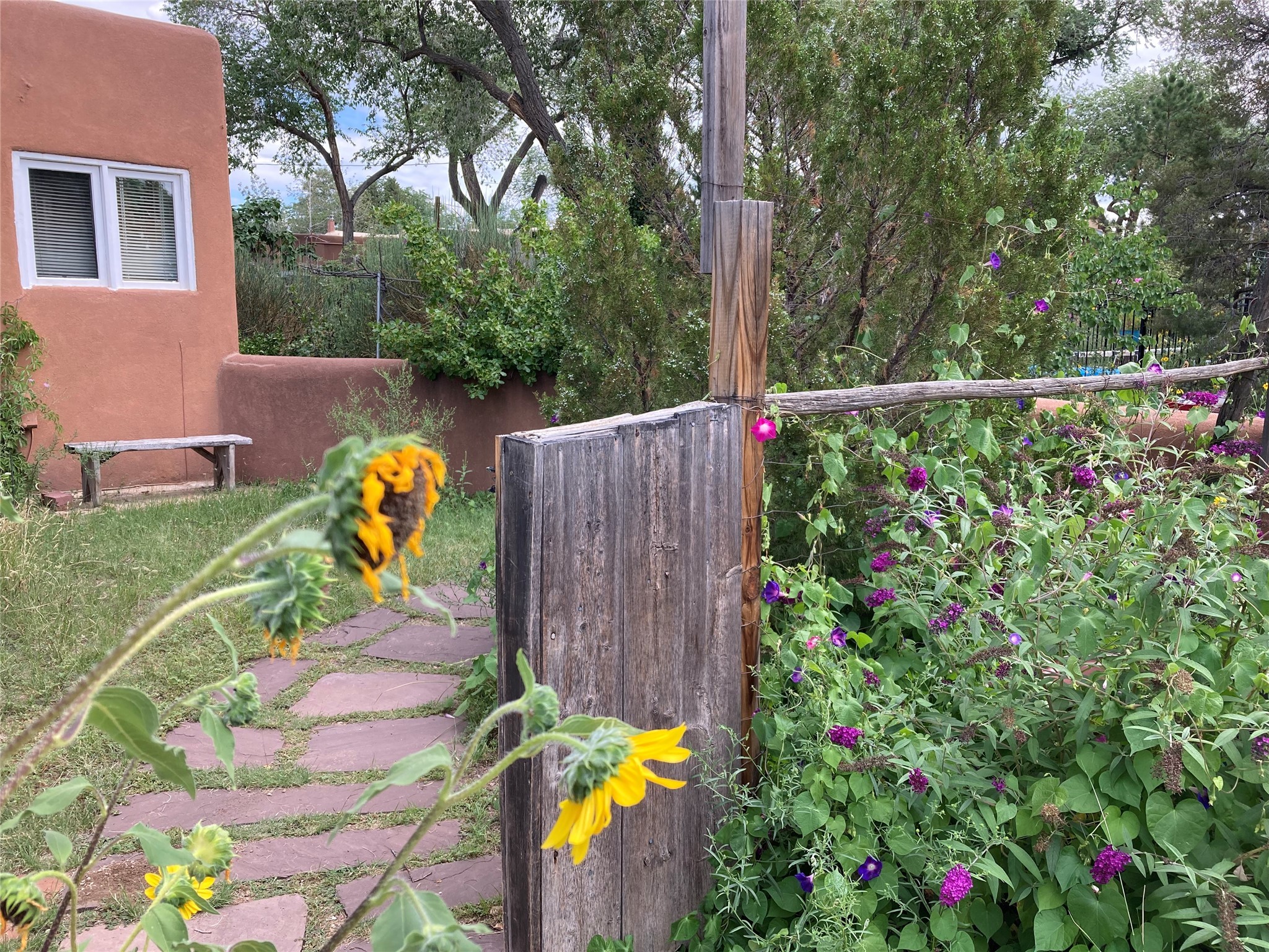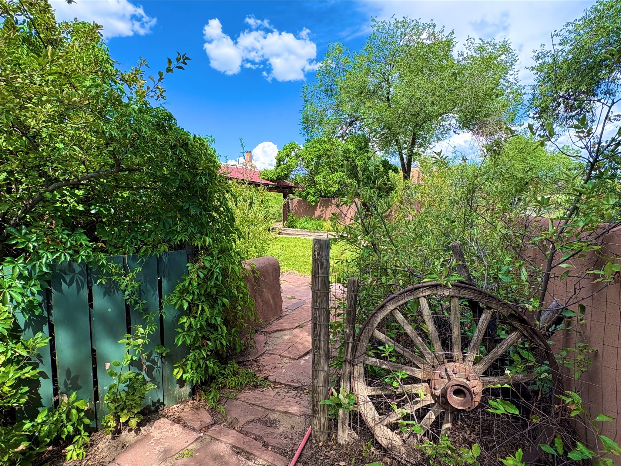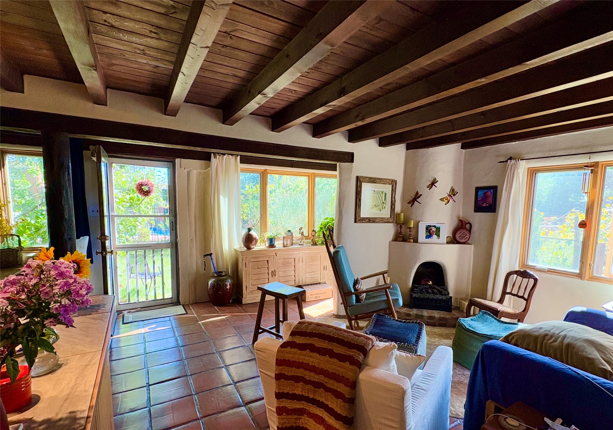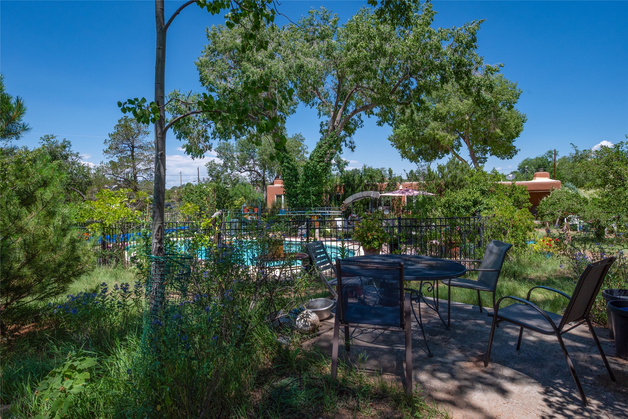*** WEBSITE: oldcompoundsantafe.com *** What's your dream? A historic Santa Fe compound, nestled on about two semi-rural acres, with an adjoining 0.41 acre lot. Less than 3 miles from the Santa Fe Plaza, the 100+ year old adobe residence and five casitas surround a green central oasis and a small swimming pool. + Imagine the possibilities: retreat, extended family, intentional community, workshops, therapy & health, retirement, or something not yet imagined. +Reserved development rights on 2/3 acre and the vacant lot expand the possibilities. +The current owners discovered the compound in 1969, bought it in 2006, and have been restoring, planting, and loving it ever since. They are ready to offer the compound to new owners, whatever their new dreams may be. + 6 units in 4 buildings, with 8 bedrooms, 8 baths, 9 fireplaces. (Note: Fires in fireplaces are photoshopped in. Buyer should verify fireplaces' functionality.) + Total heated space = 6215 sq. ft. + Each unit has private outdoor garden space. + Extensive remodeling: kitchens and baths, oak and brick floors, new Pella windows, TPO roof, and more. + Landscaping with hundreds of native trees, bushes, vines, and flowers; rock walls and fences. + 12' x 28' Barn with roll up garage door.