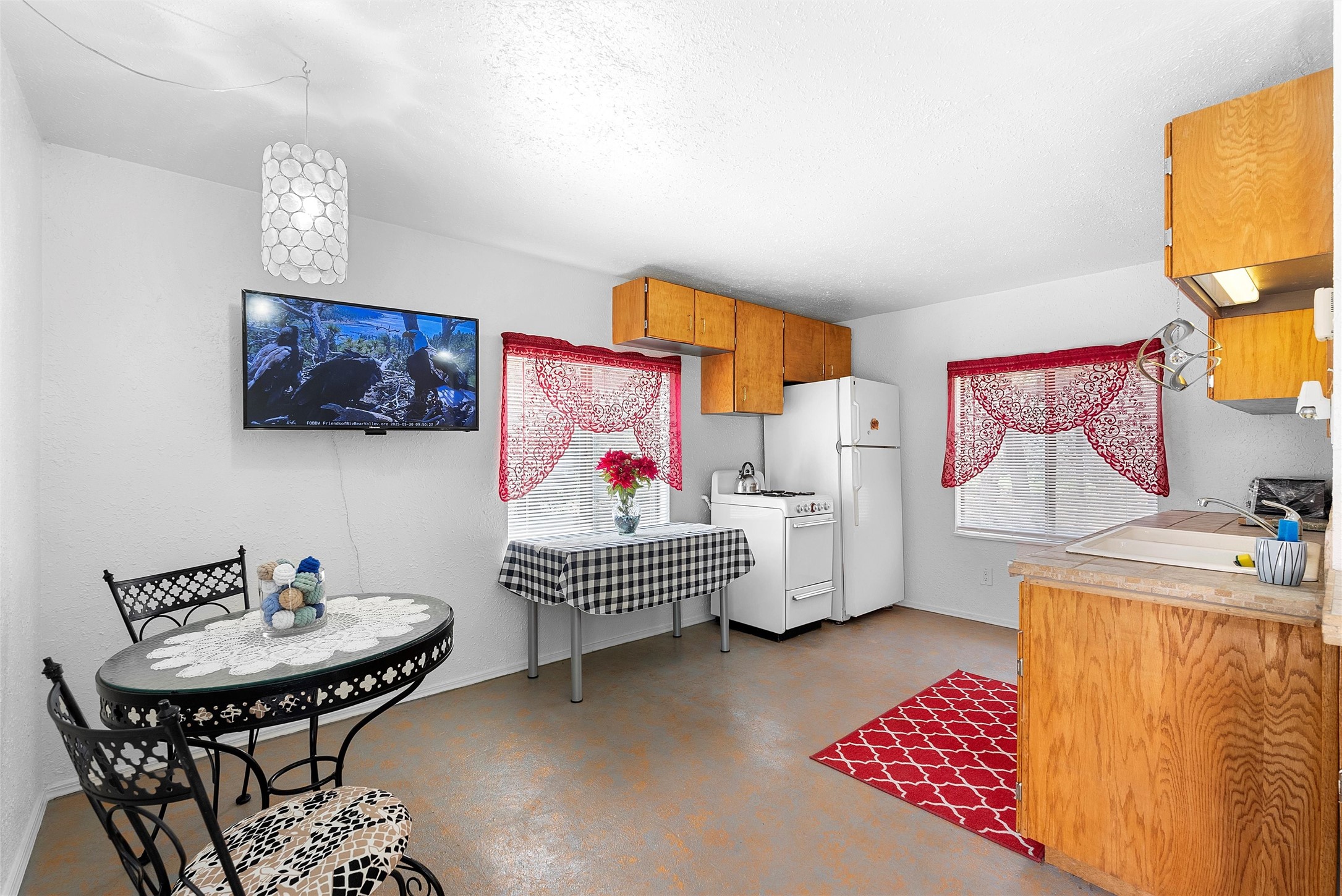 UNLIKE ANYTHING ELSE IN THE EAST MOUNTAINS, THIS EXPANSIVE TIJERAS HORSE PROPERTY IS A WORLD OF ITS OWN. Tucked into over four wooded and meadowed acres, it offers a rare blend of space, privacy, and versatility with three distinct residences. The 2-story dome house features exposed beams, tile floors, two fireplaces, and a charming country kitchen. Imagine sitting out on the open patio with 360 degrees of nature. The cozy casita is a perfect studio or guest house, while the spacious cottage--with its open layout, concrete floors, wood stove, and walk-in closet--adds even more flexibility for multi-generational living. A pole barn, detached garage, workshop, plenty of room of animals and toys. Furniture and tools convey--bring your vision and make this one your perfect mountain retreat!
