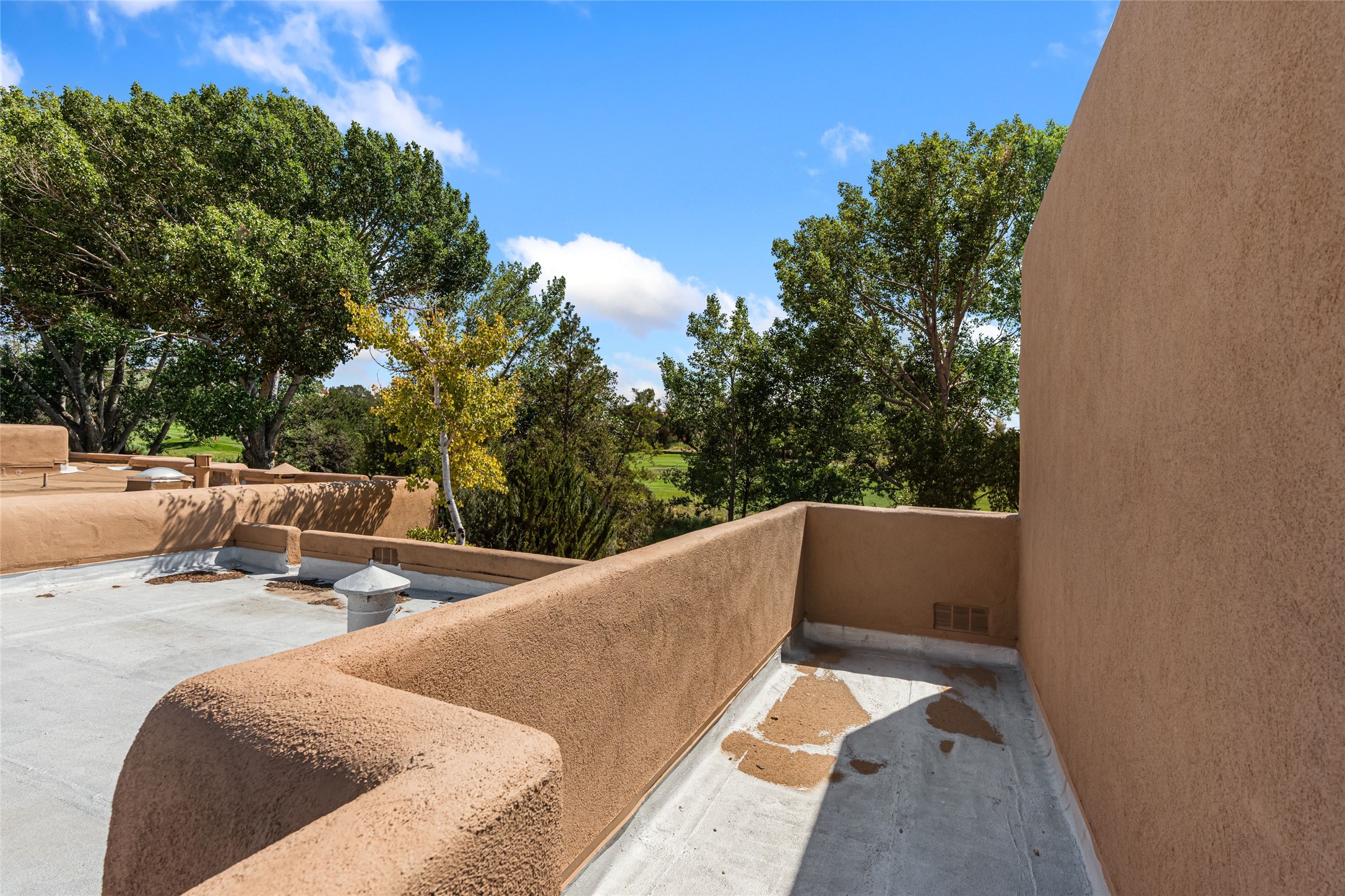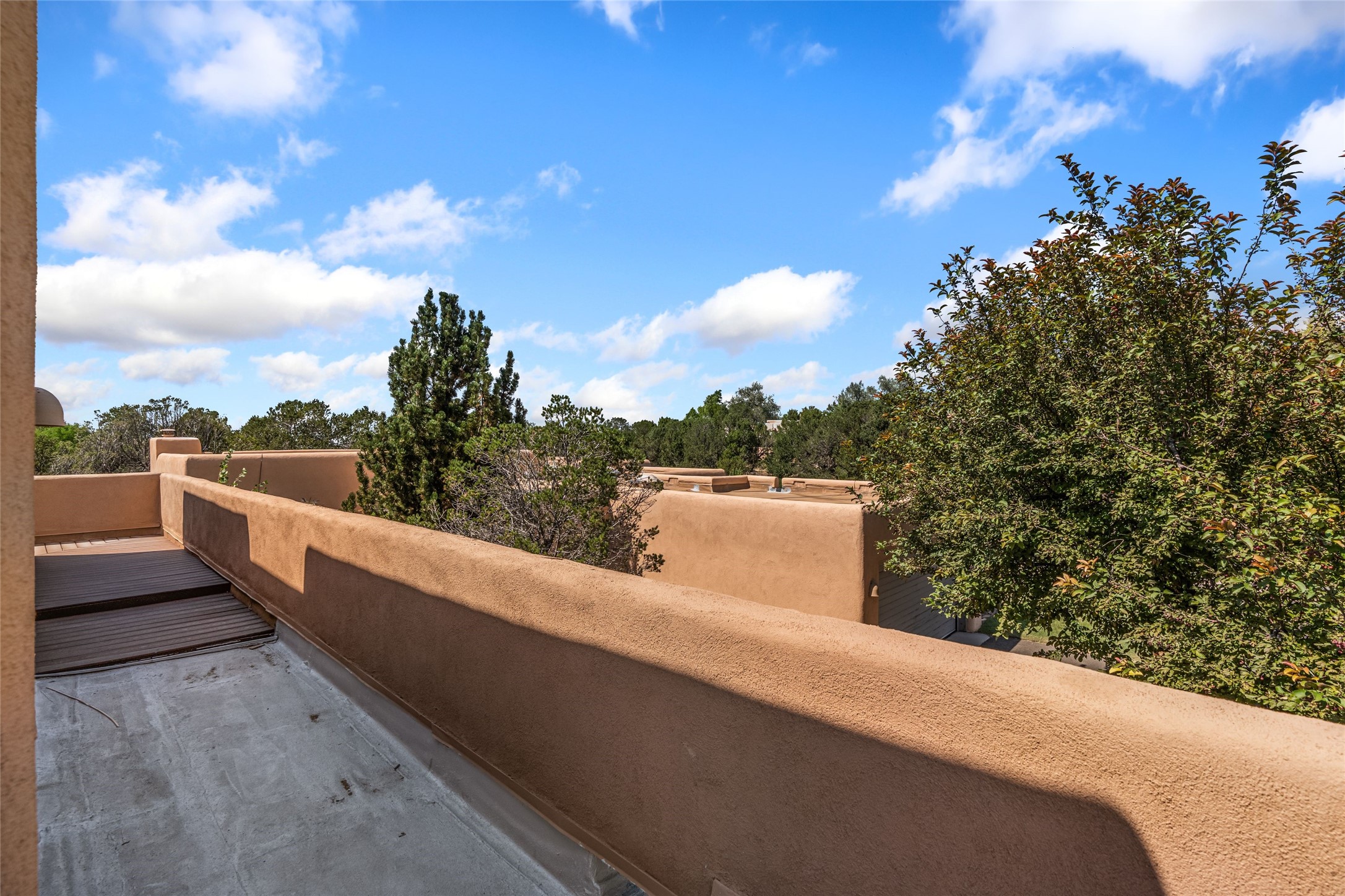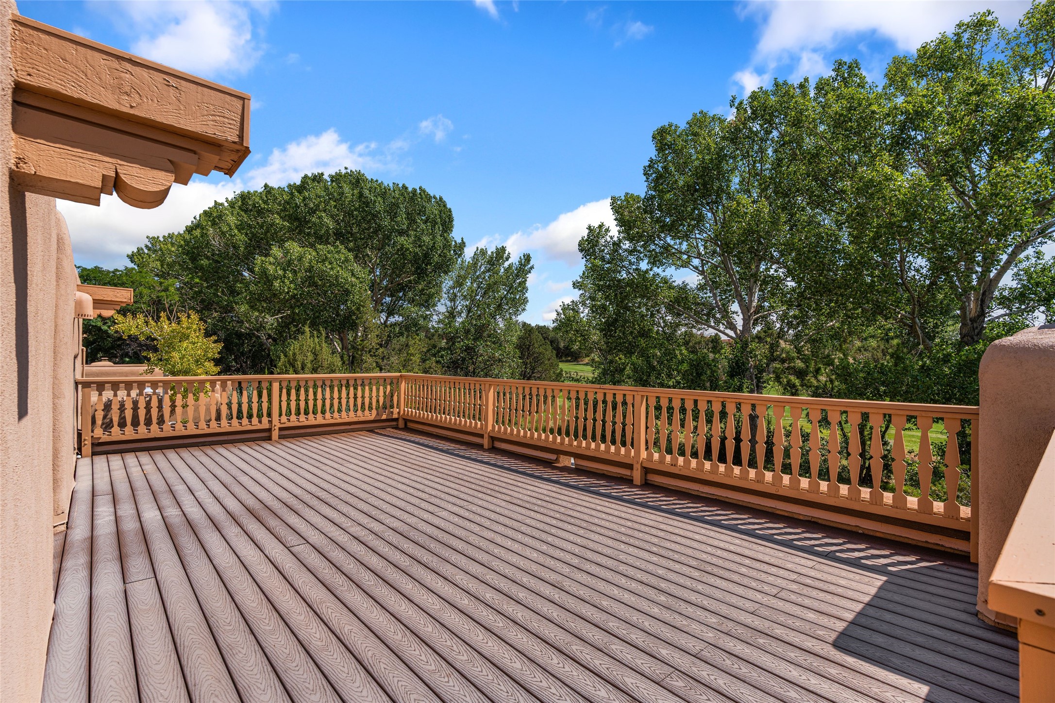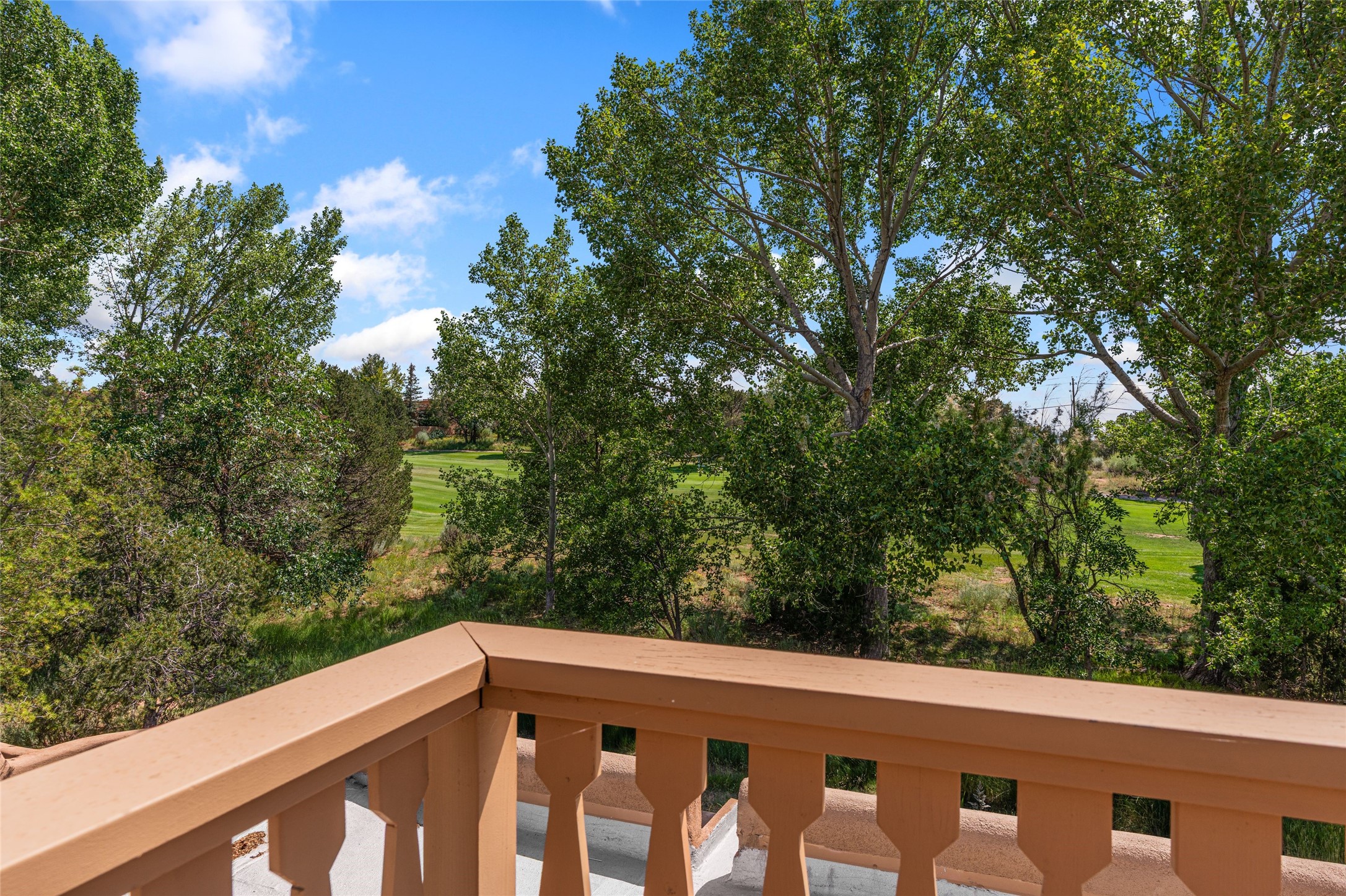 Nestled within the heart of the vibrant and amenity rich community of Quail Run, this lovely 3 bedroom 3 bathroom Santa Fe style home is situated ideally on the golf course set back just enough to enjoy the mature trees while still soaking in the greenery of the fairway. Oversized back portal lends itself to plenty of basking in the sun and enjoying the sunsets. This Pinon D floorplan has just the right amount of space to spread out while simultaneously feeling cozy. When you are ready to feel above it all, head upstairs and enjoy the light filled open space with views out of every window or relax on the deck and enjoy the green vistas and the timelessly beautiful western skies. With access to top tier club amenities and the charm of golf course living, it's the perfect place to relax, entertain, and enjoy the best Santa Fe has to offer. With newer appliances and newer boiler, this condo is ready for you. Walking distance to the Clubhouse and amenities such as 24 hour hosted security, state of the art fitness centers and indoor pool with complete locker rooms, robust pickleball community, tennis courts and engaging 9 hole golf course. Come and experience!