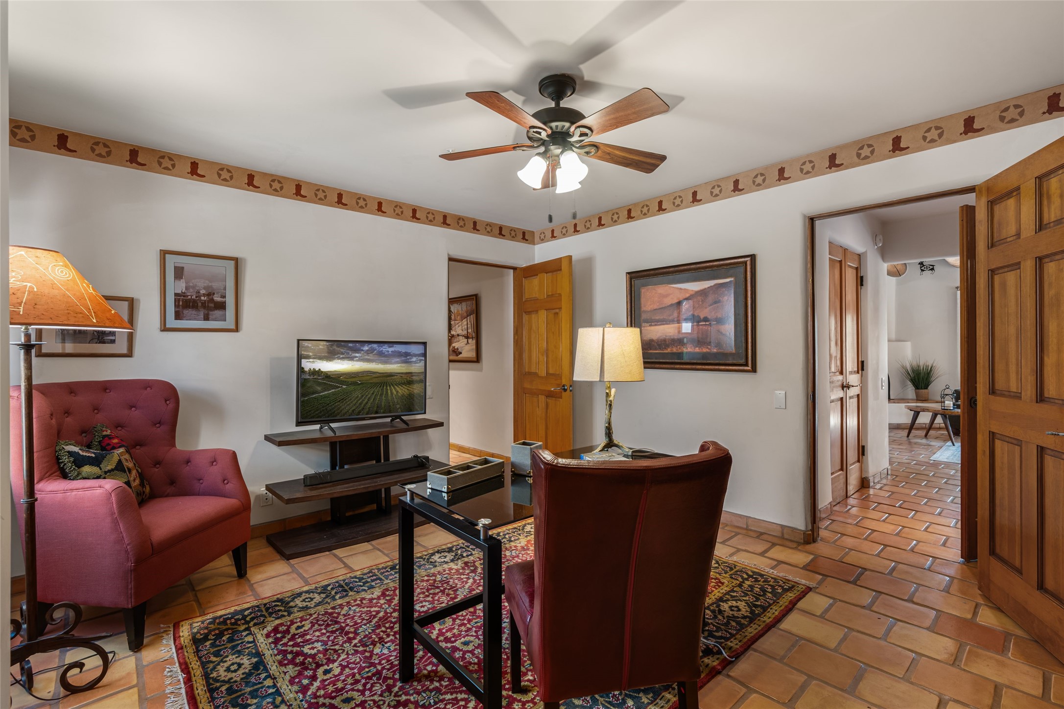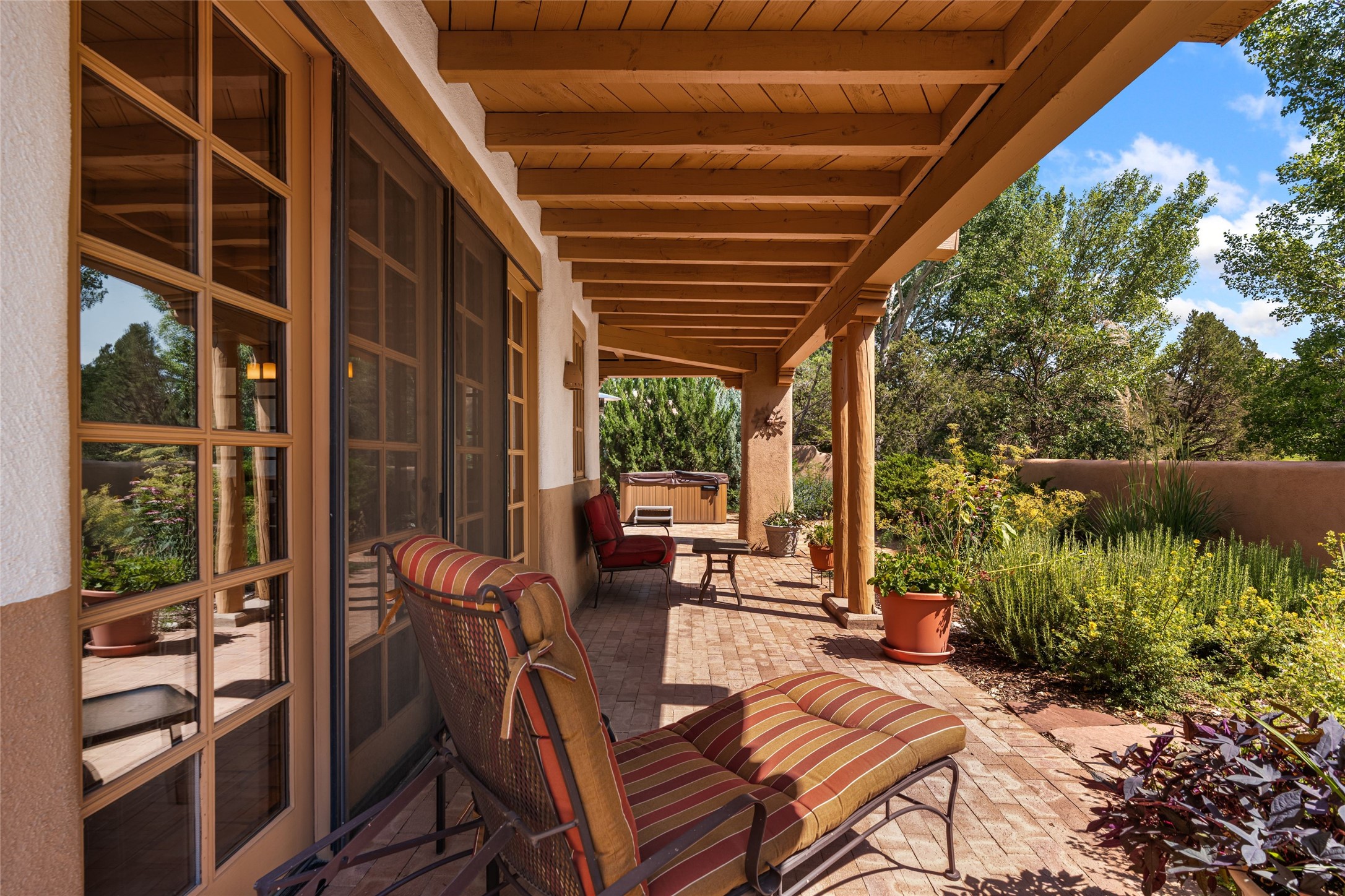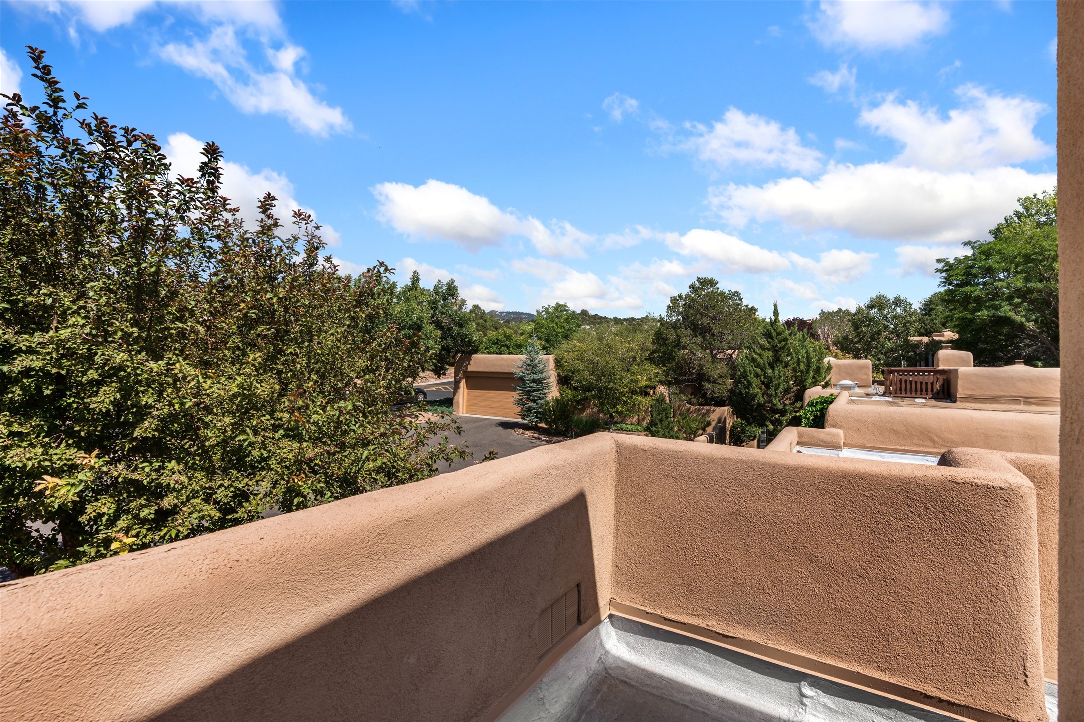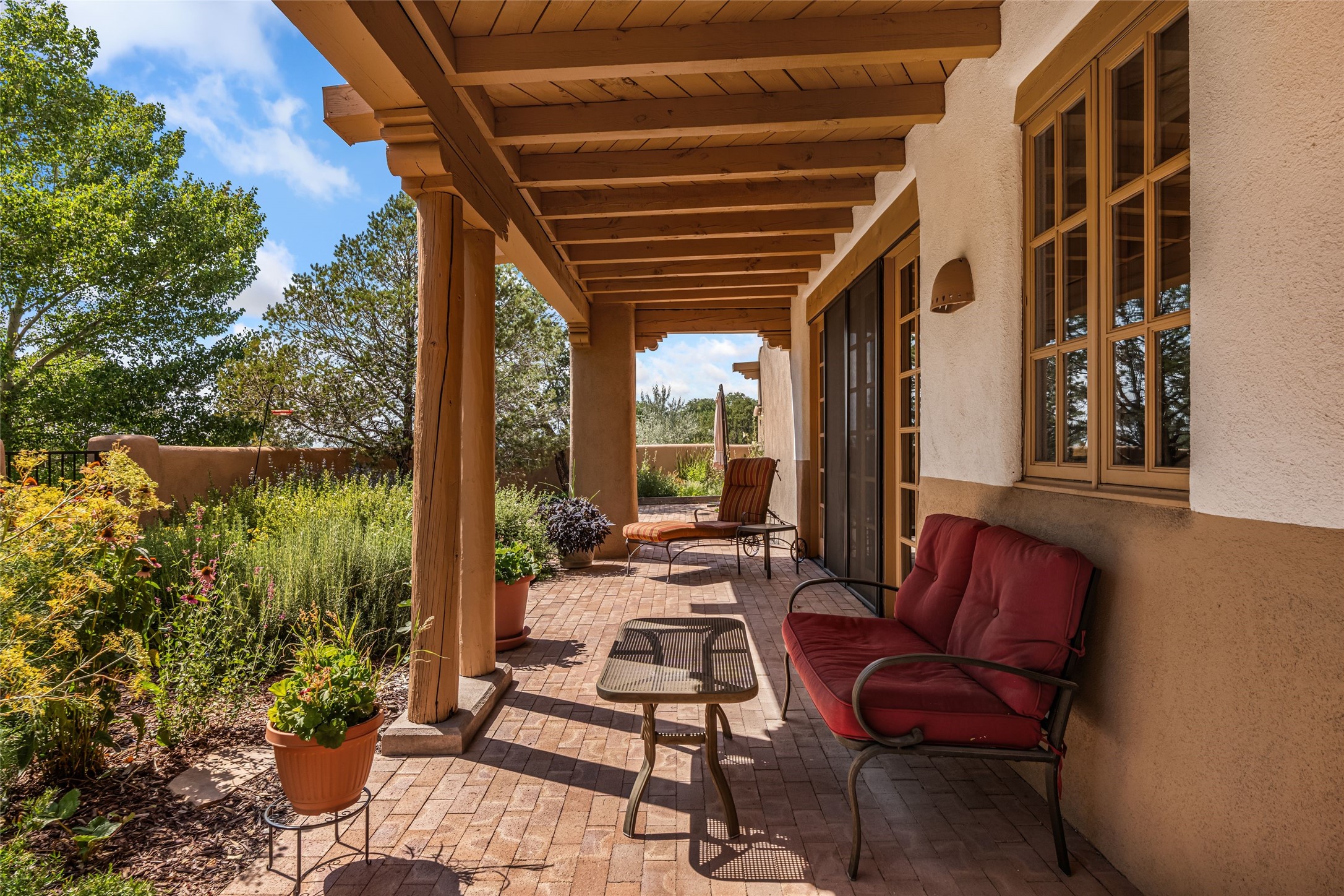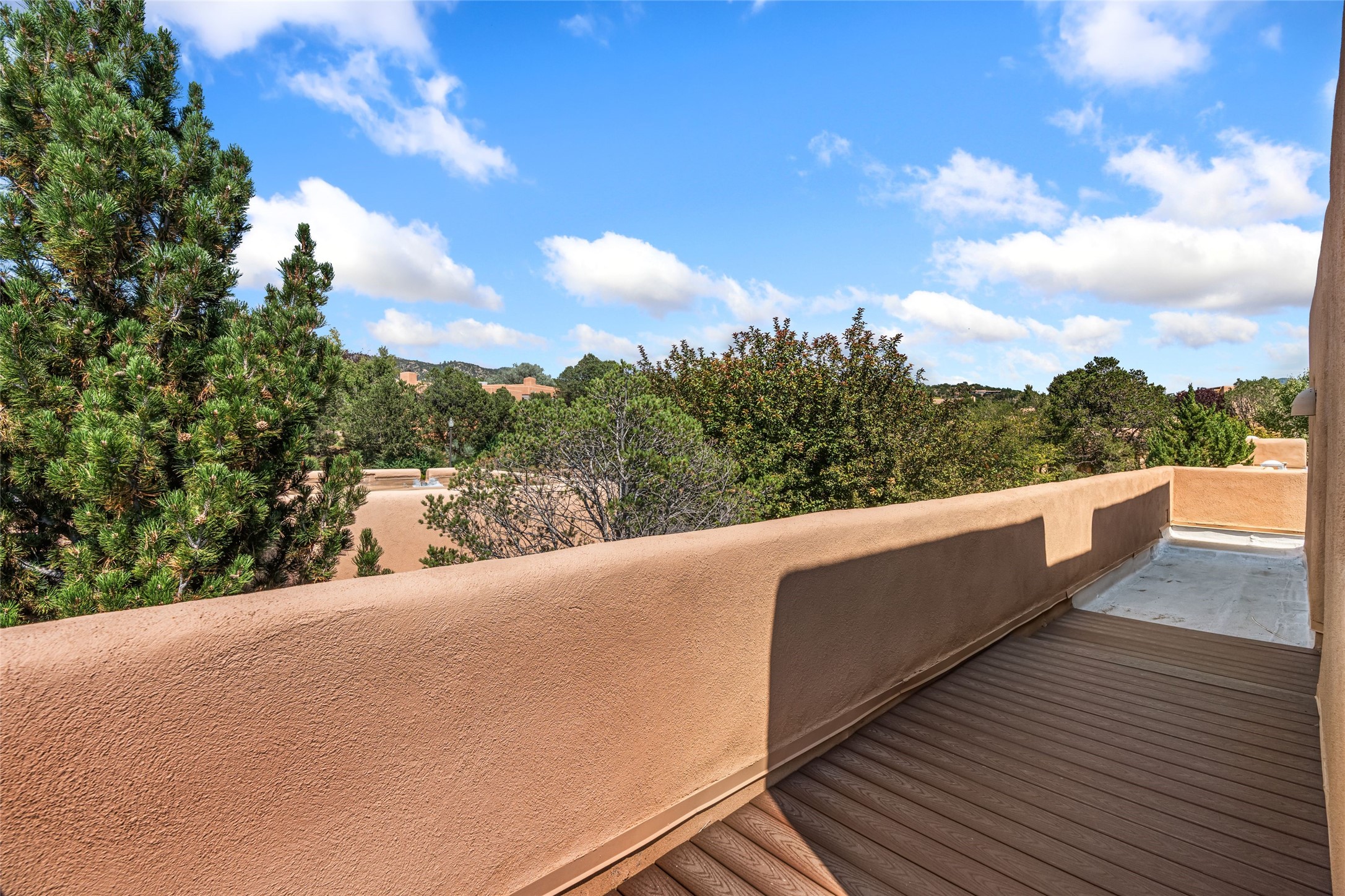 Nestled within the heart of the vibrant and amenity rich community of Quail Run, this lovely 3 bedroom 3 bathroom Santa Fe style home is situated ideally on the golf course set back just enough to enjoy the mature trees while still soaking in the greenery of the fairway. Oversized back portal lends itself to plenty of basking in the sun and enjoying the sunsets. This Pinon D floorplan has just the right amount of space to spread out while simultaneously feeling cozy. When you are ready to feel above it all, head upstairs and enjoy the light filled open space with views out of every window or relax on the deck and enjoy the green vistas and the timelessly beautiful western skies. With access to top tier club amenities and the charm of golf course living, it's the perfect place to relax, entertain, and enjoy the best Santa Fe has to offer. With newer appliances and newer boiler, this condo is ready for you. Walking distance to the Clubhouse and amenities such as 24 hour hosted security, state of the art fitness centers and indoor pool with complete locker rooms, robust pickleball community, tennis courts and engaging 9 hole golf course. Come and experience!