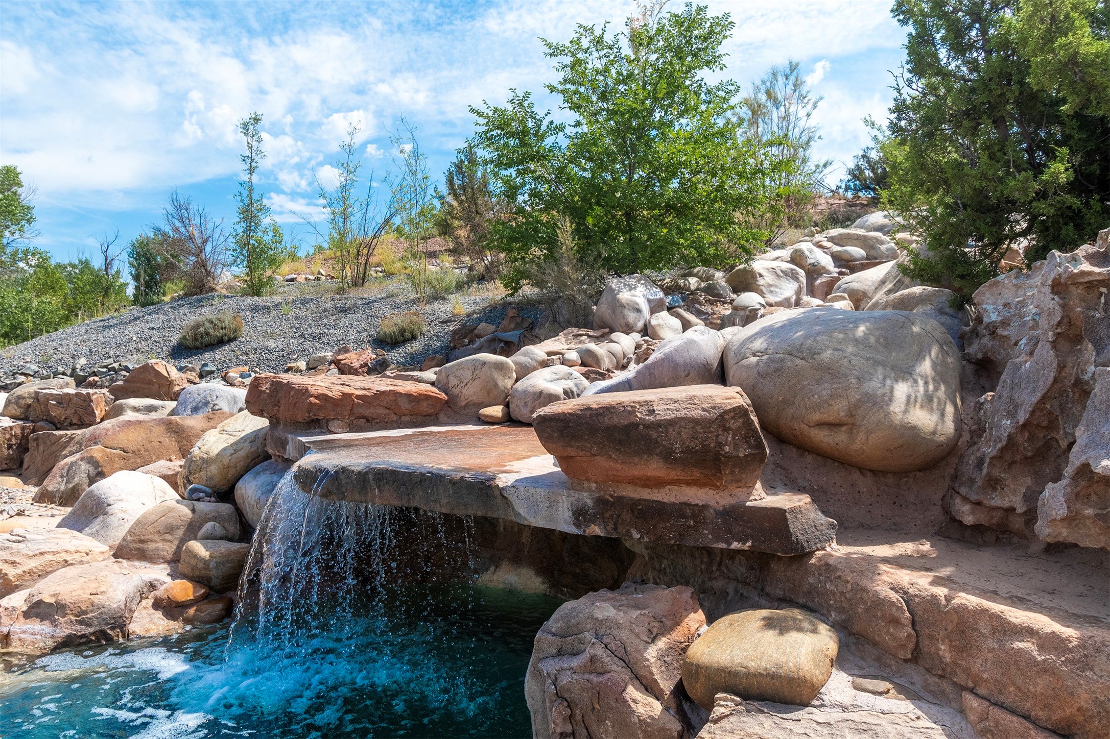 DESERT RIPARIAN DELIGHT - 2 CASITAS | 2 BATHS | 1,900 SQFT | 5.7 ACRES. Fabulously Fun Chimayo River Compound & Leisure Retreat. Welcome the natural bounty of the Chimayo river valley at this open concept modern pueblo casita compound with leisure pools and river access. Beat the heat with the soaking pool complete with waterfall grotto and lounging pad or cozy up in the winter with the hot tub or fire pit. Comprising 2 Casitas; The Pueblo Pool House Casita features a leisure pool, hot tub, waterfall grotto, outdoor shower area and beautiful stone work. The River Casitia is a finished 24' Yurt with added kitchen and bathroom on a permanent foundation next to the river featuring a fire pit area and river access trails. Each building is complete with an outdoor shower for apre l'eau - pool or river. Offering tile porcelain floors, art lighting, under cabinet lighting, 2 outdoor showers, built-in banquette with storage, dishwasher, on site laundry, electric range, insulated windows, hardwood cabinetry, and bronze hardware, Dos Casitas Compound on the River is a delightful wilderness retreat. Located on 5.7 dynamic and beautiful acres In the Chimayo Valley, 40 minutes from Historic Santa Fe and 60 from the Pueblos of Taos. Resting alongside the Santa Cruz River makes this a true oasis in the New Mexico desert. The property is plentiful with river life. Majestic cottonwoods grow alongside the river and vast views of the desert hills and mesas of northern New Mexico offer the senses peaceful imaginings. Adjacent to acres of BLM land, makes this a wonderfully secluded location at the end of a private road. Conveniently located just five mins from village stores, shopping, and not much further to nearby restaurants, historic and local attractions. Imagine this as the amazing Art Studio or Yoga Yurt of your dreams. Perfect for Investor Wilderness Spa Retreat or further Compound development. Visit today and own a piece of Northern New Mexico paradise tomorrow.