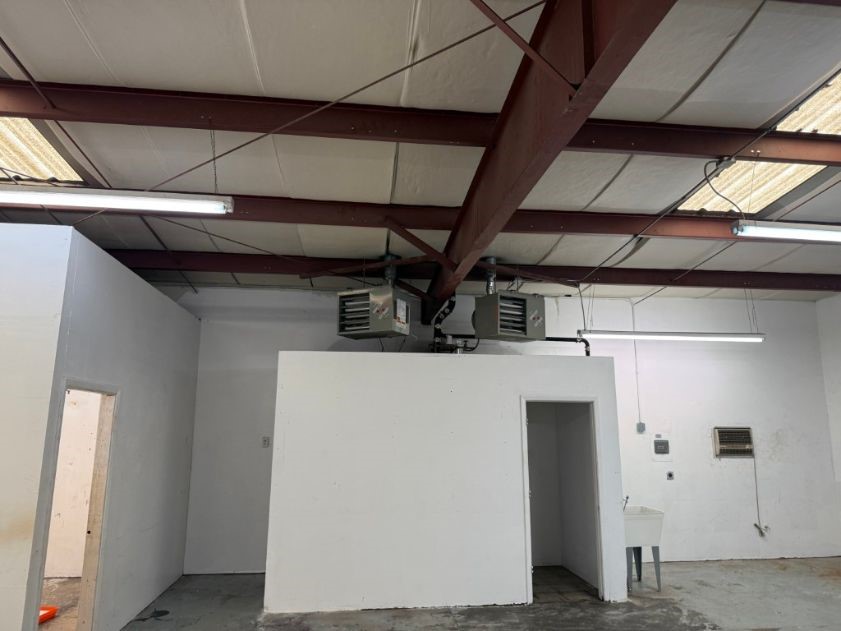 Current Use Commercial/ light industrial multi - tenant ( 2 units)Building Type Light industrial/commercial warehouseBuilding Area 3, 200 square feet (currently delineated into two 40'x40' units; originally four 20'x20' units )Number of Stories One Basic Structure SteelFoundation concreteExterior Wall Cover MetalRoof/Metal /Roof DrainageGutters and downspoutsInterior Wall Cover Painted drywallFlooring Exposed concreteCeiling Painted drywall (office), Steel I - beams/insulation (warehouse/workshop)HVAC Gas fired suspended heaters, wall/window a/c, evaporative coolerDoors/Exterior: Metal; Interior: wood/ WindowsWindows: Double glazed metal casementRestrooms Four (one for each potential unit)Lighting Fluorescent , incandescent, skylightsUtilities All/publicAge The Santa Fe County assessor lists the construction of the property as 1981 .Parking Unmarked paved parking lot Additional Features Two rollup garage doors per unit (Unit 2 C/D - 2 nd rollup door enclosed with windows); chain - link fencing; loading dock on the north side of buildingIn an area currently experiencing gentrification.