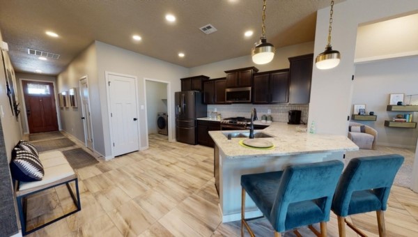 Come visit the new model to see all this home has to offer. With three bedrooms and two baths on a single floor, this home comes standard with a two-car garage. Natural light floods each room with 9' ceilings throughout adding volume. Granite countertops are standard in the kitchen and baths with a 4" granite backsplash.The kitchen has a pantry and a large island. Appliances include Stainless stell range, built in microwave and oven and dishwasher. Tile Floors in the laundry room, kitchen, dining area, entry and baths. This home has lots of energy efficient features: low E dual pane windows, programmable thermostats, 95% energy efficient gas furnace and so much more.