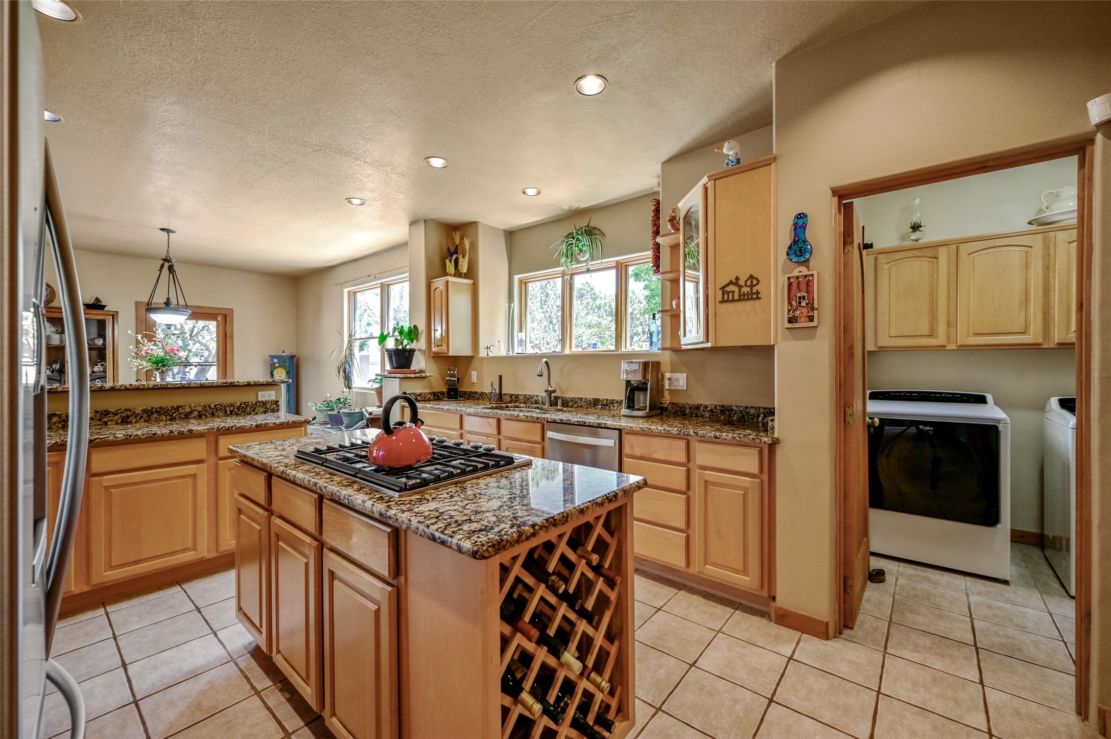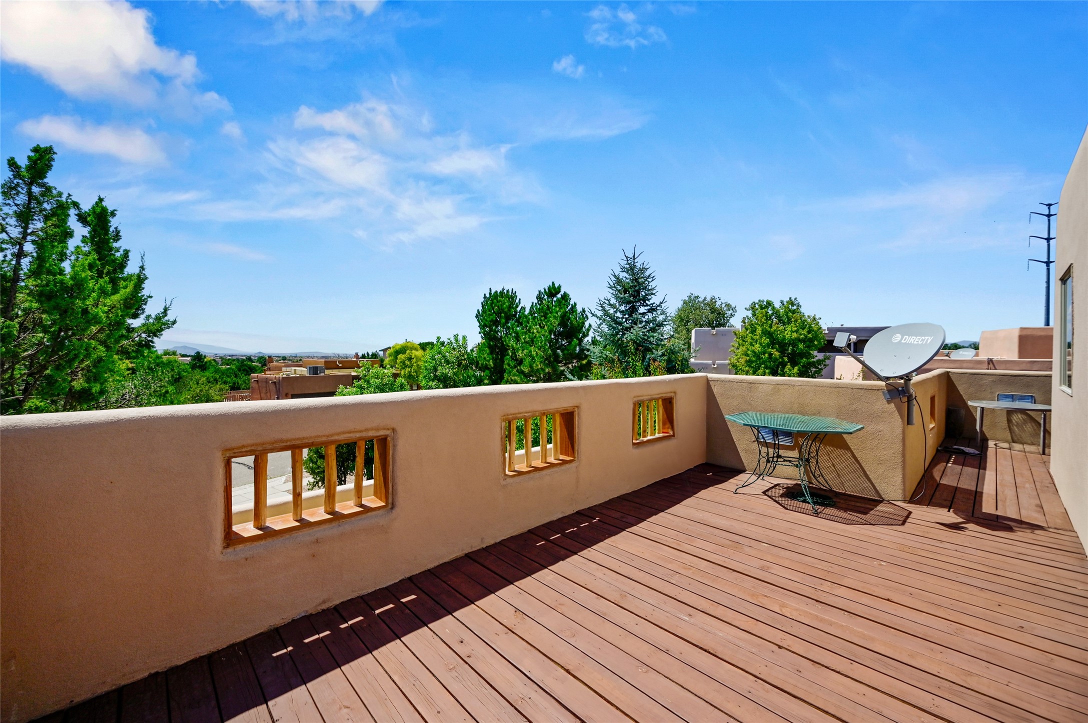 Welcome to this one-owner home in the sought-after Pueblos del Sol community. This custom two-story home offers 3 bedrooms and 2 full bathrooms, a thoughtful layout, and ample natural light throughout. The house has been lovingly maintained over the years, featuring newer kitchen appliances, Pella windows, and an updated roof. Front and back landscaped yards offer a quiet retreat and space to unwind. Two separate decks provide stunning views of the Sangre de Cristo, Sandia, and Ortiz mountain ranges--perfect for enjoying morning coffee or sunsets. Backing up to open space and trails, the property offers privacy and a connection to nature.
