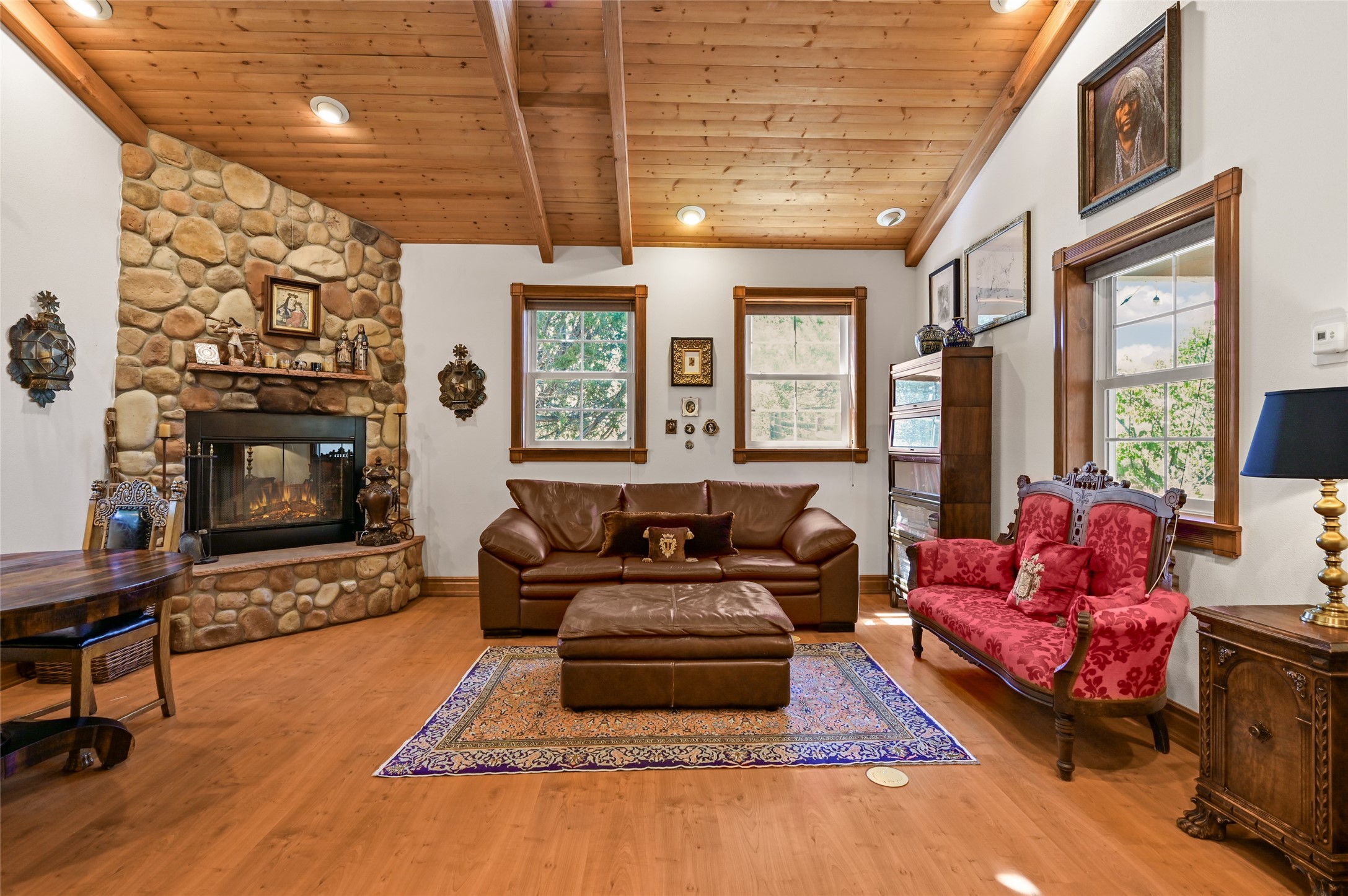 - Fireplace FeaturesGas, Wood Burning