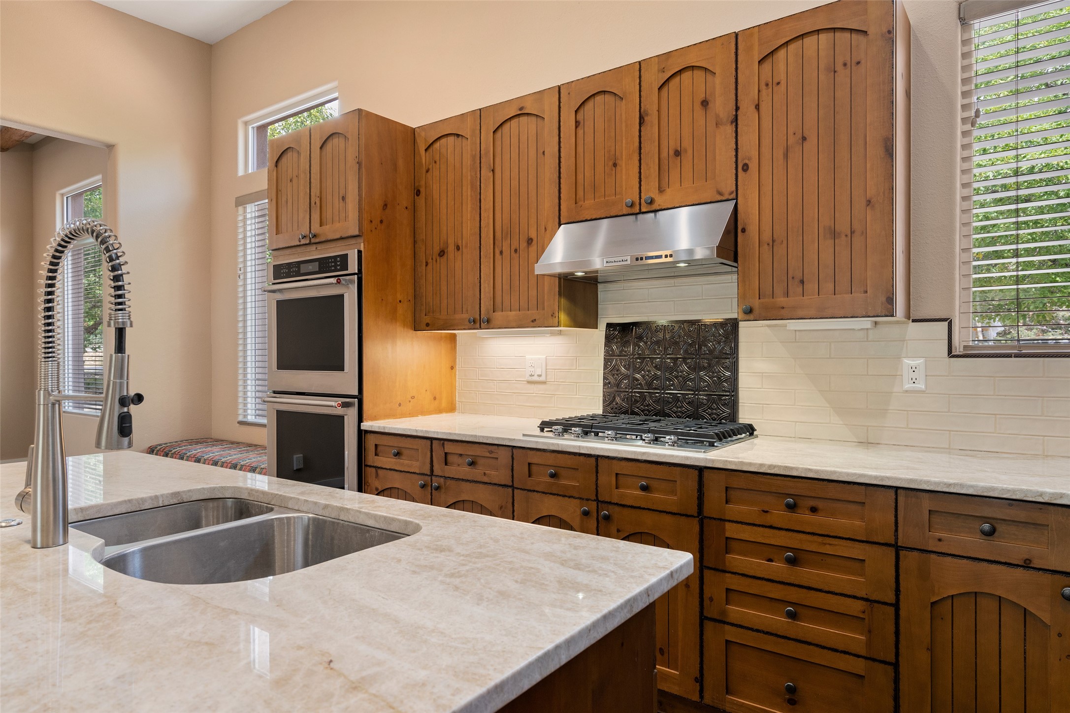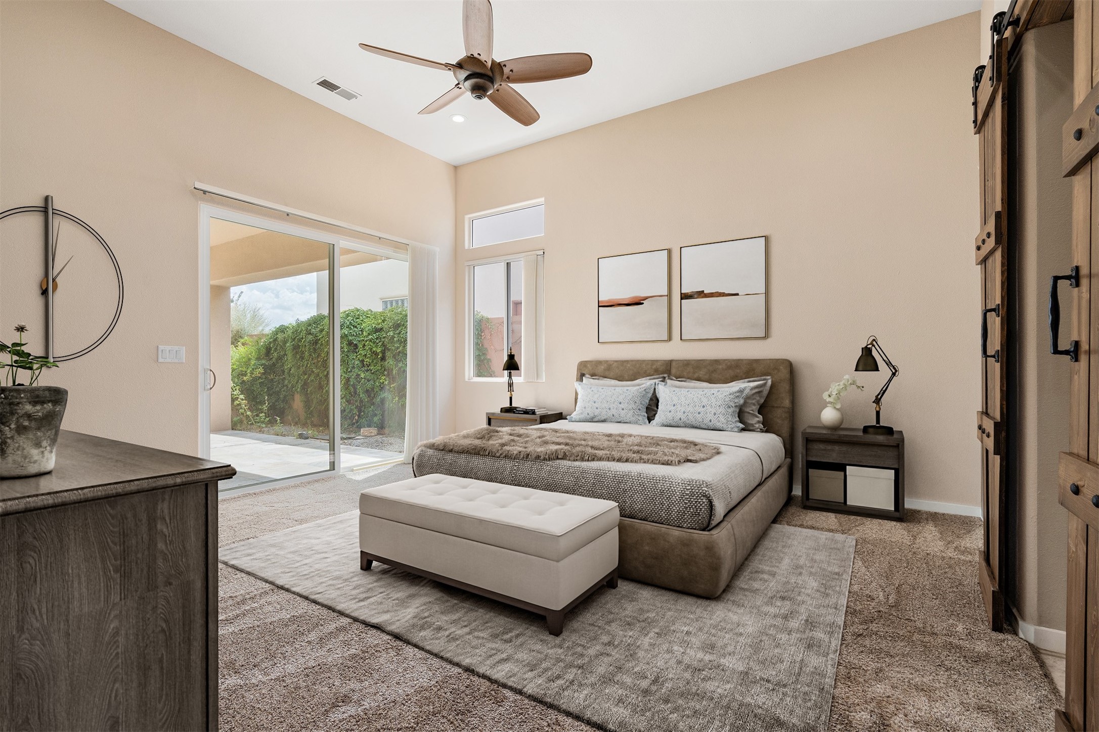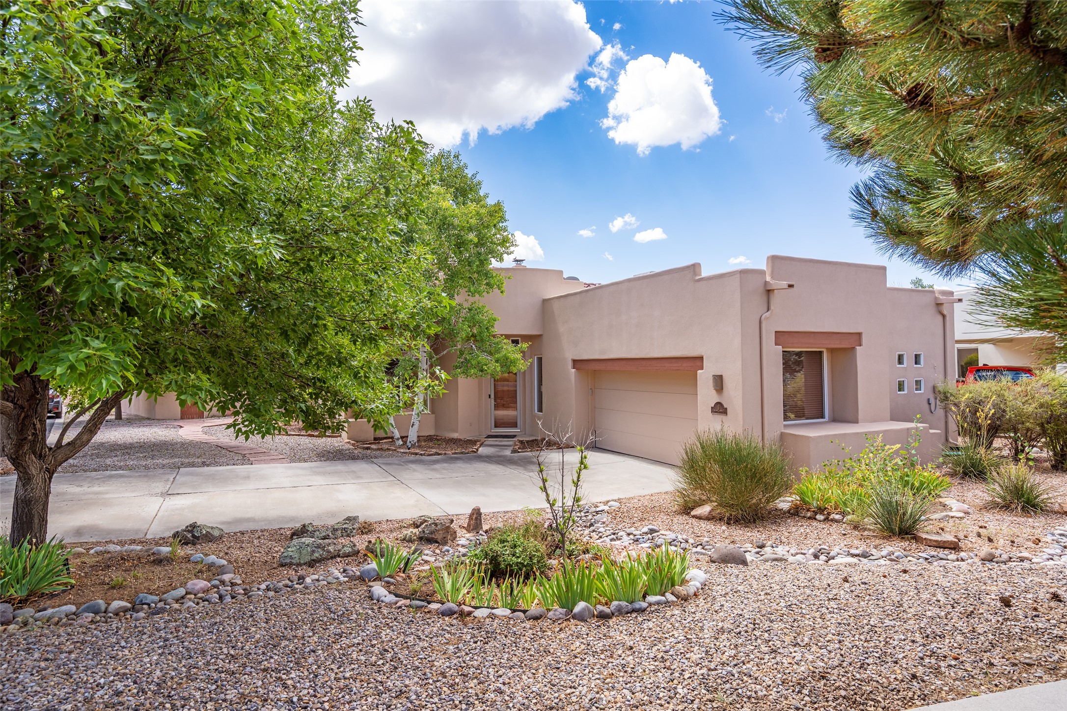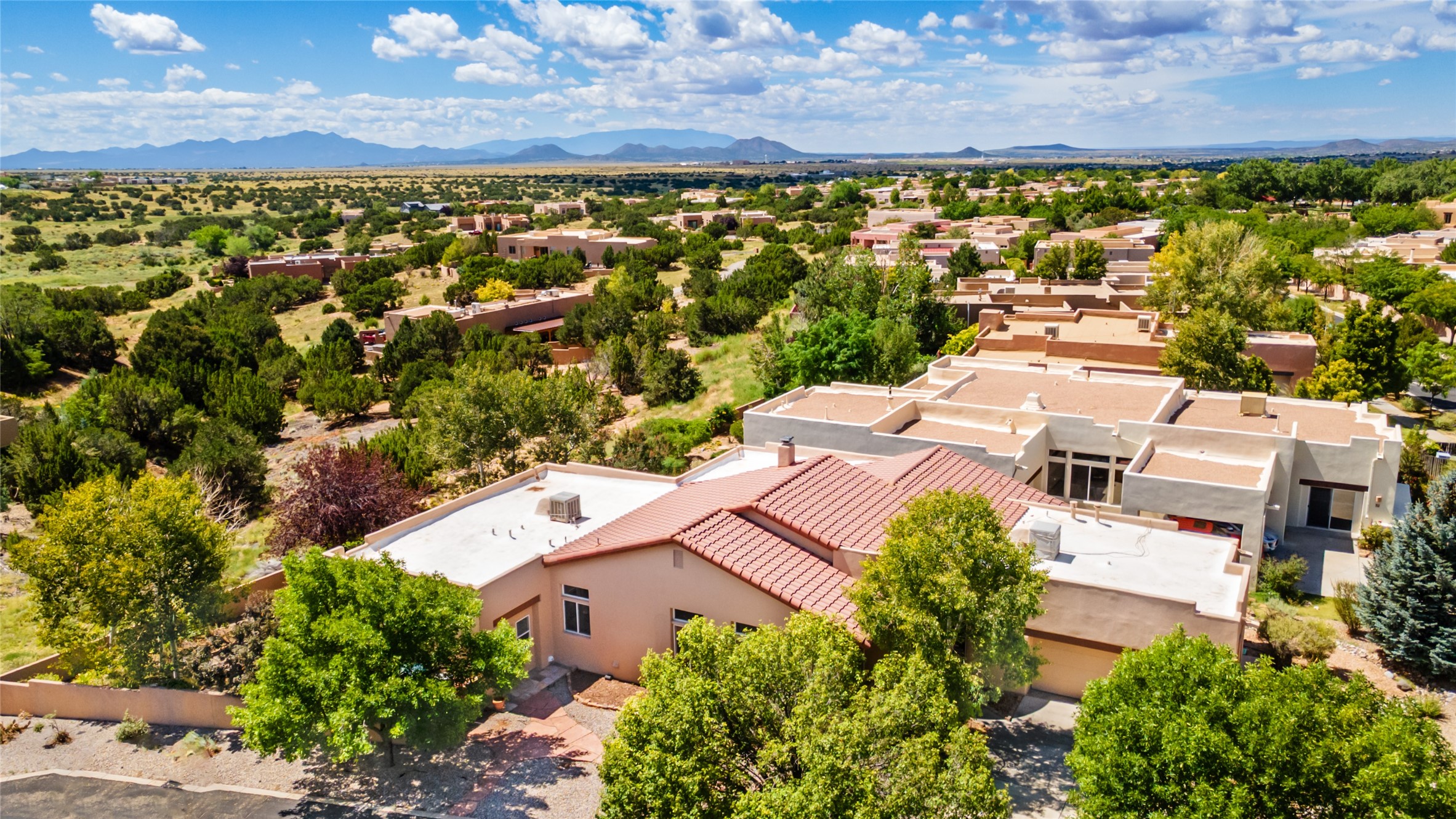 Look here: a stylish and updated home on a desirable corner lot! This immaculate single-level home has been extensively updated and shows beautifully. With over $170,000 in thoughtful renovations completed just a few years ago, the home feels modern, fresh, and move-in ready. The kitchen is a true centerpiece, featuring granite countertops, a custom tile backsplash, double ovens, a five-burner gas cooktop, under-cabinet lighting, a remodeled island, and a charming window seat. Wood-look tile flooring, bedroom carpet, and a paint refresh complement the home's warm modern-rustic style, while recessed LED lighting adds everyday brightness. The spacious primary suite is a serene retreat with a spa-like bath. You will love the separation from the other bedrooms. With four additional bedrooms--including a private ensuite with its own exterior access--the floor plan offers flexibility for guests, a studio, an in-home office, exercise room, media room and more! Outdoors, enjoy a covered portal with views of the Ortiz Mountains and thoughtfully designed landscaping that bursts with seasonal color from Virginia creepers, rose bushes, and ornamental fruit trees. All this in an unbeatable location: just 12 miles from the historic Santa Fe Plaza and only minutes to shopping and dining. The Rancho Viejo HOA enhances the neighborhood with multiple parks, vast open spaces, scenic paved trails, and well-kept surroundings protected by reasonable covenants. A home that blends style, comfort, and convenience -- and one you'll be proud to call your own.