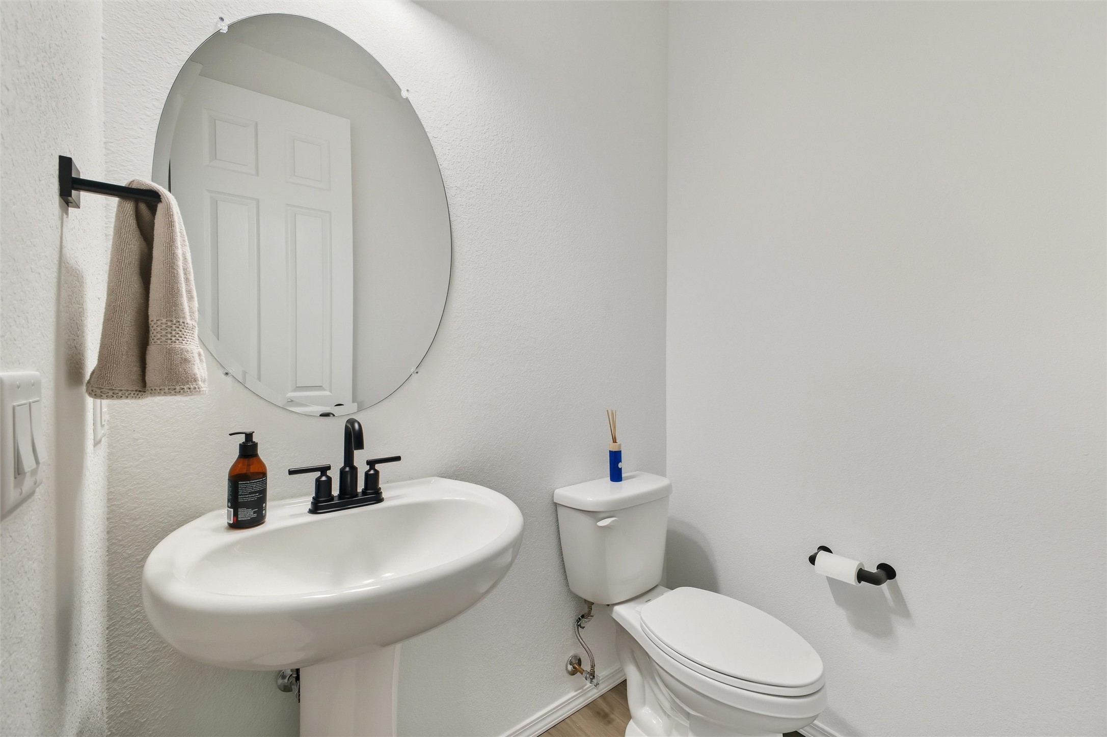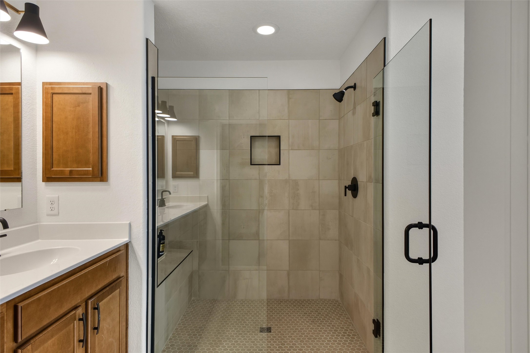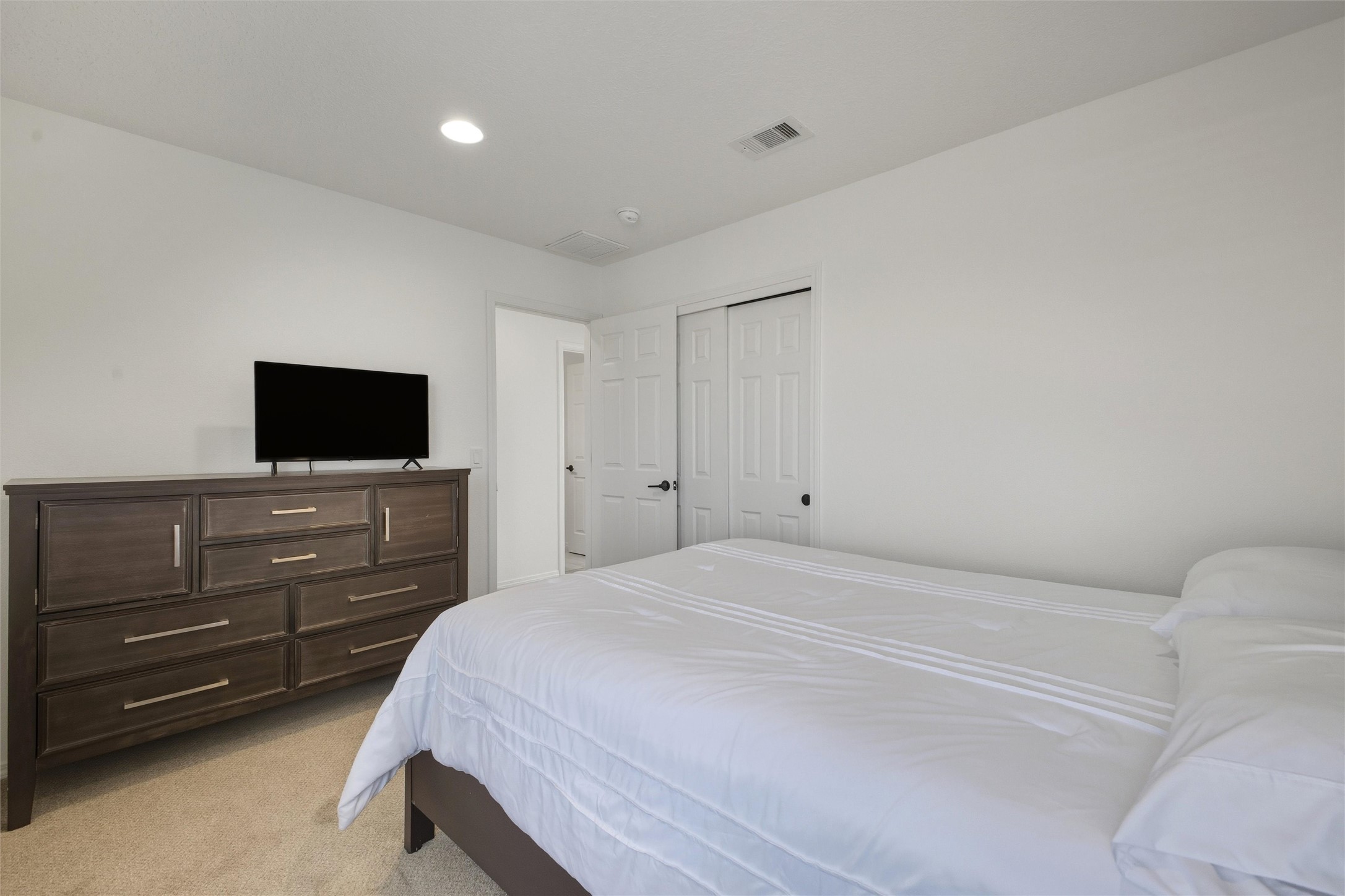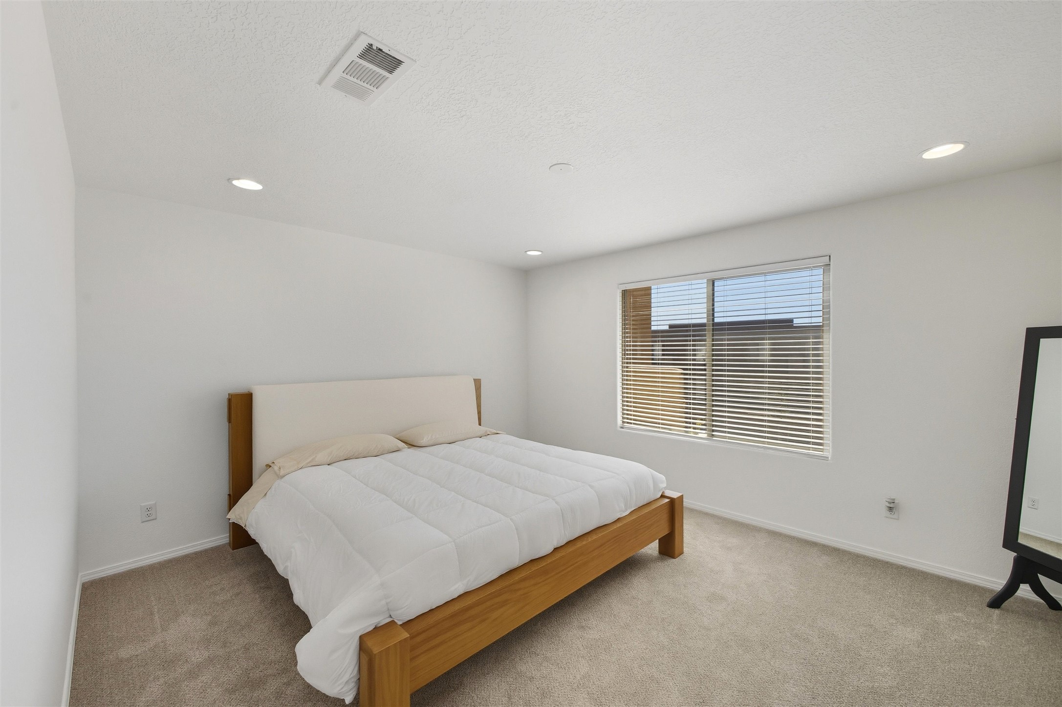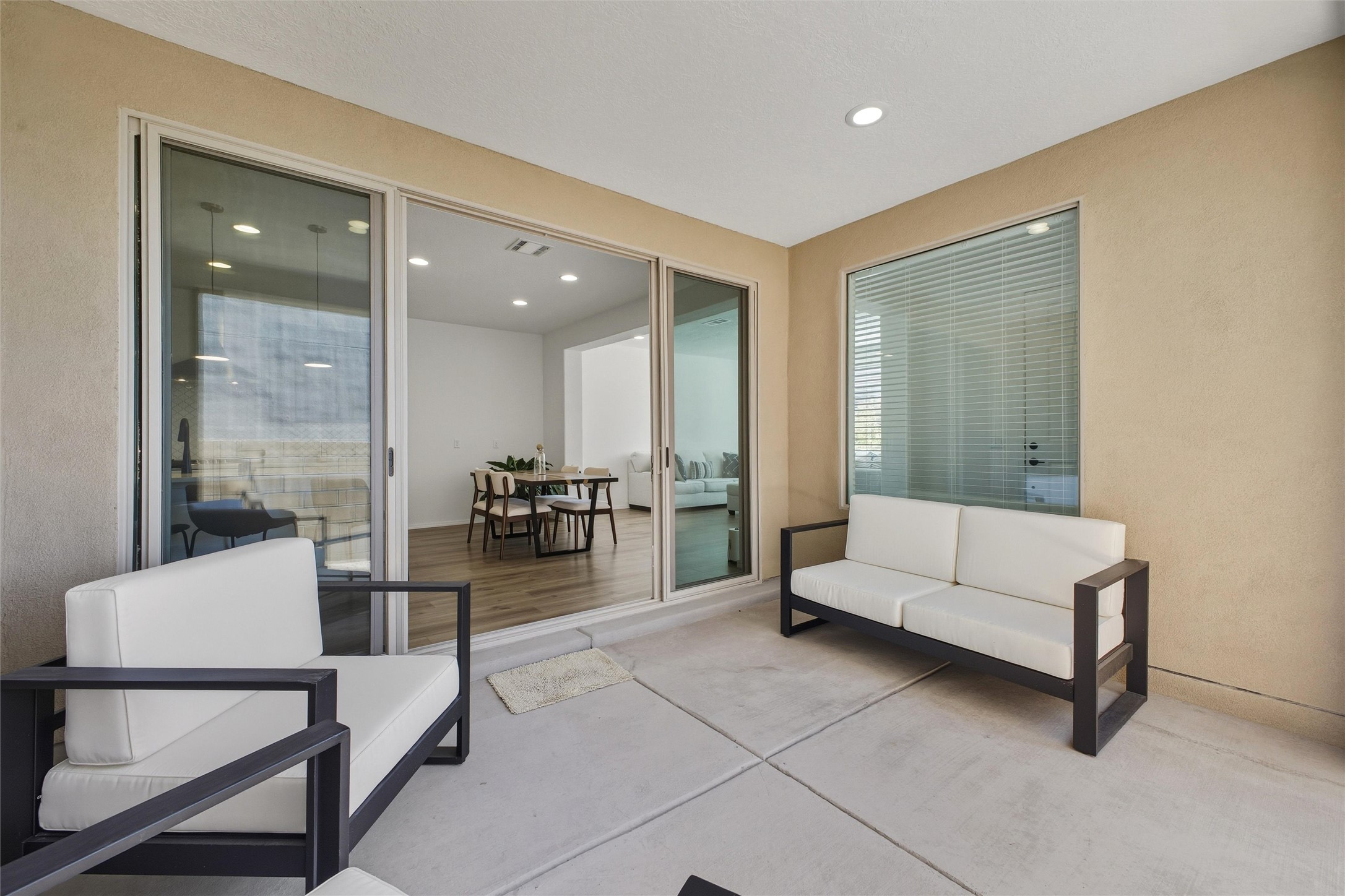 Welcome to your nearly new, 2023 Pulte home, the lovely covered entry portal provides protection from the weather, inside you'll be surprised by the double door closet providing ample storage space. The light and bright floor plan begins with a spacious living room that blends well with the open-concept kitchen and dining space, luxury vinyl flooring throughout. Your well-equipped kitchen features a generous island with seating, spacious pantry, wall oven, 5-burner gas cooktop, modern finishes, newer stainless-steel appliances, custom cabinets, and beautiful quartz countertops. Two sliding doors across from the island offer you easy access to enjoy the lovely Santa Fe weather while you lounge under your covered patio in your private-side courtyard. Just off the kitchen, adorned with beautiful French doors, you'll find a dedicated flex space that you could use as an office, den, or media room, centrally located but separate. The first floor also features a full-sized laundry room, below stair closet/storage and easy access to your two-car garage, all providing you more storage spaces. Upstairs, you'll discover your versatile bonus room, perfect for a kids' playroom, home gym, media space, the opportunities are endless. Your home comes complete with two bedrooms that share a full bath in the hallway, and a spacious primary owner's suite. The primary en-suite bath features double vanities, a generous glass-enclosed tiled shower, and a private water closet, all connected to a large walk-in closet. Your home features an on-demand, energy efficient, tankless hot water heater, central heat and refrigerated A/C, all designed to provide hours of indoor comfort. The Las Soleras community is located just minutes from I-25, the 599, medical facilities, and a plethora of shopping and dining options. Bordering the Las Soleras community you'll find a large open space featuring a park that offers a basketball court, playground, dog run, walking trial and a cabana for entertaining.