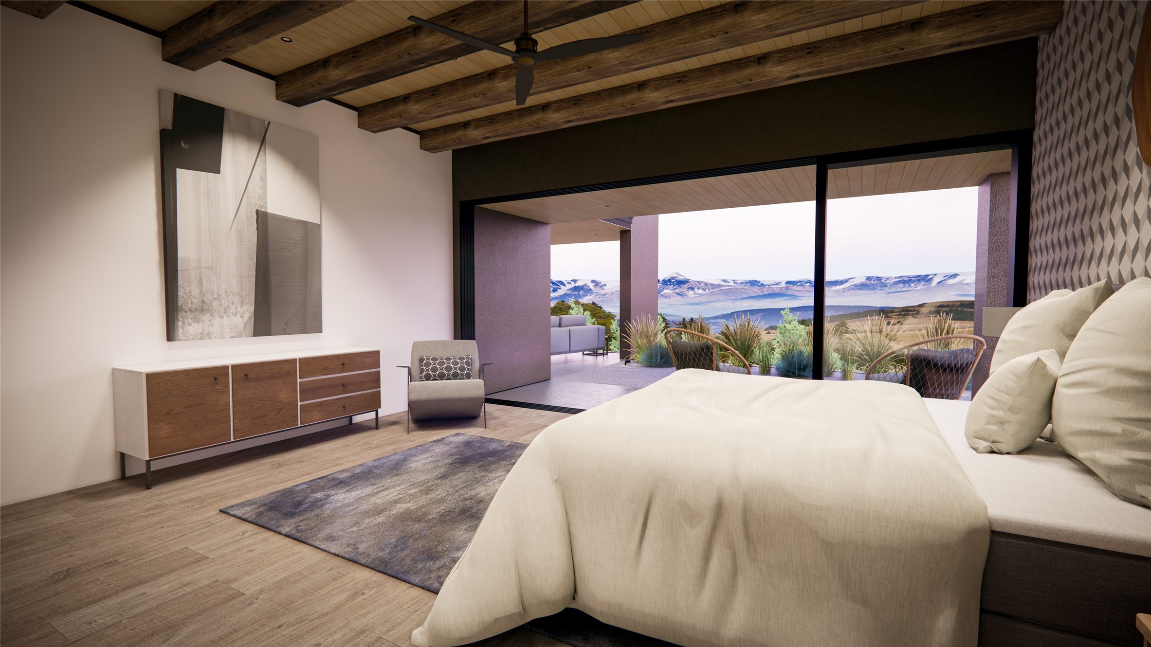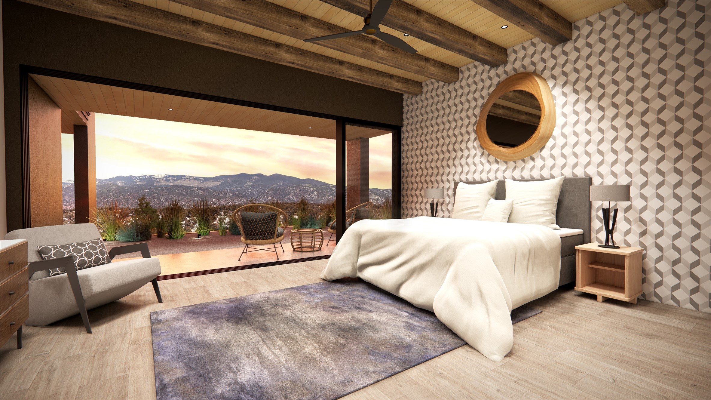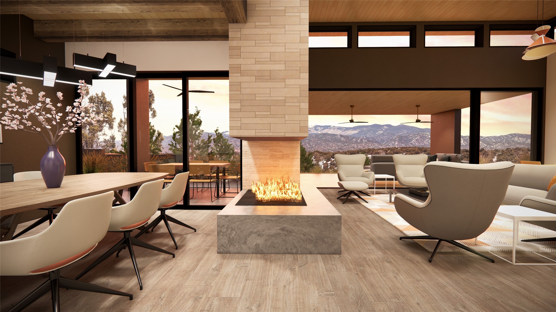 Breaking Ground Soon! True North Builders will be building their first spec home in Monte Sereno's newest subdivision--Las Vistas. Sited on a premier 1.45-acre lot, this 3,268 sq. ft. single-level contemporary home offers unobstructed, panoramic views of the Sangre de Cristo Mountains, just minutes from downtown Santa Fe. Thoughtfully designed for both beauty and functionality, the single level home includes 3 bedrooms, 3.5 bathrooms, and a flexible bonus room ideal for an office or den. The open-concept living, dining, and kitchen area has vaulted ceilings and clerestory windows, filling the space with natural light from all directions and showcasing the incredible mountain landscape. The architecture blends clean contemporary lines with warm, textural design elements. As construction begins, this is your chance to step into a thoughtfully designed new build with one of Santa Fe's most respected luxury builders.