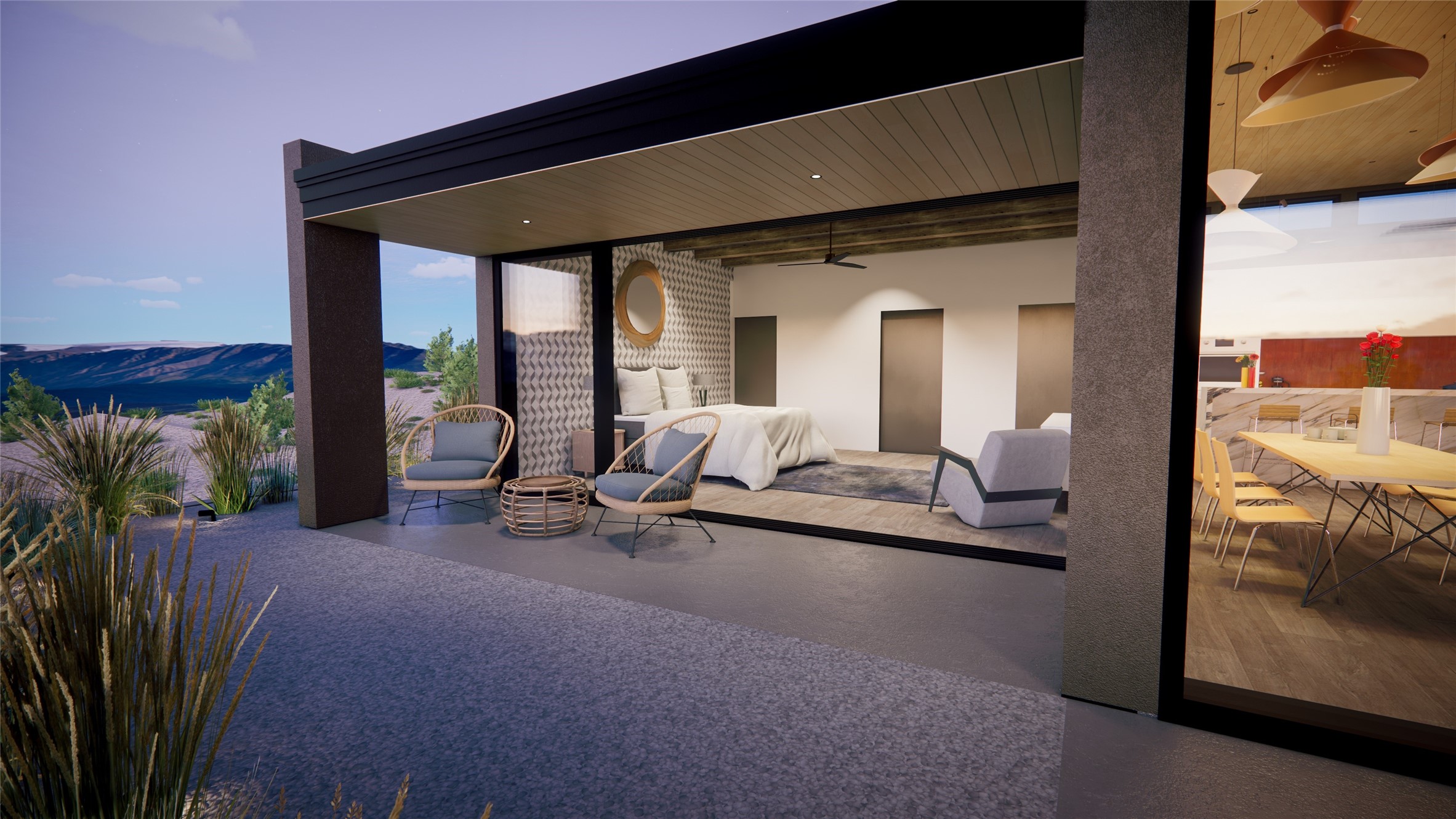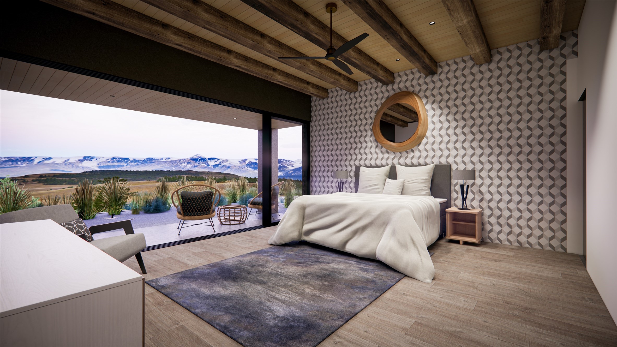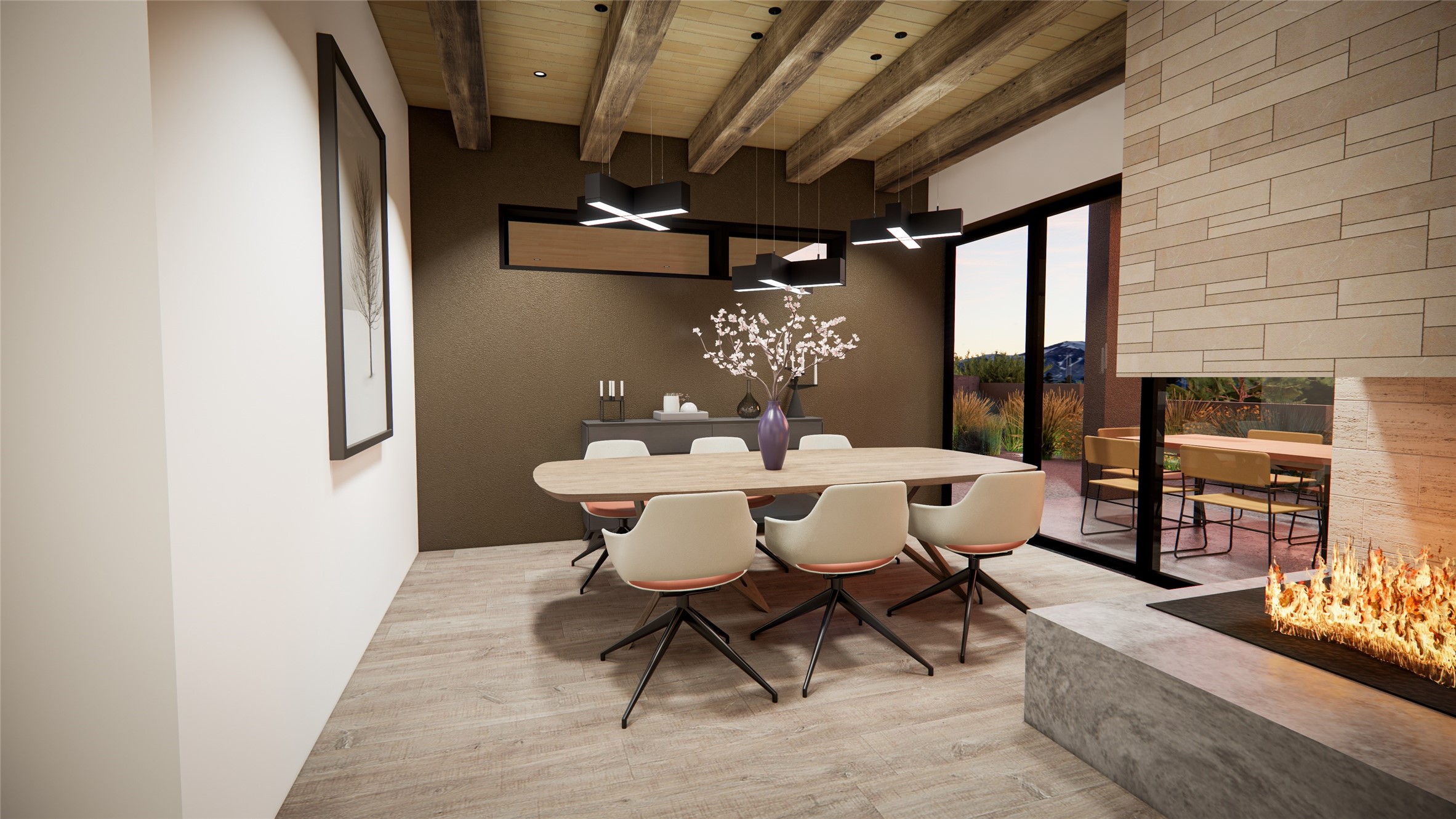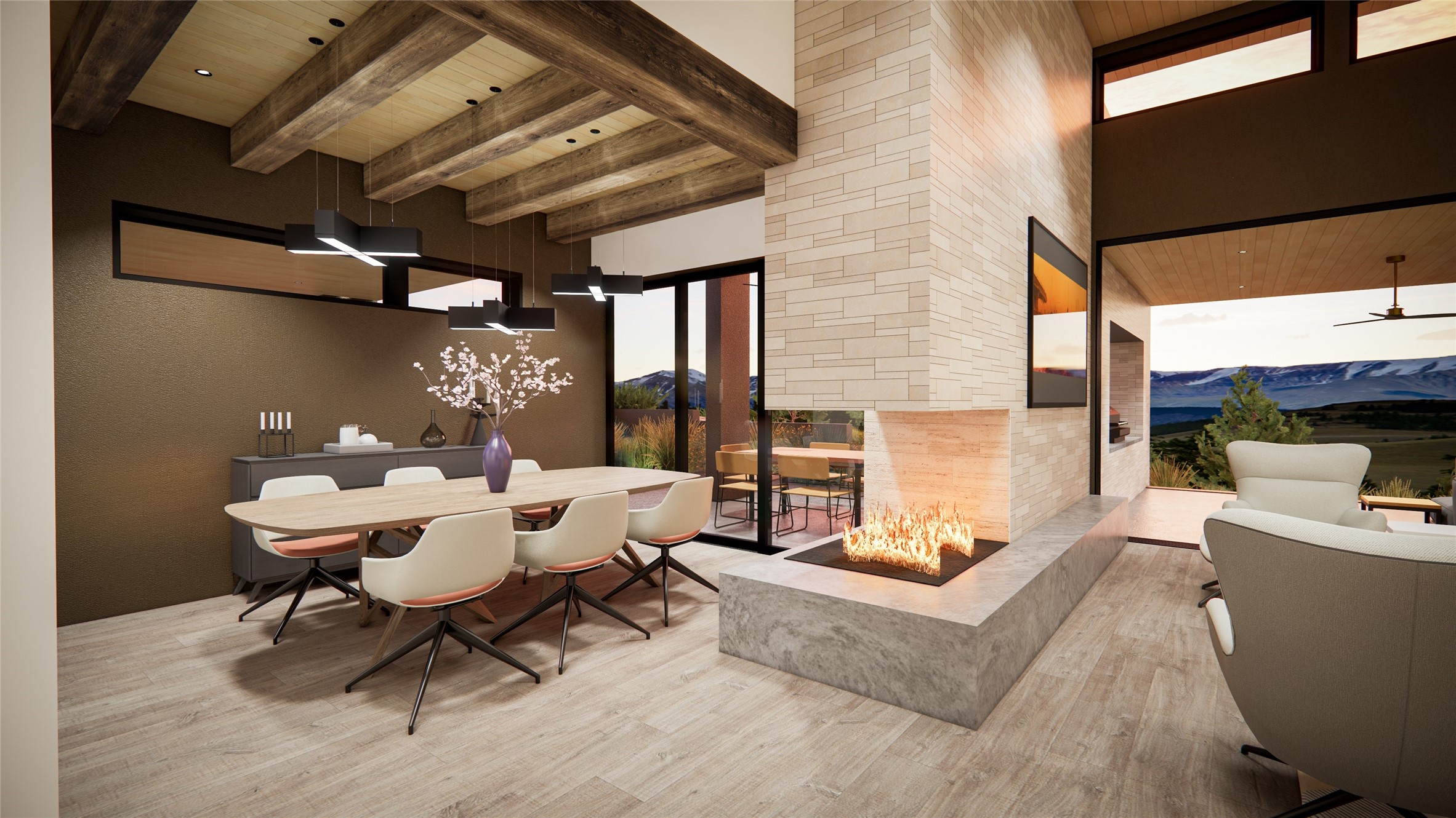 Breaking Ground Soon! True North Builders will be building their first spec home in Monte Sereno's newest subdivision--Las Vistas. Sited on a premier 1.45-acre lot, this 3,268 sq. ft. single-level contemporary home offers unobstructed, panoramic views of the Sangre de Cristo Mountains, just minutes from downtown Santa Fe. Thoughtfully designed for both beauty and functionality, the single level home includes 3 bedrooms, 3.5 bathrooms, and a flexible bonus room ideal for an office or den. The open-concept living, dining, and kitchen area has vaulted ceilings and clerestory windows, filling the space with natural light from all directions and showcasing the incredible mountain landscape. The architecture blends clean contemporary lines with warm, textural design elements. As construction begins, this is your chance to step into a thoughtfully designed new build with one of Santa Fe's most respected luxury builders.