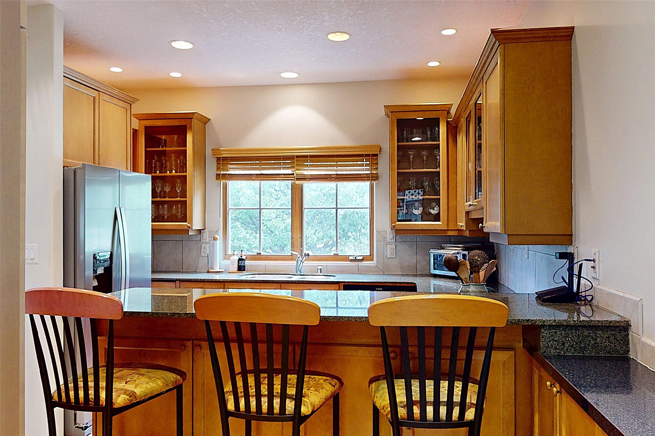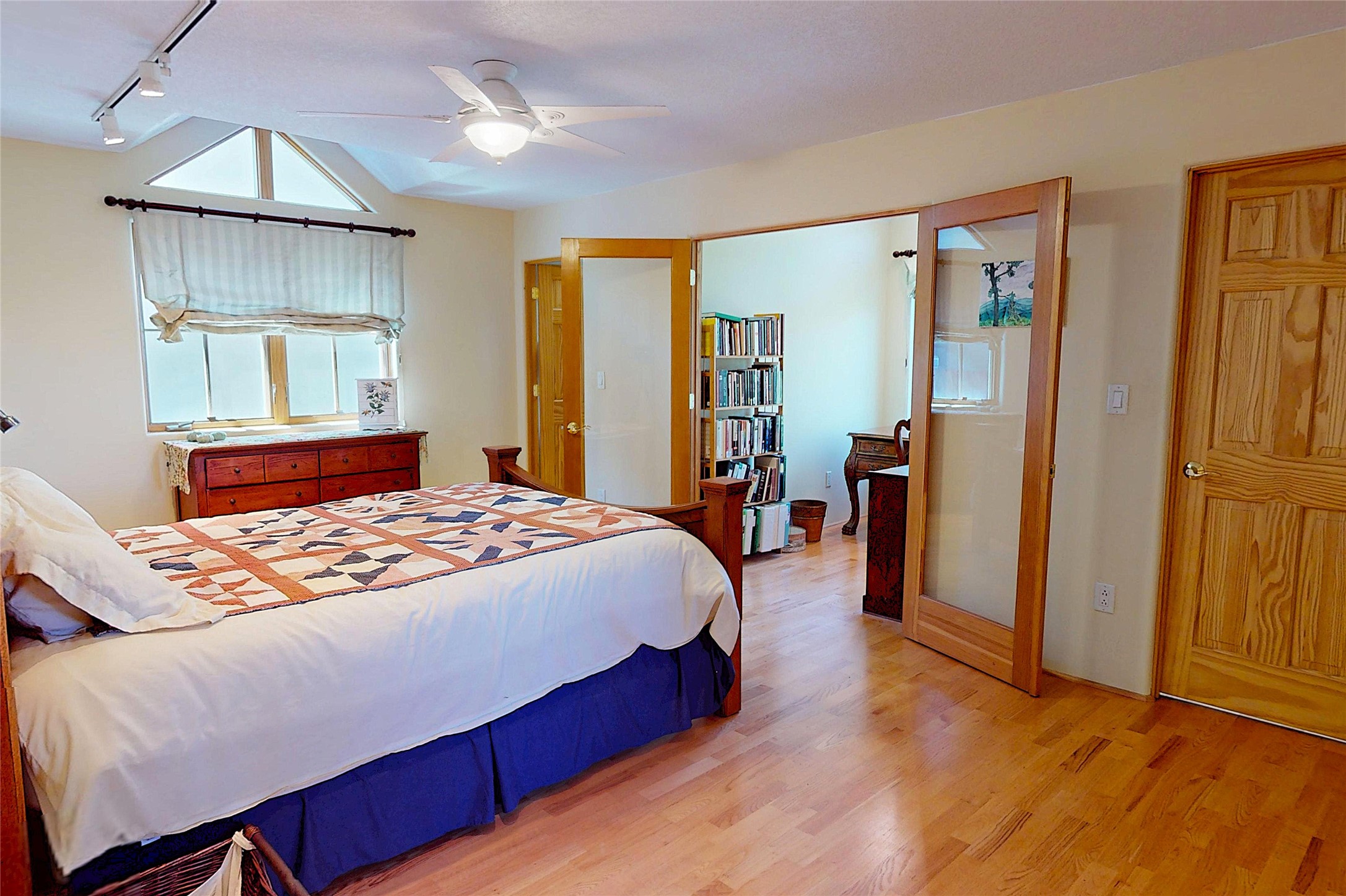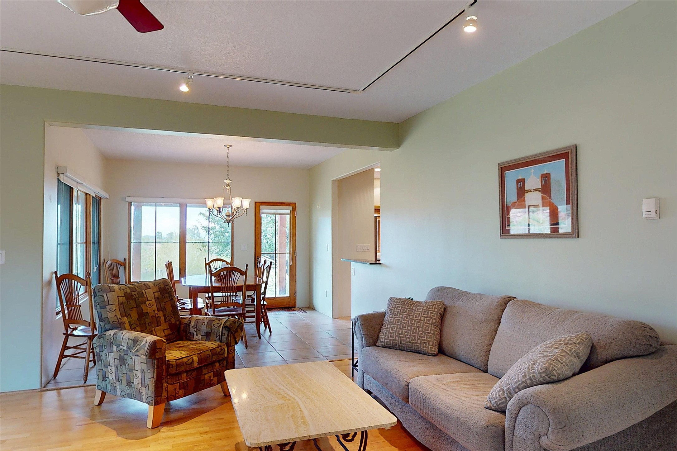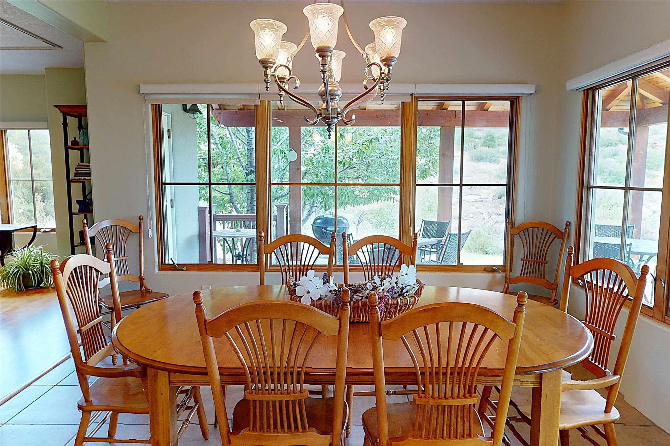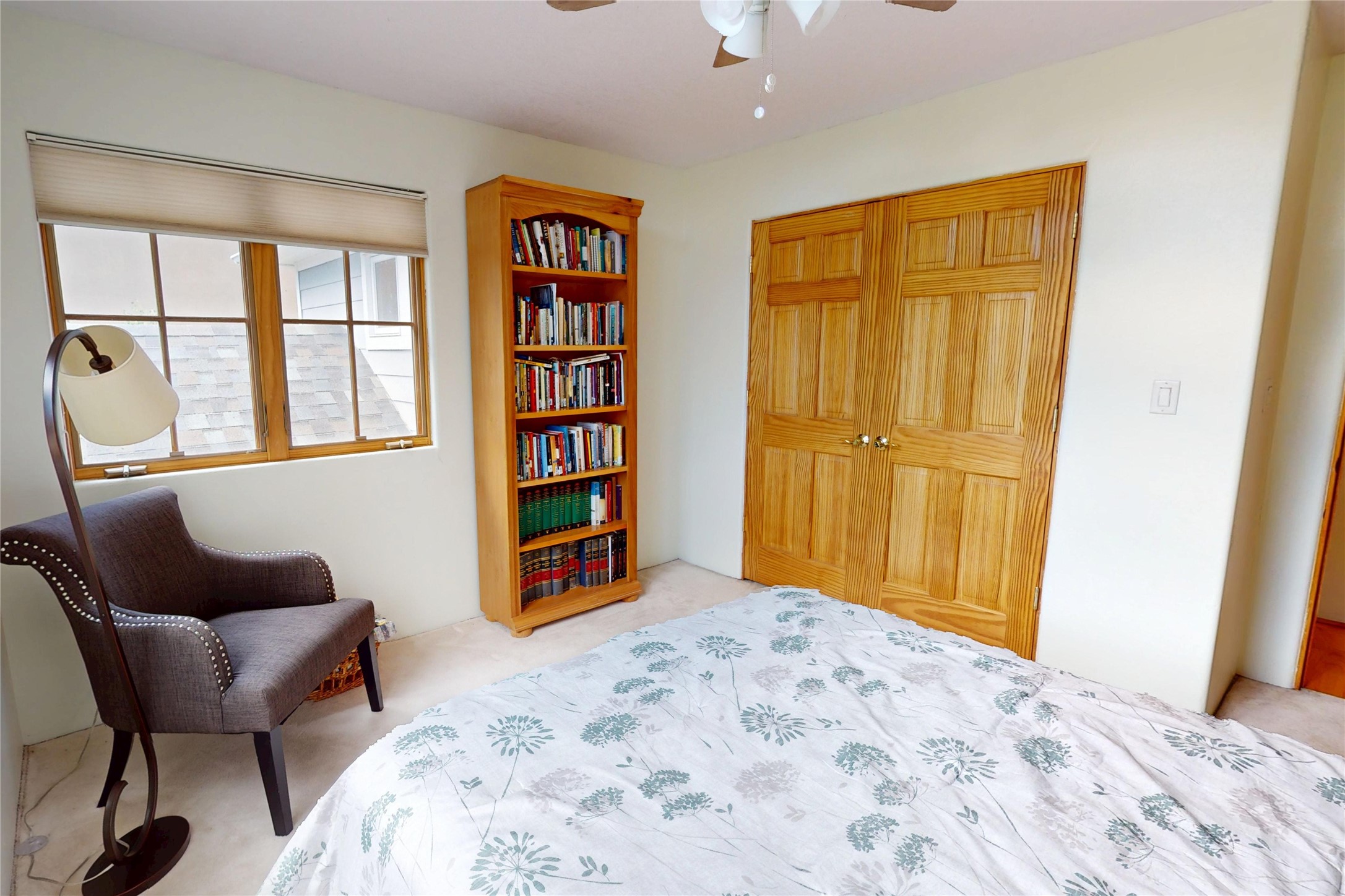 This stunning 4-bedroom, 2.5-bath Quemazon home backs to open space, offering privacy and direct access to the Perimeter Trail. The open floor plan flows seamlessly between the kitchen, dining, and living areas, with easy access to the covered Trex deck--perfect for enjoying mountain and forest views as well as the private backyard. The spacious primary suite includes a private study framed by French doors, dual walk-in closets, and a luxurious en-suite bath with dual sinks and a freestanding tub. Three additional bedrooms and a well-appointed hall bath complete the layout. A walk-out basement with additional living space and a crawl space for storage adds flexibility. Thoughtful details include architectural touches throughout the home, in-floor radiant heat with four zones, WindsorLite windows, six-panel wood doors, ceiling fans in every bedroom and the living room, track lighting, and Kohler fixtures. The kitchen is equipped with a Bosch dishwasher, gas stove/oven, and a newer refrigerator (2022). Major updates include roof replacement in 2009 with a lower-roof update in 2025, and a full stucco renovation in 2019. Outdoors, mature fruit trees--cherry, apple, pear, plum, apricot, nectarine, and peach--along with raspberries, drought-tolerant blue grama grass, and a private front yard with precision-cut stone walls, create a serene retreat. French drains along the west side provide peace of mind. This Quemazon gem blends comfort, thoughtful upgrades, and a premier setting with trails at your doorstep.