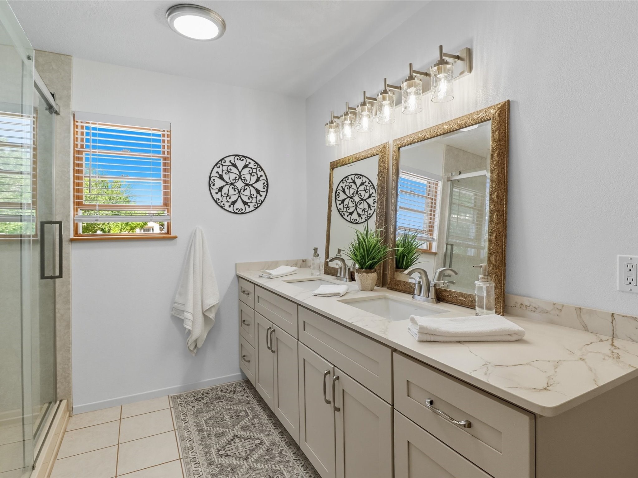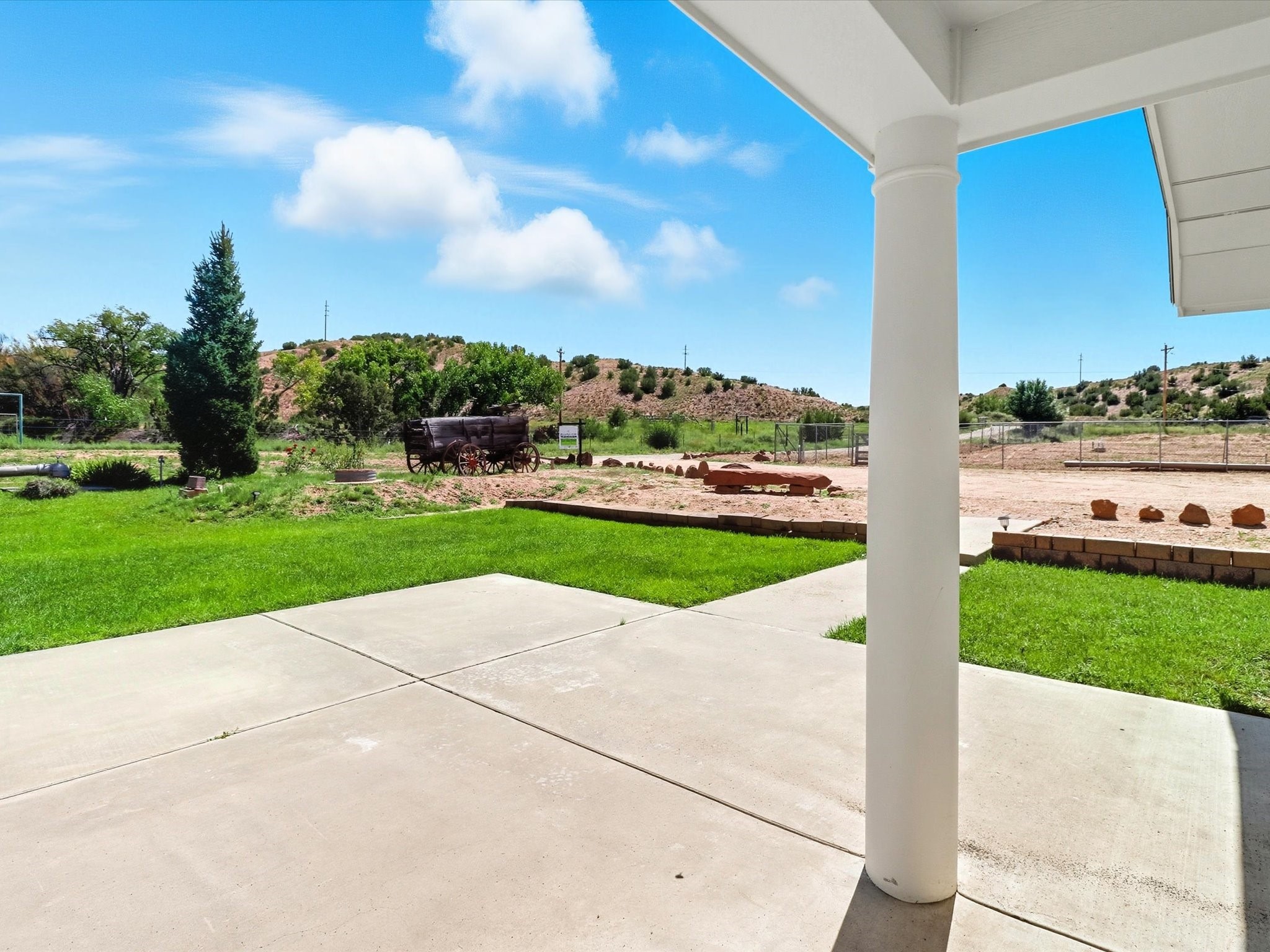 INCREDIBLE FIND - 0.75 acre property w/quality dream home and separate 1,206 sq ft workshop building w/3 garage doors (up to 6 car tandem). Found just 20 minutes from either Santa Fe plaza or Los Alamos National Labs in the coveted & fertile Pojoaque valley complete w/irrigation water rights. Special features of the home incl: new roof (installation 9/2025), newly painted interior & exterior, energy-saving Pella thermal windows, in-floor radiant heat for cozy winter days, 2 low-maintenance gas diamond plaster kiva fireplaces, tile or new high-quality engineered wood flooring throughout (no carpet!), updated baths with a Dream Style Shower, and a total kitchen remodel w/new cabinetry | stainless steel appliances | granite slab countertops. *Also available on 1.5 acres (including adjacent .75 acre lot) for September 2025 appraised value of $845,000.*