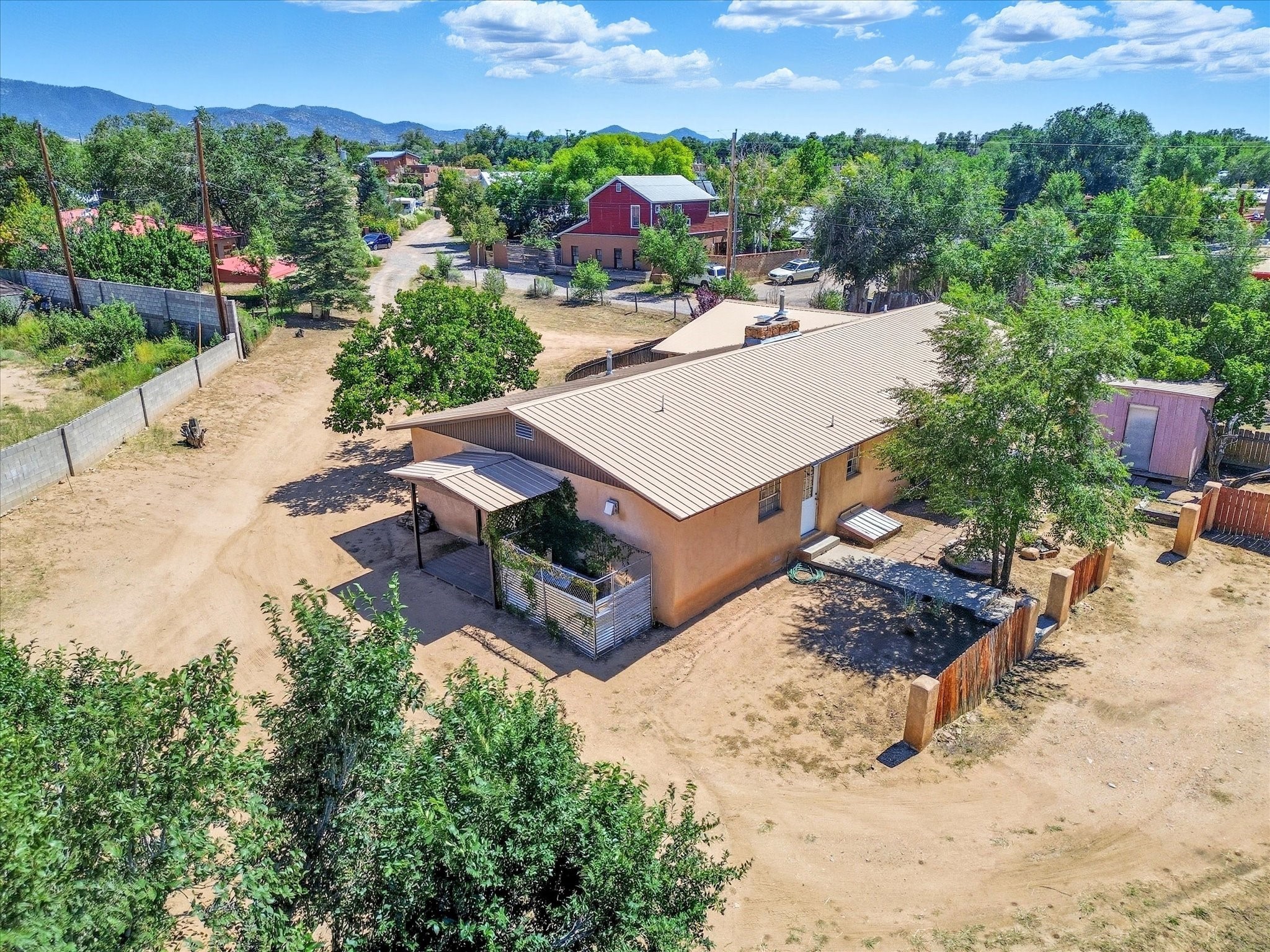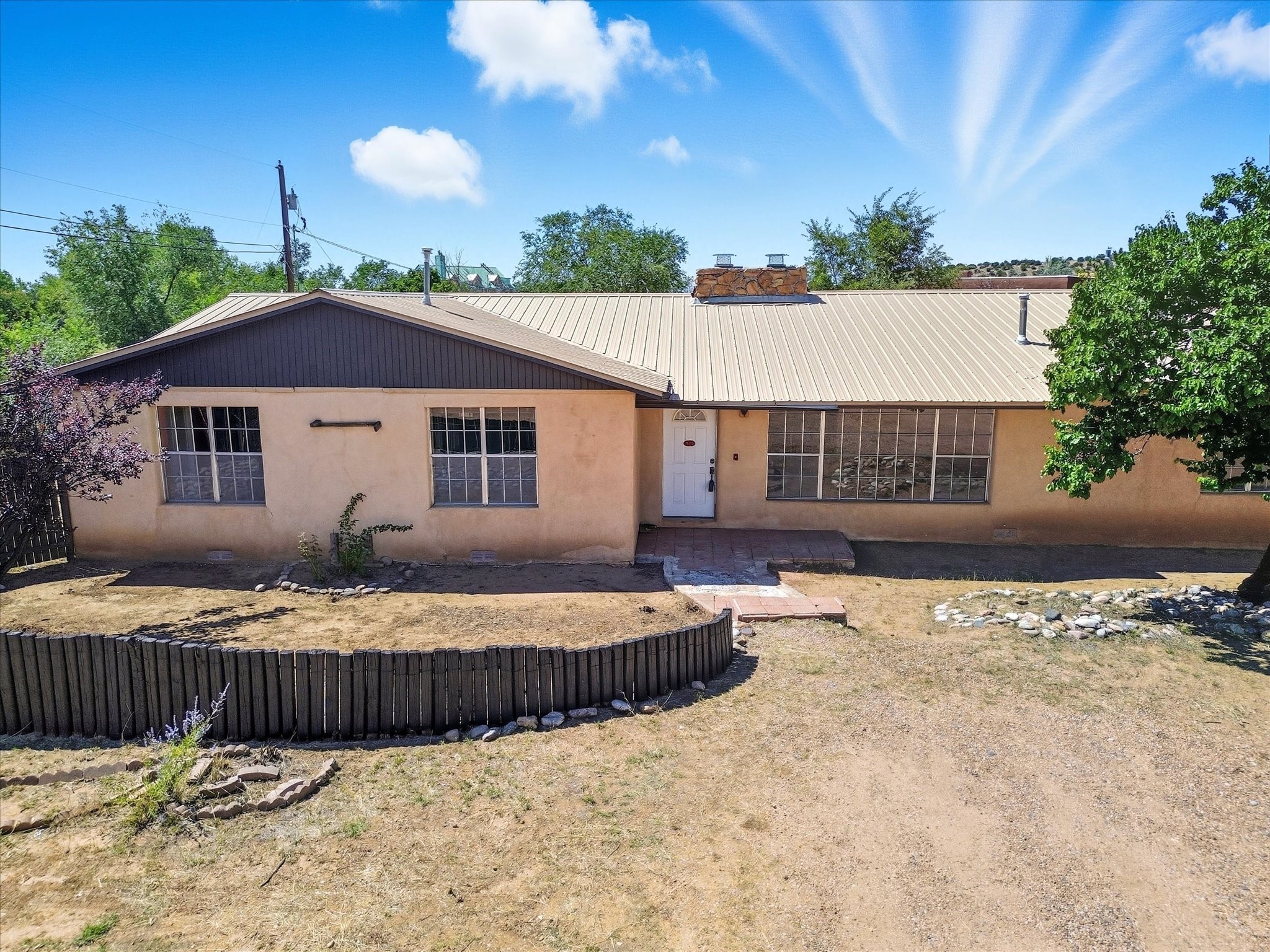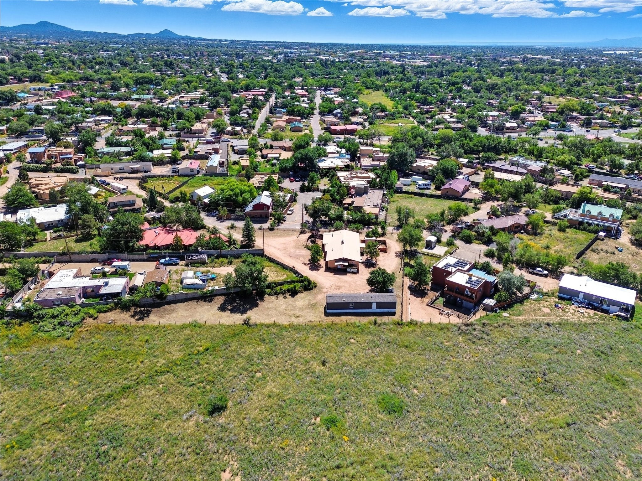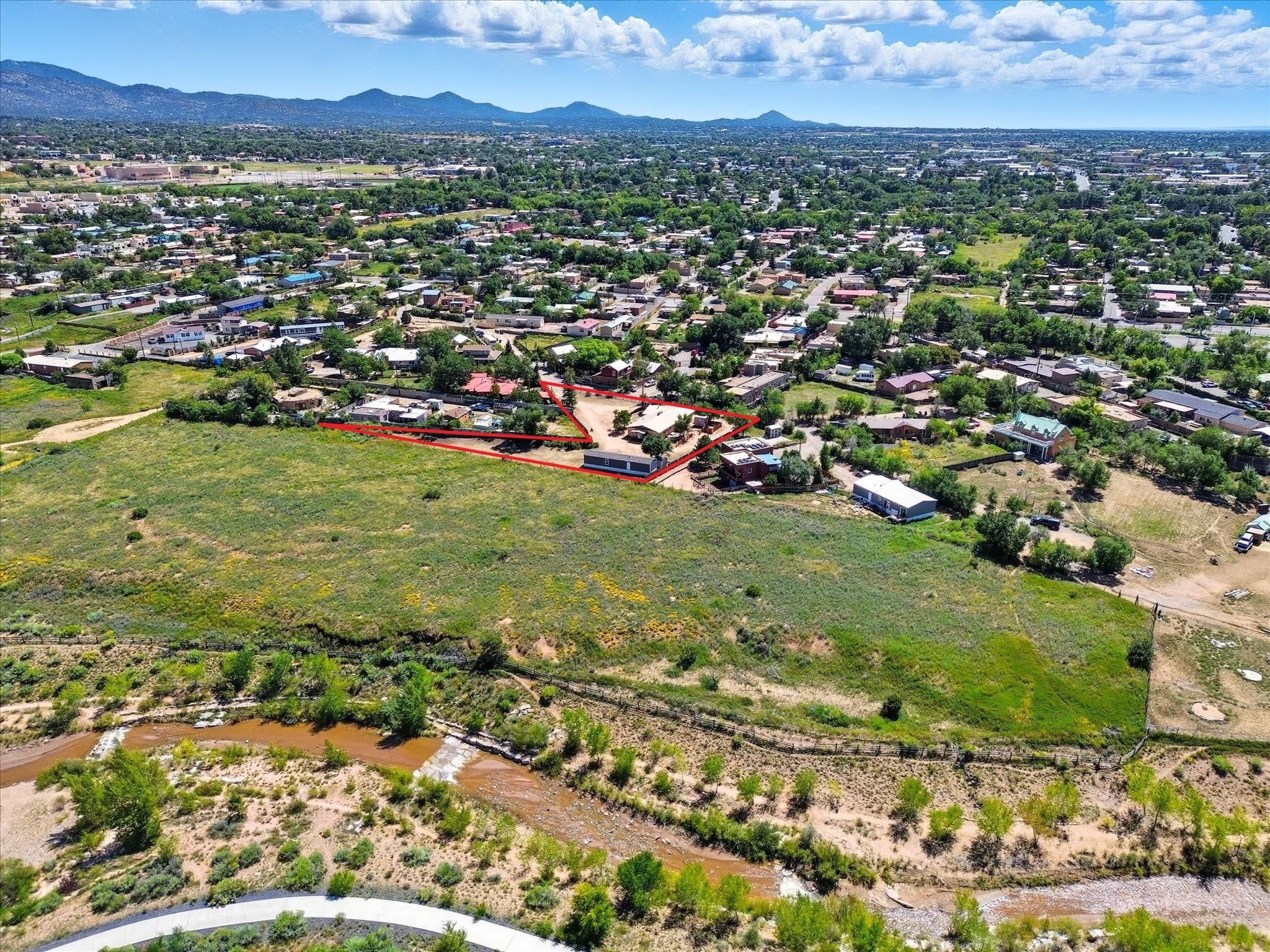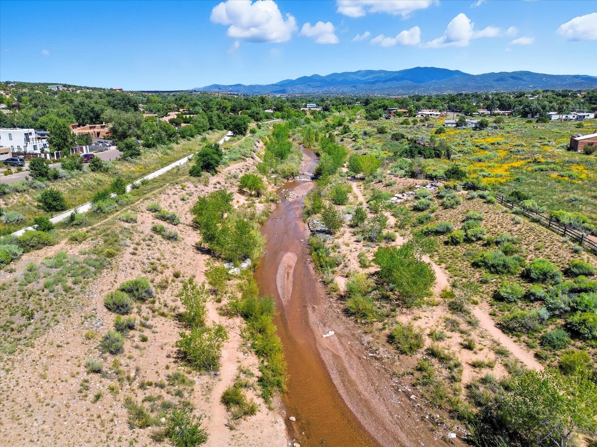 Exceptional opportunity on acre, backing to open land with the Santa Fe River just beyond. This unique property offers a main residence, a private studio apartment, and a manufactured home--ideal for guest quarters, multi-generational living, or income potential. The main house is adobe and has original hardwood floors throughout (under the carpet), a wood burning double-sided fireplace, four bedrooms and two bathrooms. The studio has a large living space, kitchen and full bathroom. The 2019 manufactured home includes two bedrooms, two bathrooms and refrigerated air. Enjoy privacy, space and mountain views, just 3 miles from the Santa Fe plaza and near trails, shopping, dining, parks, and schools.