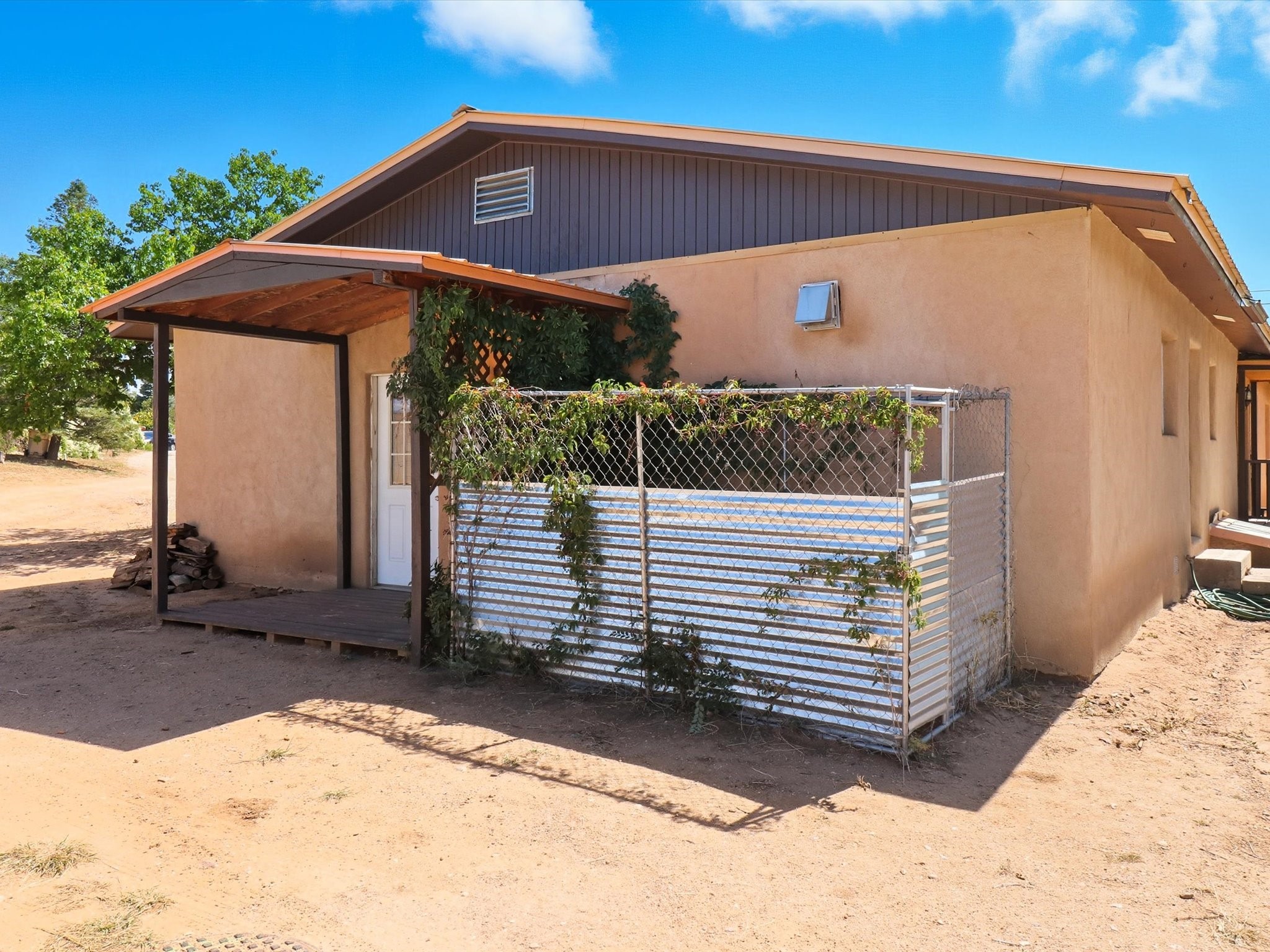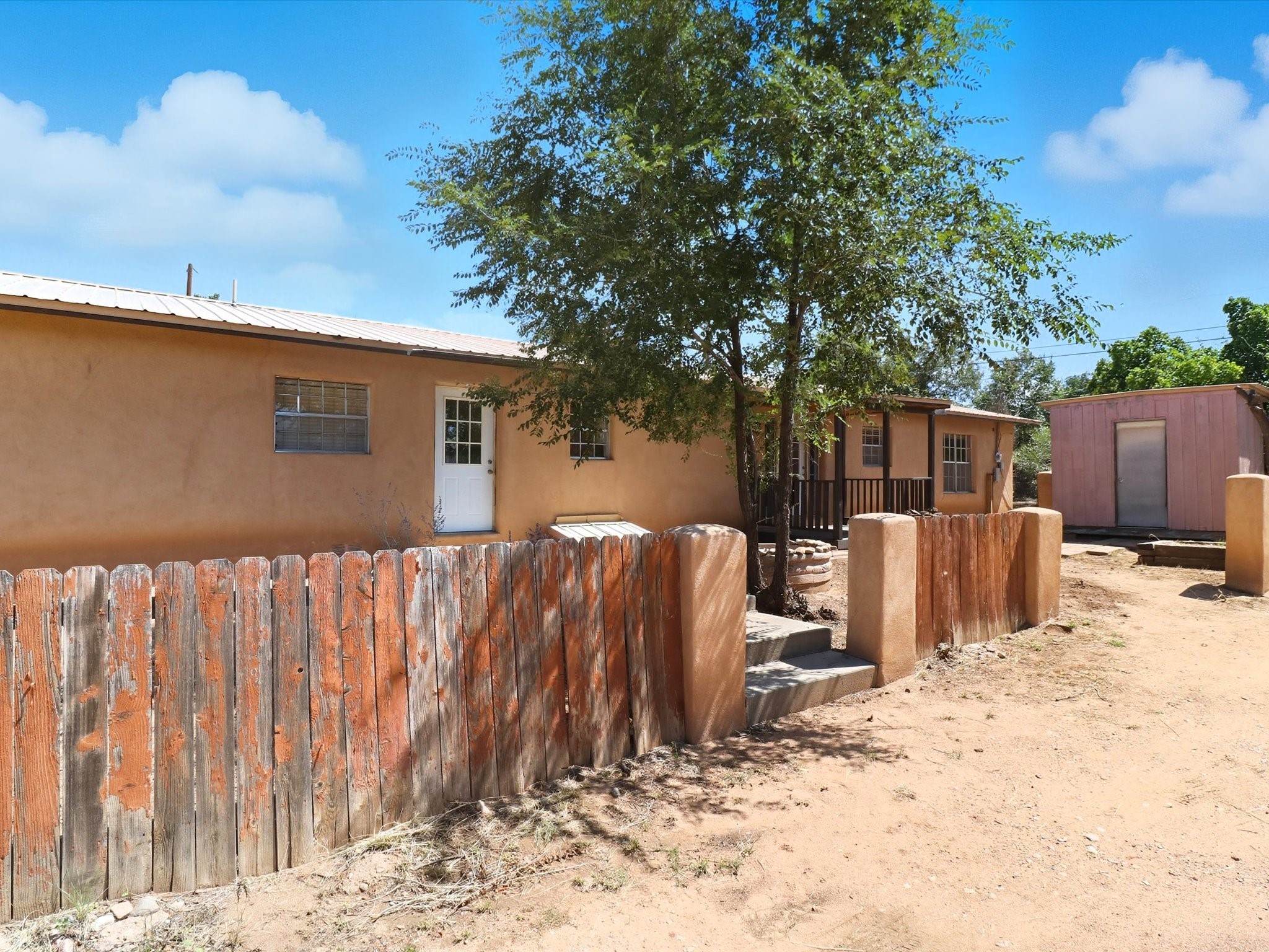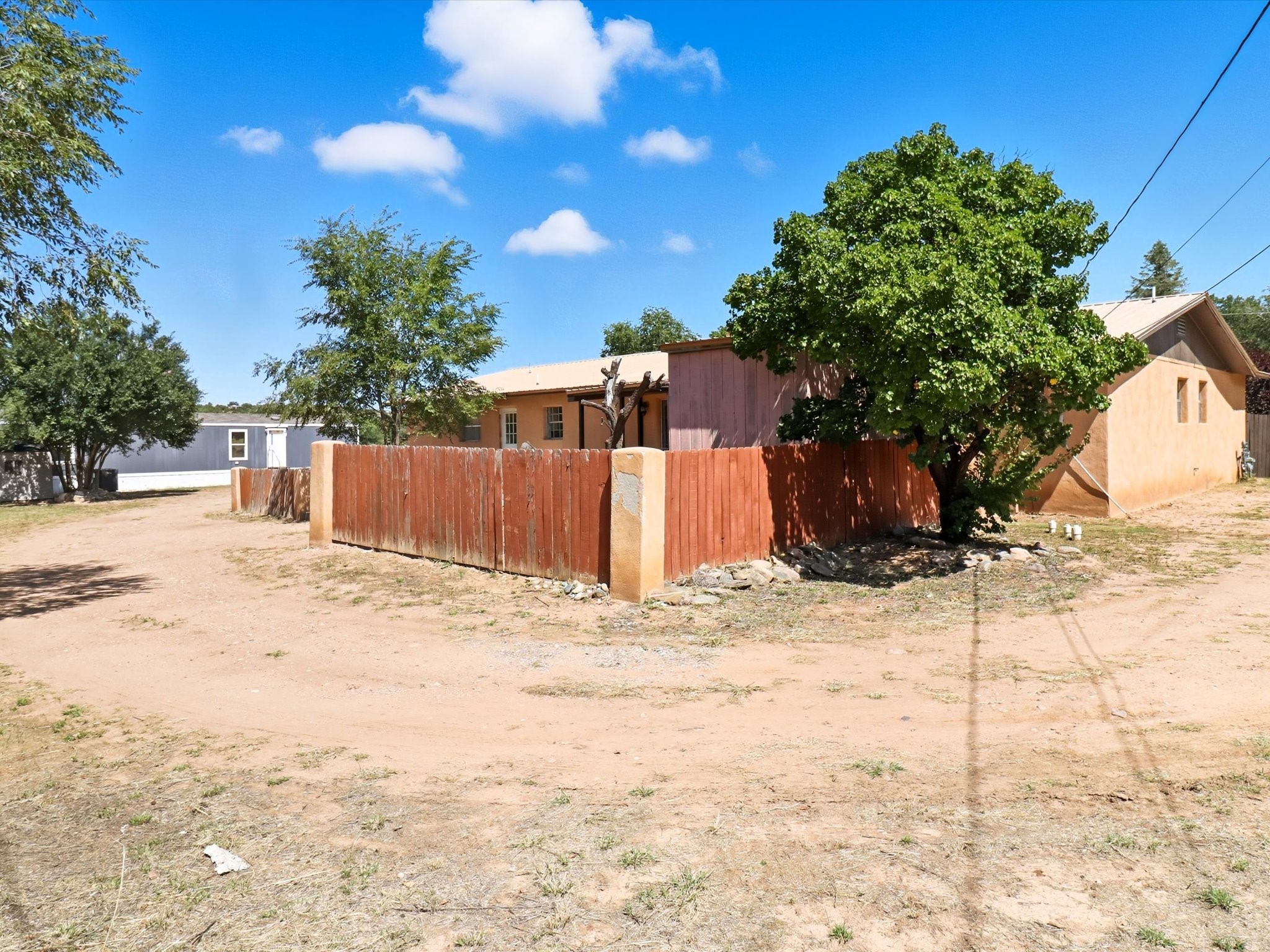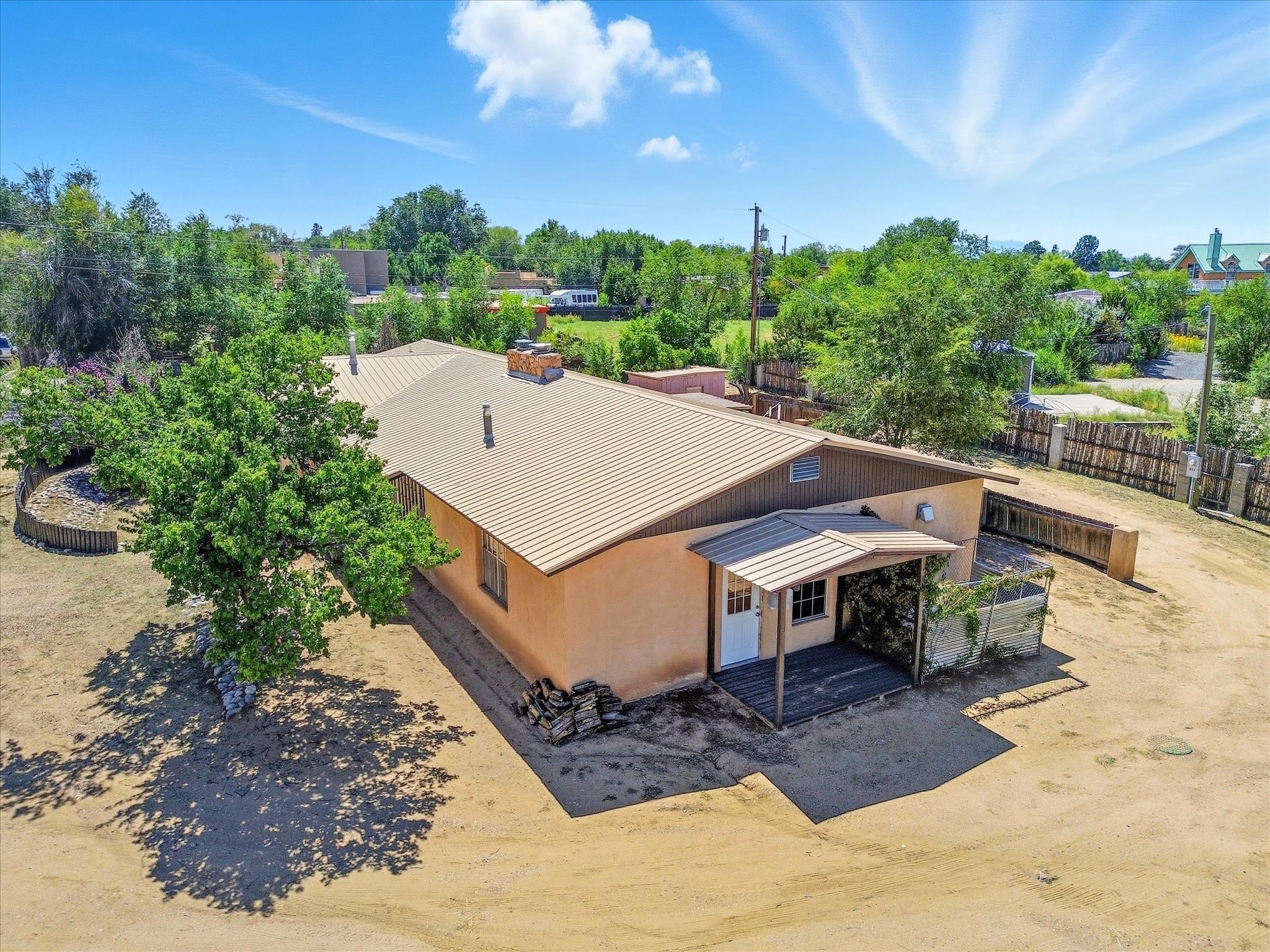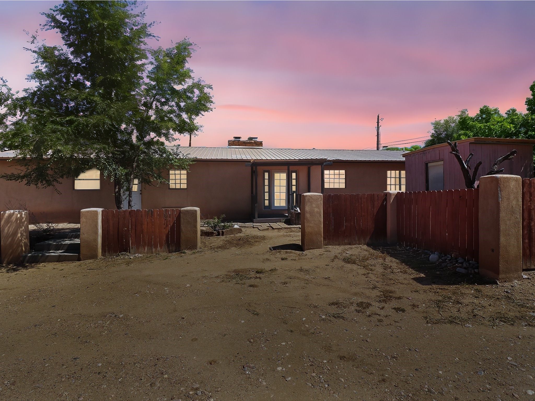 Exceptional opportunity on acre, backing to open land with the Santa Fe River just beyond. This unique property offers a main residence, a private studio apartment, and a manufactured home--ideal for guest quarters, multi-generational living, or income potential. The main house is adobe and has original hardwood floors throughout (under the carpet), a wood burning double-sided fireplace, four bedrooms and two bathrooms. The studio has a large living space, kitchen and full bathroom. The 2019 manufactured home includes two bedrooms, two bathrooms and refrigerated air. Enjoy privacy, space and mountain views, just 3 miles from the Santa Fe plaza and near trails, shopping, dining, parks, and schools.