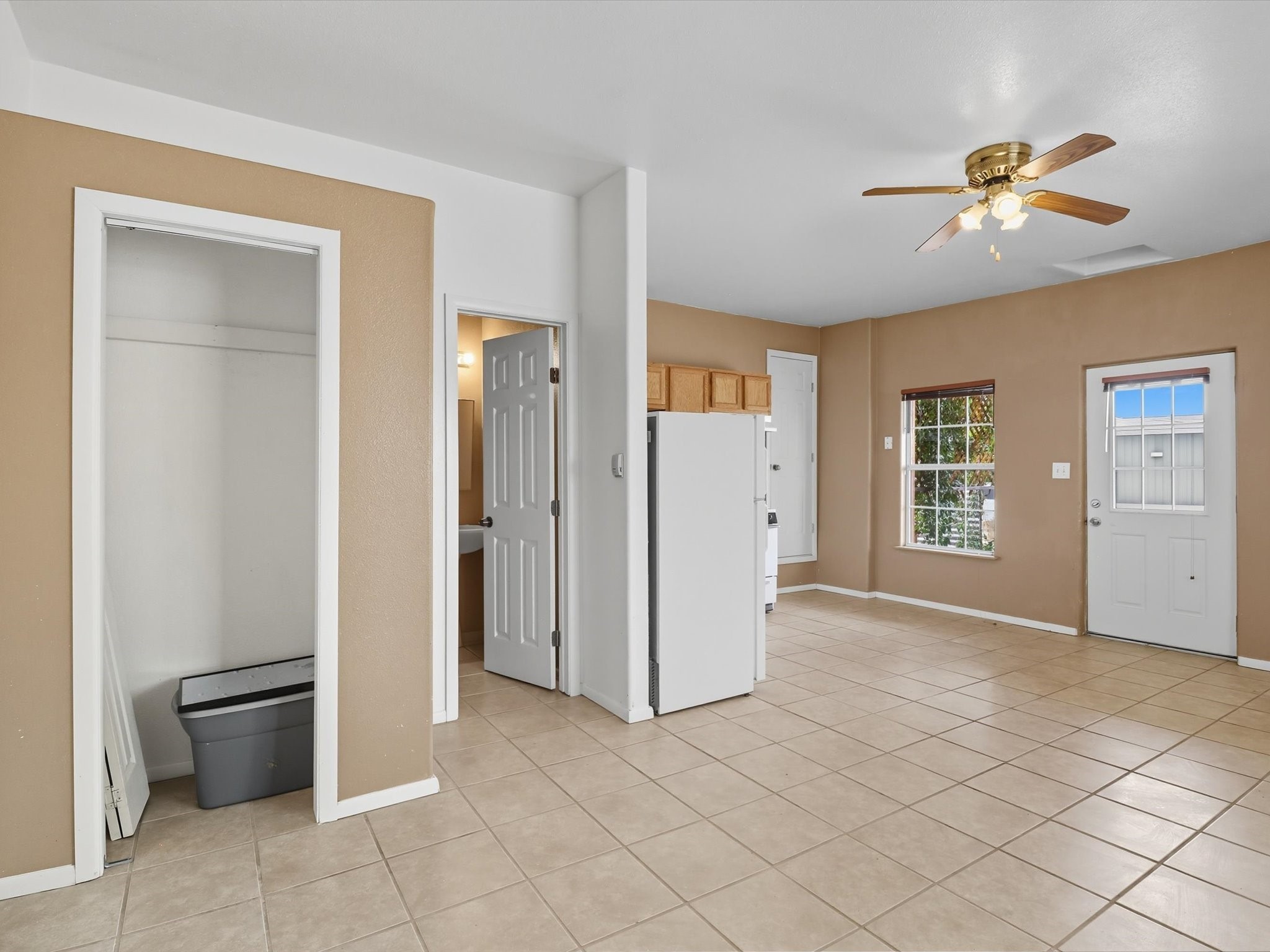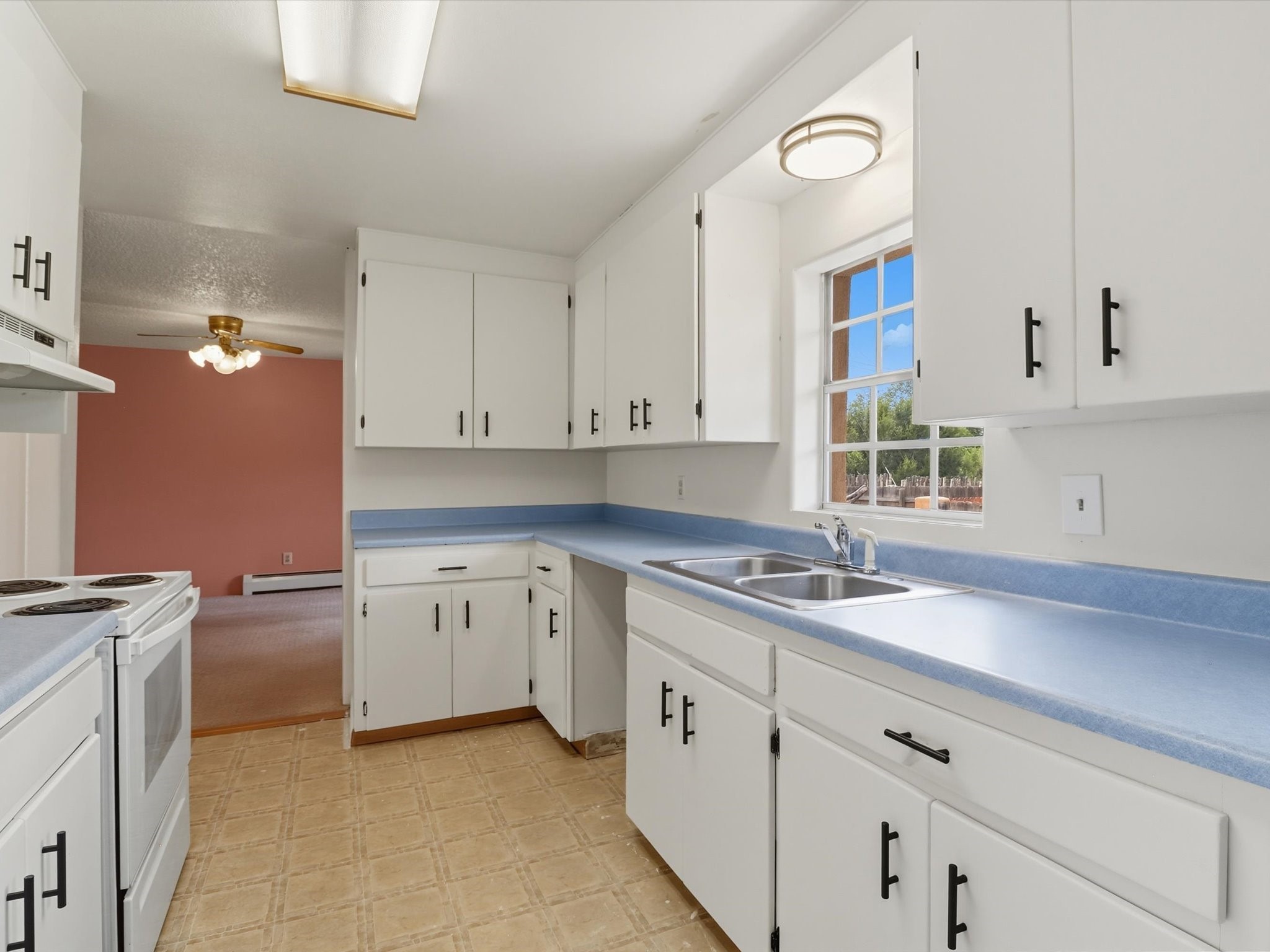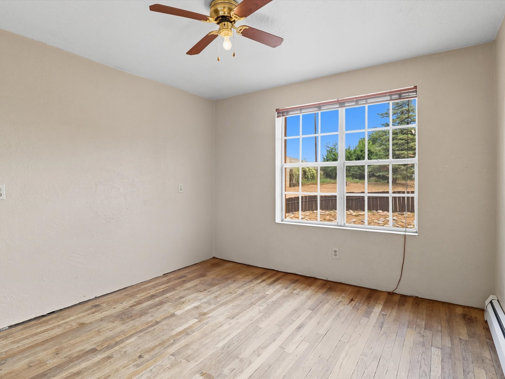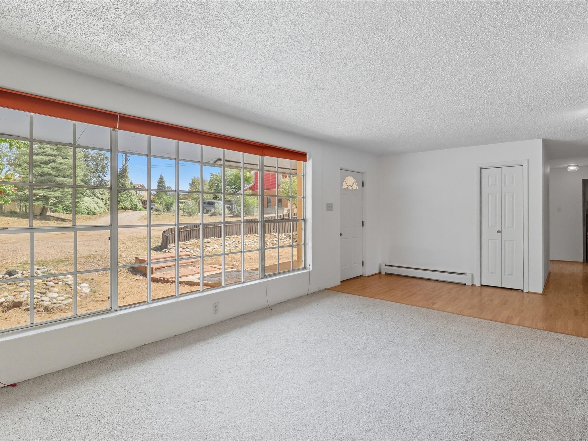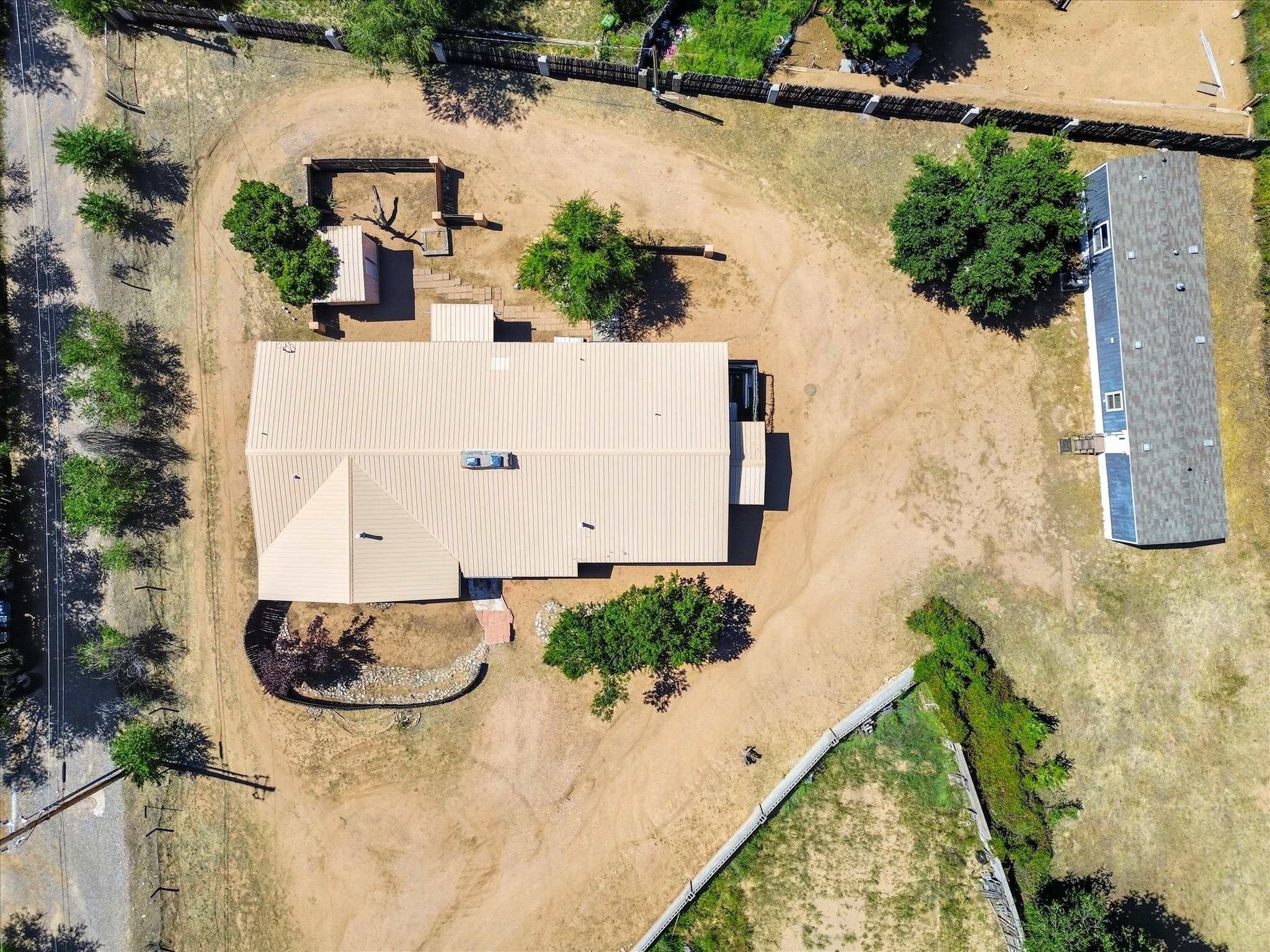 Exceptional opportunity on acre, backing to open land with the Santa Fe River just beyond. This unique property offers a main residence, a private studio apartment, and a manufactured home--ideal for guest quarters, multi-generational living, or income potential. The main house is adobe and has original hardwood floors throughout (under the carpet), a wood burning double-sided fireplace, four bedrooms and two bathrooms. The studio has a large living space, kitchen and full bathroom. The 2019 manufactured home includes two bedrooms, two bathrooms and refrigerated air. Enjoy privacy, space and mountain views, just 3 miles from the Santa Fe plaza and near trails, shopping, dining, parks, and schools.
