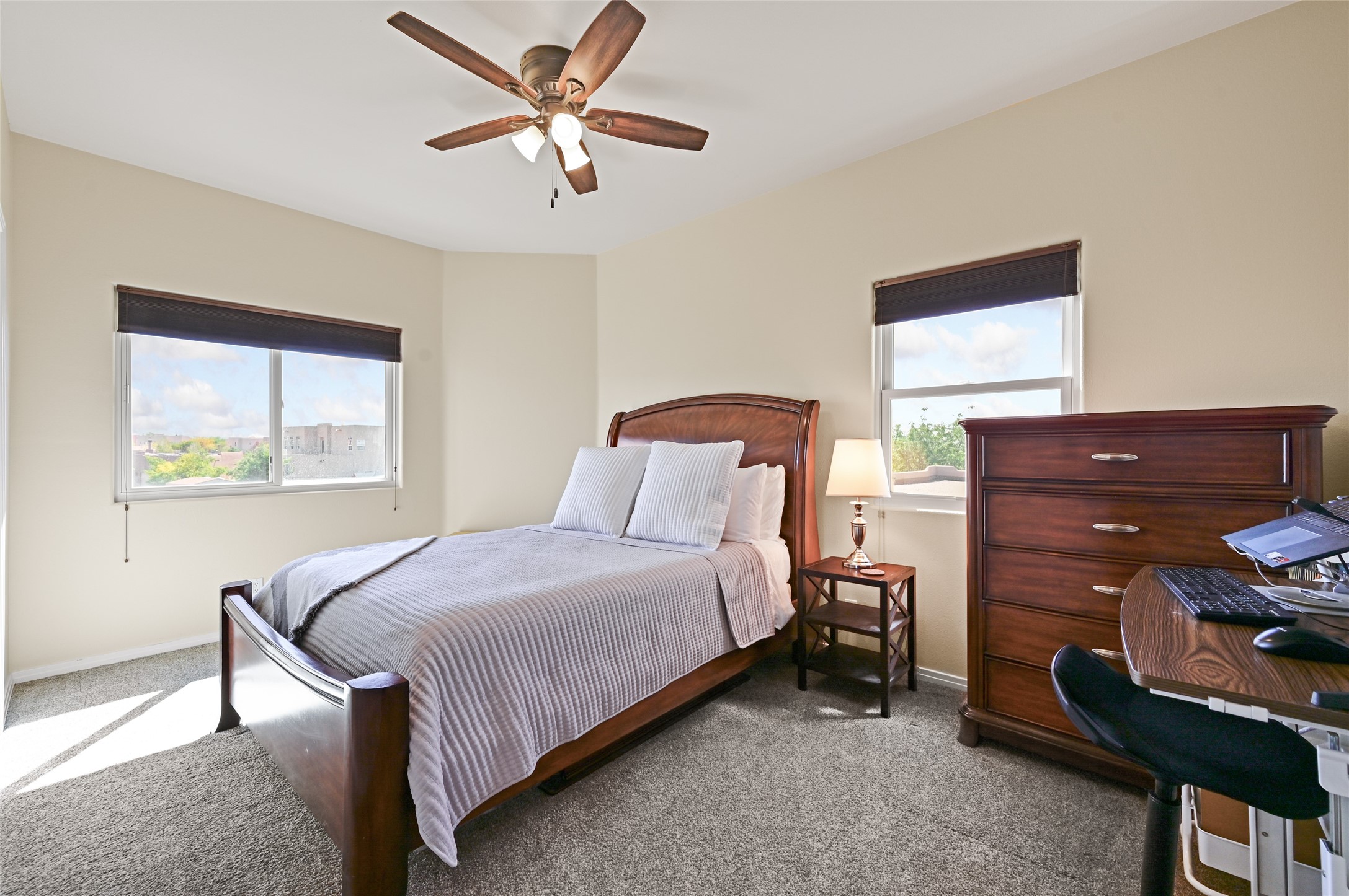 Welcome to your new home! This well-maintained 5-bedroom home offers lots of space with a practical and flexible floor plan. The main living area is inviting with an open concept kitchen and den area with a cozy fireplace and access to the backyard with portal. The easy to maintain, fully fenced backyard is perfect for entertaining and outdoor grilling. There is a bonus room that makes an ideal bedroom or office. Upstairs is the generously sized primary bedroom with an outdoor deck, an ensuite bathroom that includes dual sinks, a large tub, separate shower, and a walk-in closet. There are 3 additional bedrooms upstairs. Additional highlights are oversized 2 car garage, new windows in 2022 and a new roof substrate in 2023 with approximately 7 1/2 years remaining on the transferrable limited warranty that includes yearly maintenance and a new water heater in 2025. Really, you need to see this home.