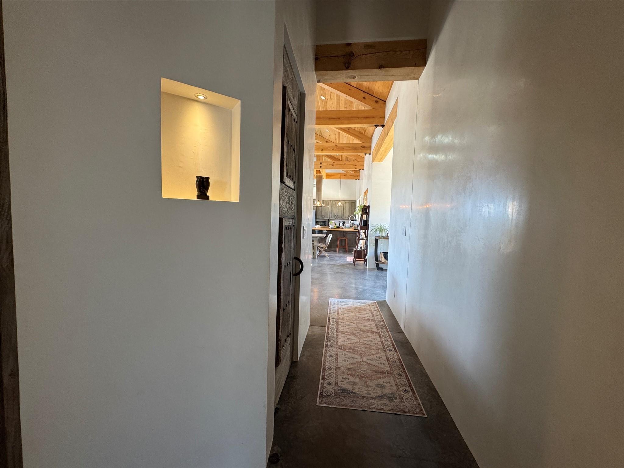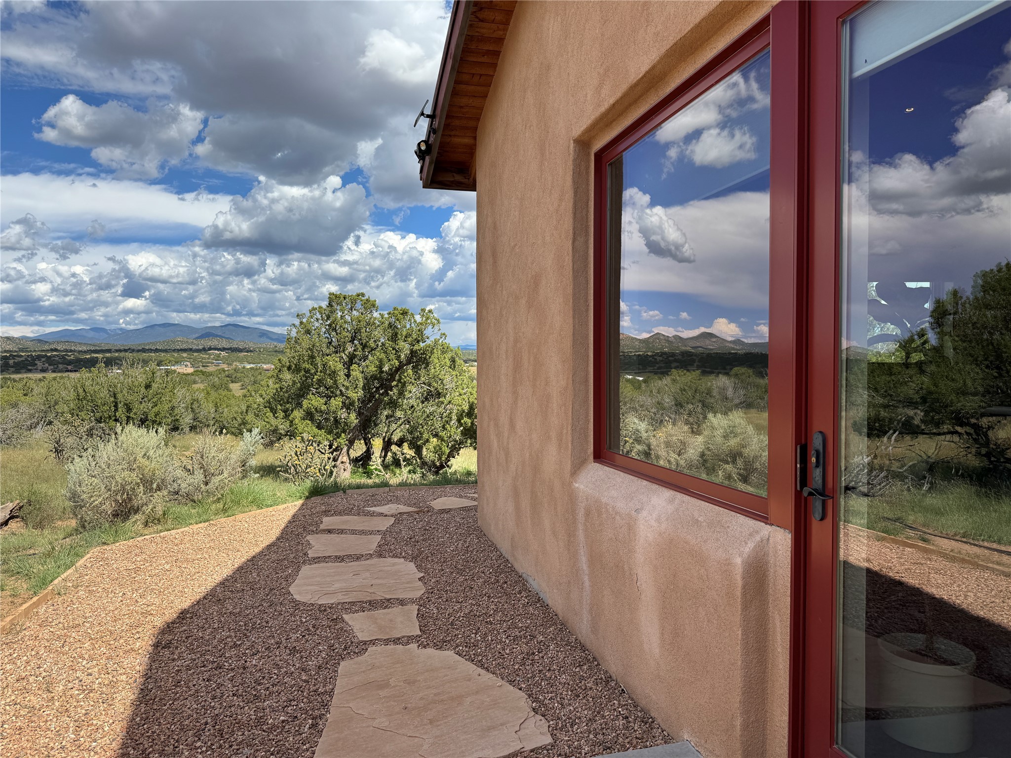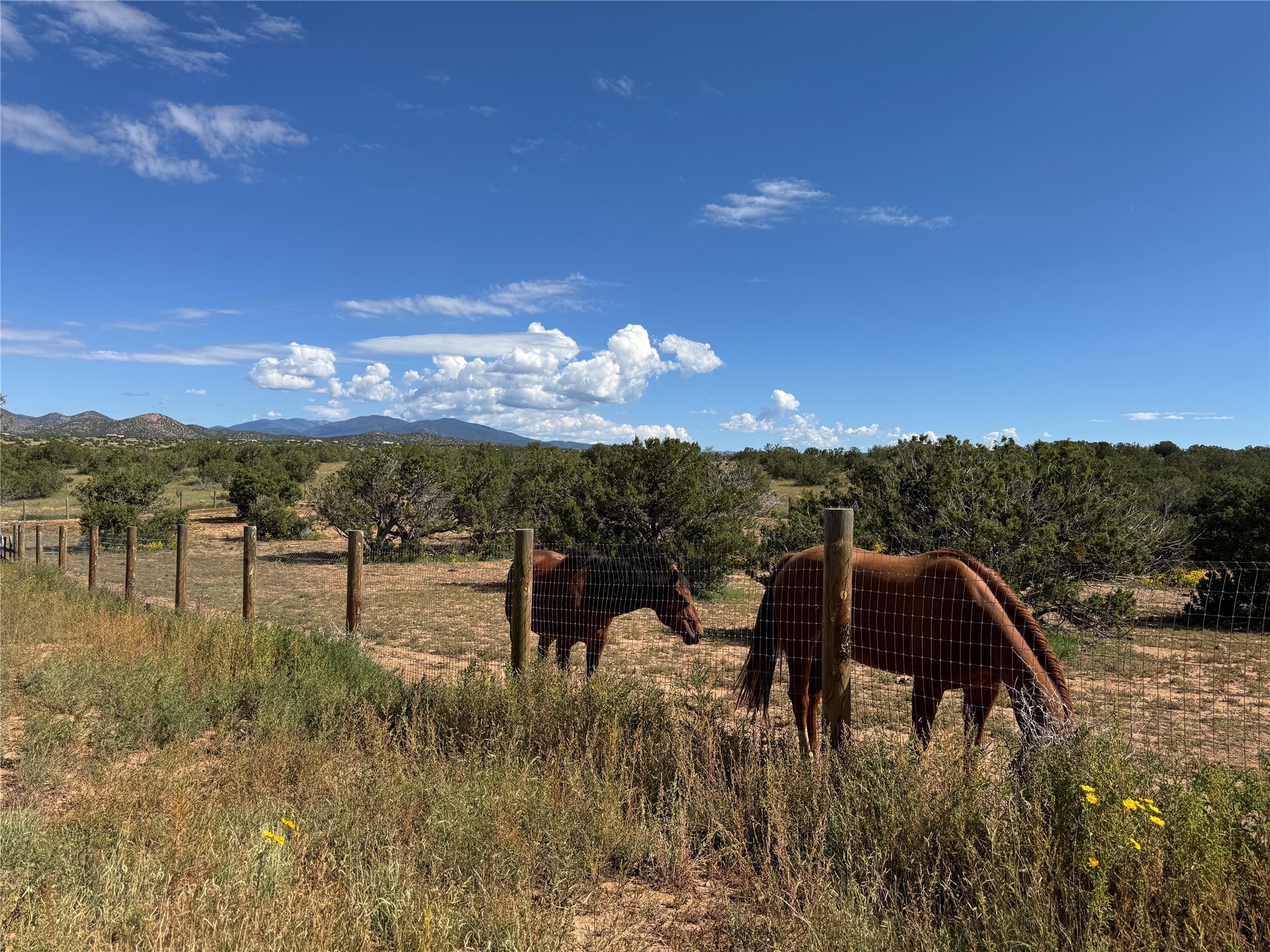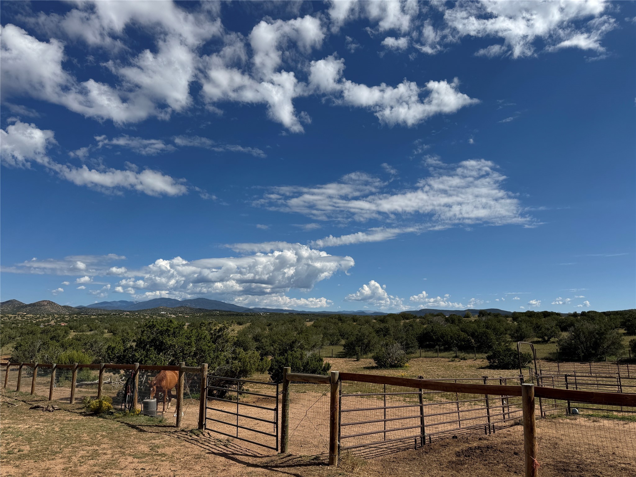 GET READY TO FALL IN LOVE WITH THIS DREAMY MODERN RANCH ON 25 ACRES:21 Cattle Drive is the kind of place that feels like a unicorn - rare, enchanting, and totally magical. This home has it all: space, style, and some seriously stunning views. It's just a short drive from downtown Santa Fe, but feels like your own private sanctuary.BIG, BRIGHT, OPEN: With over 3,000 sq. ft., this home gives you plenty of room to spread out. You've got 2 spacious ensuite bedrooms and 1 flex room currently being used as an additional bedroom. Perfect for hosting family and friends.DREAMY LIVING SPACES: The open living area has it's own special vibe, with natural light pouring in, gorgeous, modern, polished walls, and wood beams that give it that true Santa Fe charm. Plus, the kiva fireplace is perfect for cozy nights in.KITCHEN GOALS: If you love to cook or entertain, this Chef's Kitchen will make you feel like a pro. High-end stainless steel appliances, tons of counter space, and epic mountain views - it's all you need.OUTDOOR OASIS: Step outside, and you're in an enchanting portal, with stunning mountain views and beautiful landscaping that feels like a little piece of heaven.ENERGY EFFICIENT with GEO THERMAL COMFORT: This home is not only eco-friendly but offers year-round comfort with a Geo-Thermal heating and cooling system. The system is super efficient, ensuring your home stays perfectly cozy in the winter and cool in the summer, all while keeping energy costs low. (see PDF in MLS documents for more info)EQUESTRIAN DREAM: For horse lovers, this property includes a 3-stall horse barn complete with a wash bay and hay barn with storage capacity of up to 350 bales. This property is a perfect fit for anyone looking to keep their equine companions at home. The barn is well-maintained and ready to house your horses in comfort, to live their best lives in this beautiful setting.