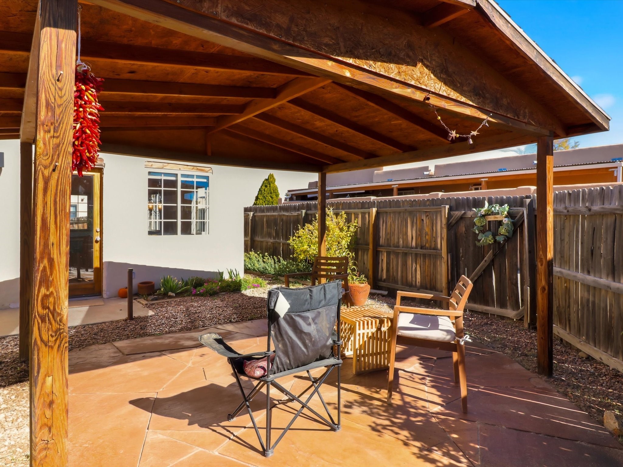 This light and inviting Pueblo-style home in Tierra Contenta offers Santa Fe charm with modern updates and an ideal location. With over 1,100 square feet, two bedrooms, and two baths, the home features new vinyl plank flooring throughout, updated kitchen counters, fresh bathroom vanities, and stylish new lighting and ceiling fans. The roof is under warranty for added peace of mind. Enjoy easy access to I-25, Highway 599, local hospitals, shopping, dining, and schools, all just minutes away. Warm, bright, and move-in ready, this home combines comfort, convenience, and classic Santa Fe style. Imagine the Possibilities and schedule your showing today!