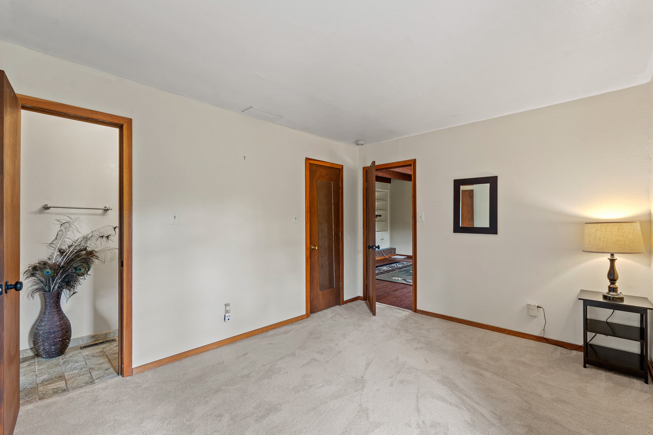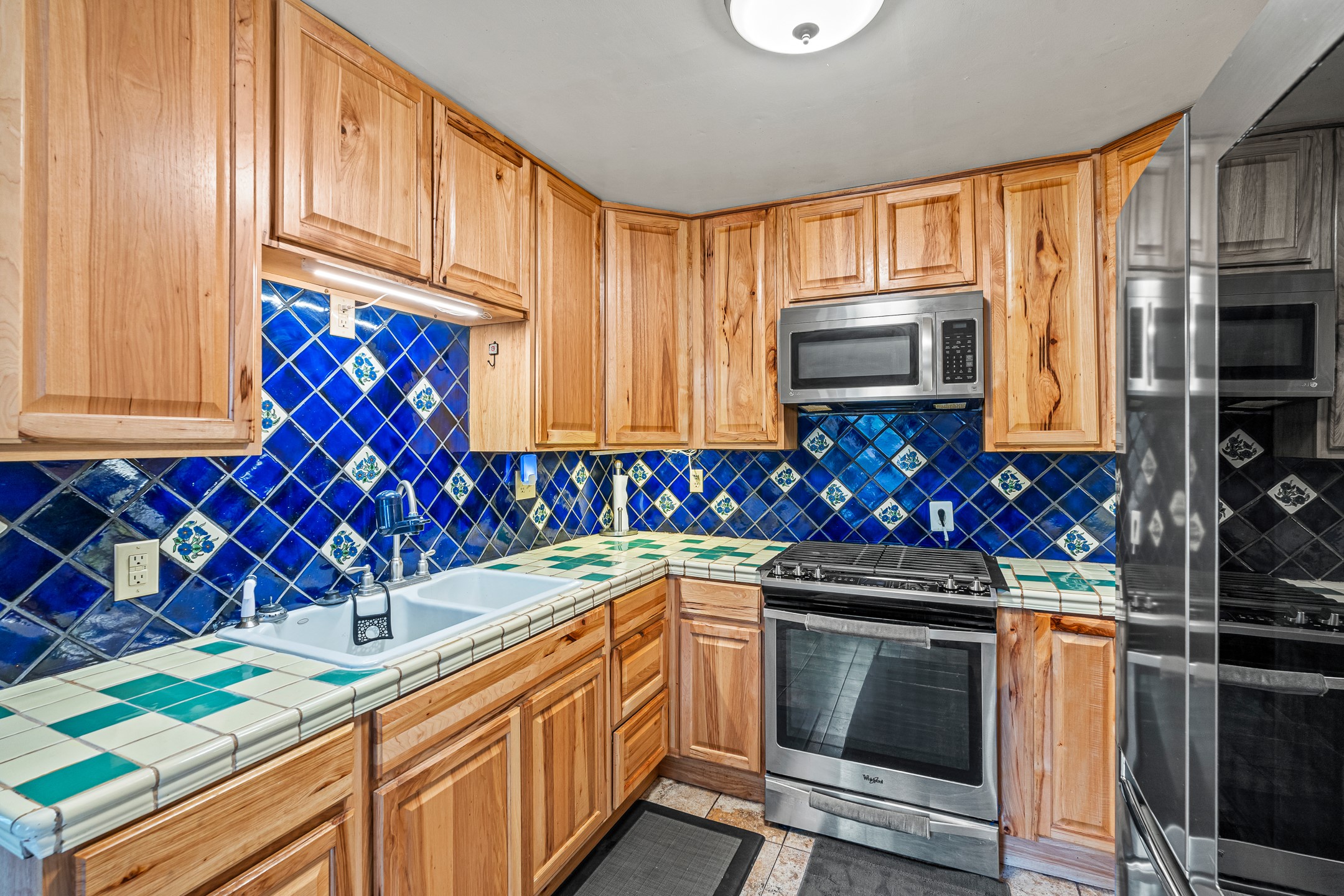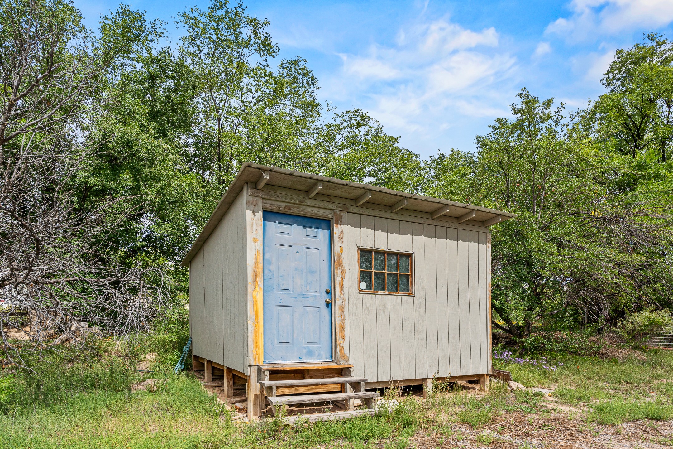 Unique Namb property featuring a 3-bed, 1 full & bath main home plus a private guest house. Owned solar conveys with sale, along with forced-air heating and central A/C for year-round comfort. Main house offers a cozy wood-burning stove and spacious layout. Guest house includes a room, kitchenette, full bath, and traditional kiva fireplace--perfect for guests, rental income, or multigenerational living. Enjoy Southwestern charm with modern efficiency in a serene setting.