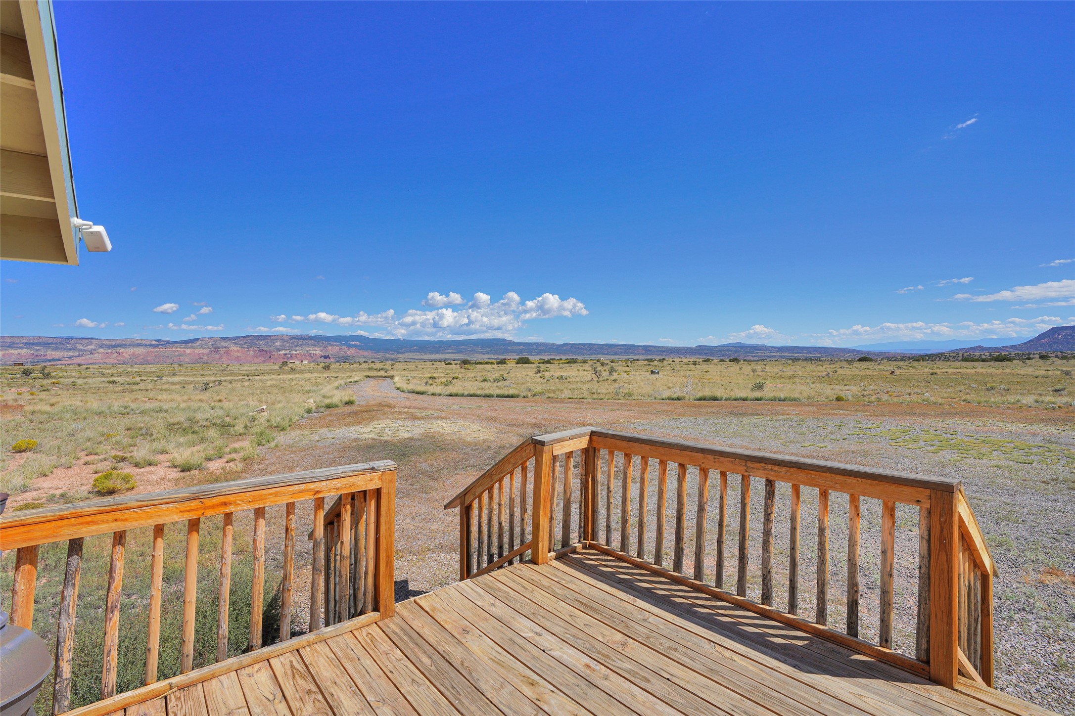 199 Private Drive 1728 in Youngsville sits on five acres with access to a private boat ramp and recreation area on Abiquiu Lake. Behind a motorized gate, the property offers both privacy and convenience. The 768-square-foot home, completed in 2020, was designed around the idea of efficient living. High ceilings, clerestory windows, and rounded corners create an easy flow through two bedrooms, a full kitchen, dining nook, living area, and three-quarter bath.Energy-efficient windows and appliances, mini-split heating and cooling, and smart-home features are already in place. The home is tied to the grid, and the solar array helps offset electric costs, with the option to add battery backup if desired. Low-flow fixtures, low or no-VOC finishes, and fire-resistant siding contribute to its durability and efficiency.The property is served by a shared well with a reverse osmosis system and a conventional septic system. From the house, the views reach across Ghost Ranch, Cerro Pedernal, and Mesa Prieta--landscapes that define northern New Mexico. With gated entry, lake access, and a home designed for efficiency, this property offers a comfortable balance between setting and design.