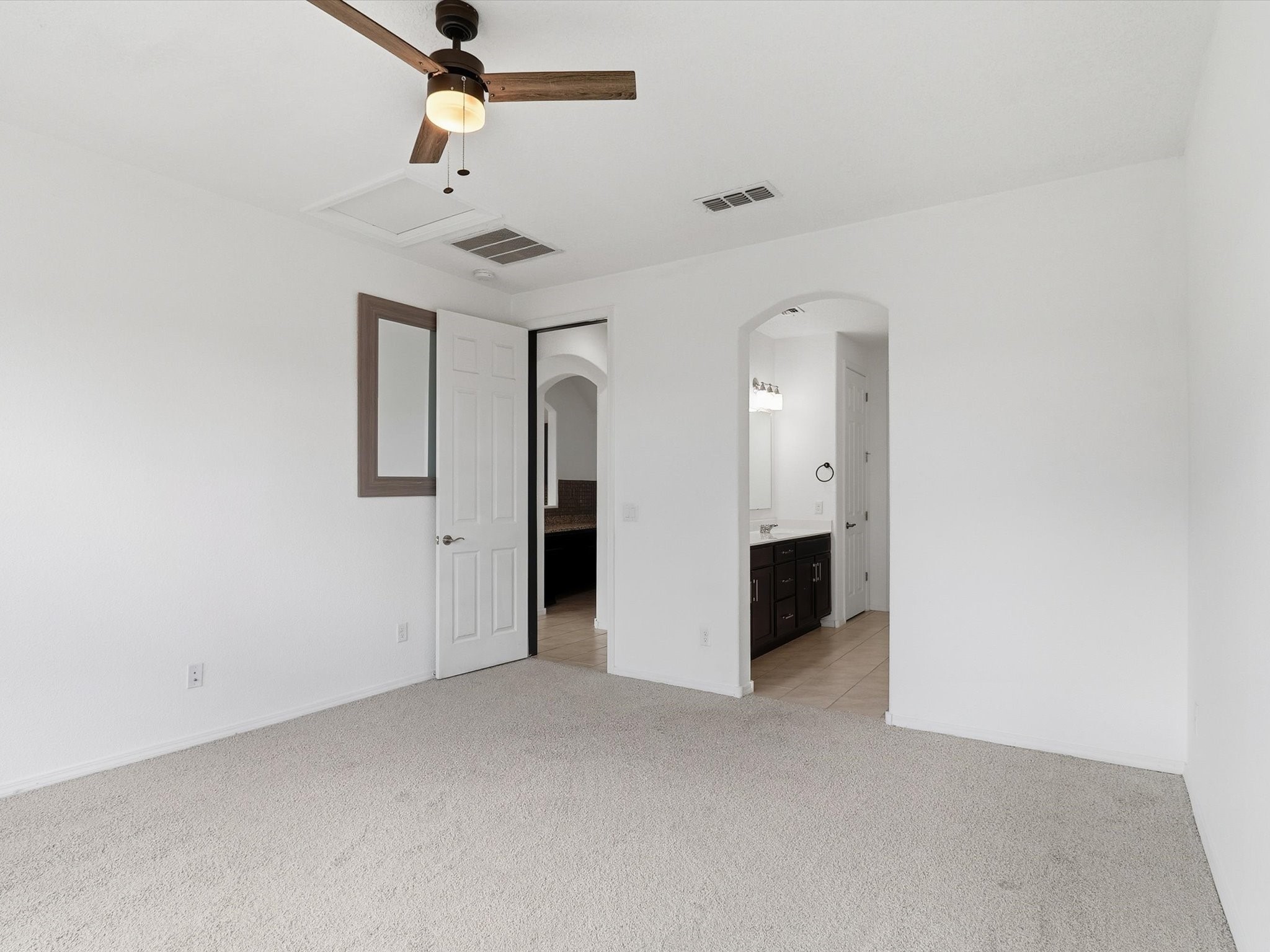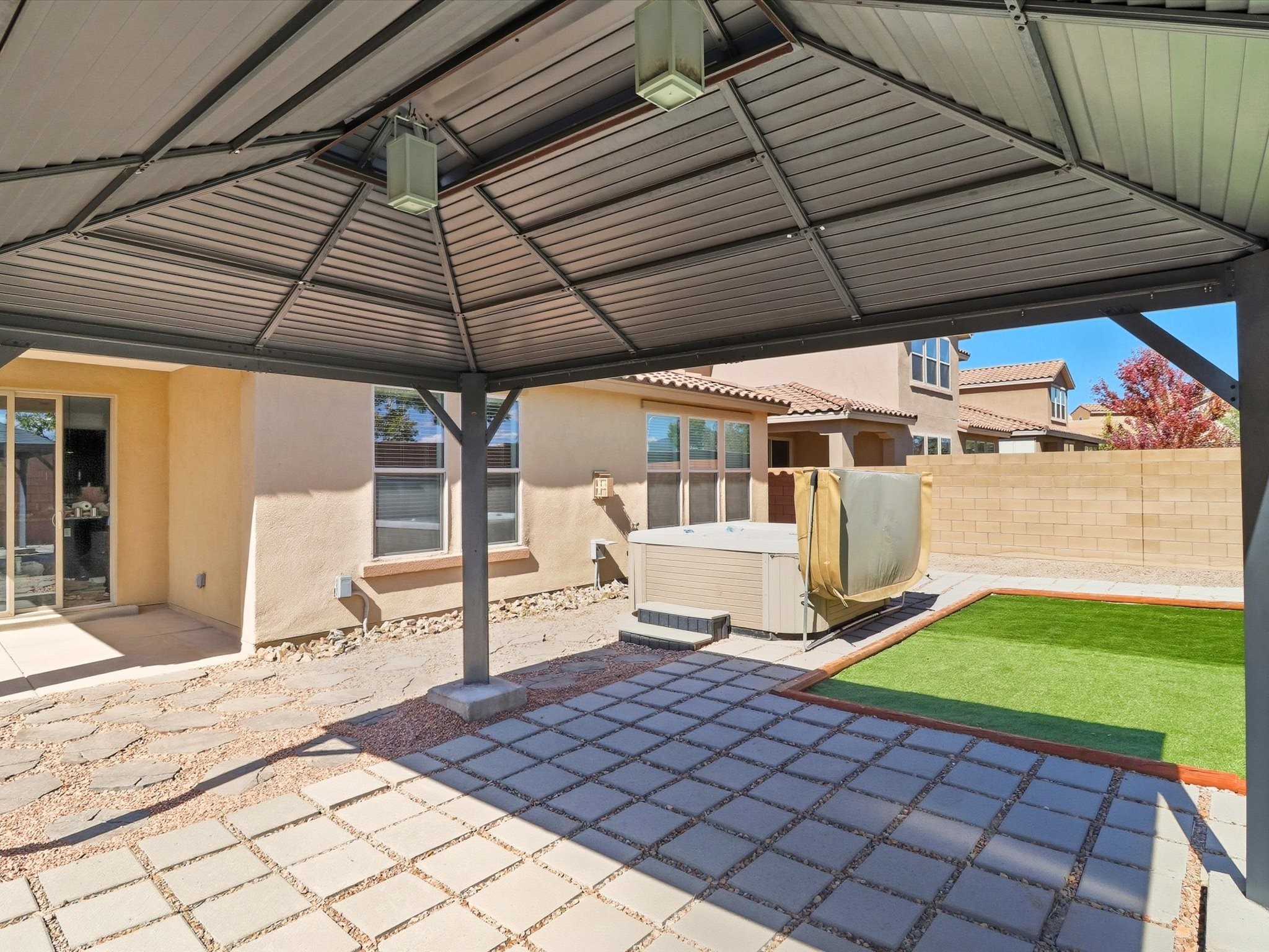 Welcome to your dream home in one of Las Soleras' most desirable neighborhoods -- this well-maintained home offers elegance, functionality, and peace of mind with warranties and new features throughout.This home has a brand-new carpet, ceiling fans in every room, and upgraded 8-foot doors, adding a touch of sophistication and spaciousness throughout. The Kitchen is with granite countertops, new backsplash, new faucet, and a brand-new refrigerator, while the bathrooms feature quartz vanities, new faucets, and upgraded shower heads.Every detail has been thoughtfully refreshed -- from the new washer and dryer to the WiFi-enabled garage door opener and new weatherproof rubber entryway perfect for winter durability. Enjoy peace of mind with the remainder of the Pulte structural warranty, AC/heater and water heater warranties, and a 6-month refurbishment warranty on the hot tub.The zeroscaped backyard is designed for low-maintenance living, complete with a 50-amp outdoor service, ideal for gatherings or future enhancements. The extended garage provides space for a workshop, and CenturyLink wiring ensures high-speed connectivity. Pet lovers will appreciate the dog door conveniently leading into the garage, while guests will love the ample parking space directly across the home and the upstairs loft with a full bath -- a perfect retreat for visitors or entertainment.Located on a perimeter lot close to mailboxes and neighborhood conveniences, this home embodies modern Santa Fe living with unmatched practicality and style.Move-in ready, fully upgraded, and built to last -- this Las Soleras gem is a rare find you don't want to miss.