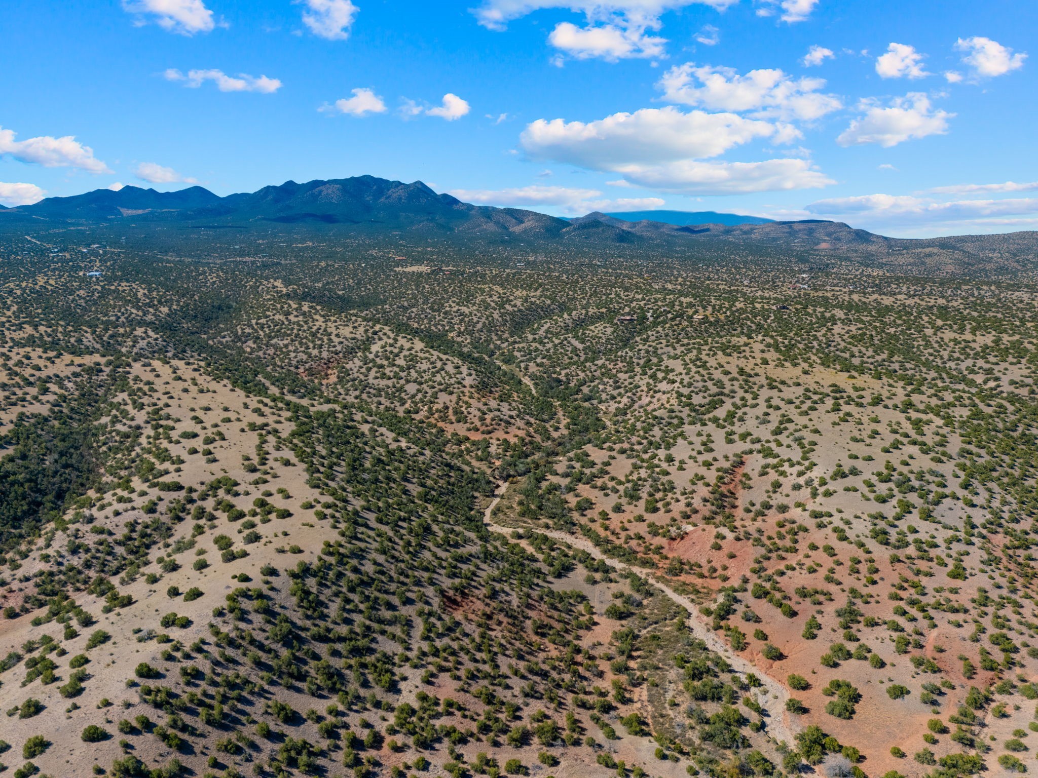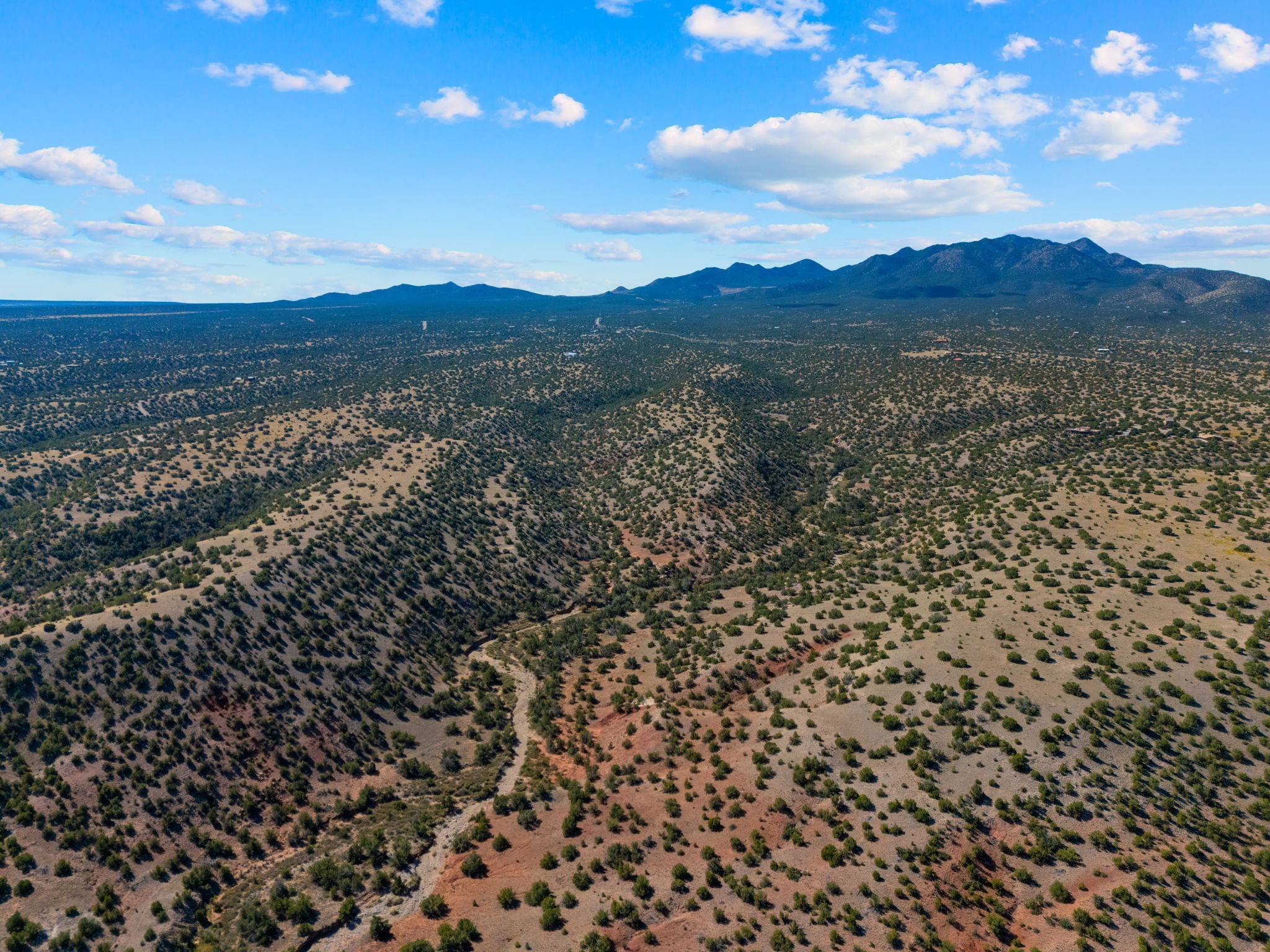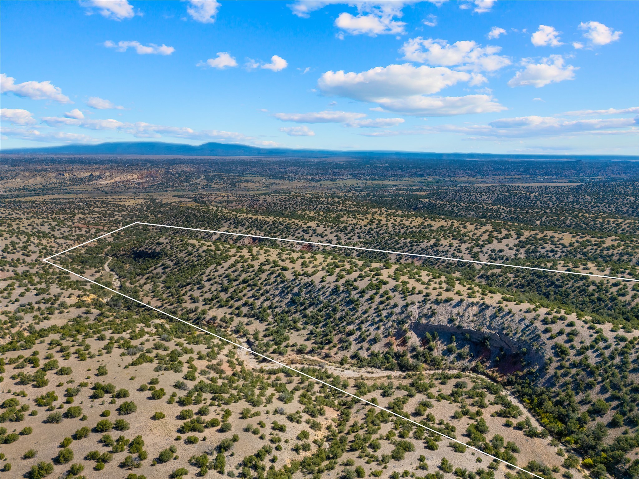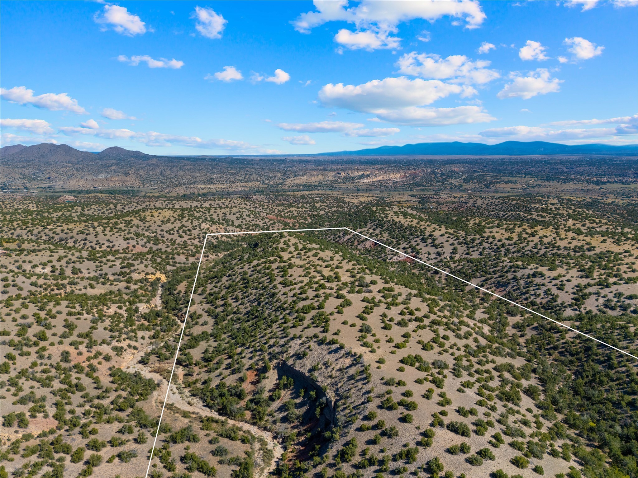 82.7 stunning acres offer unmatched quiet and privacy at the north end of the gorgeous Grenfell Ranch. The lot is comprised of pristine grassland and gentle hills, atop the mesa for stunning 360-degree views of the Cerrillos Hills, Ortiz and Jemez mountains and surrounding valleys. Additionally, the parcel includes the gorgeous west canyon, offering serene hiking and horseback riding along the arroyo. Legal easement access from Rancho De Shama Road runs to the south end of the parcel and potential build site.