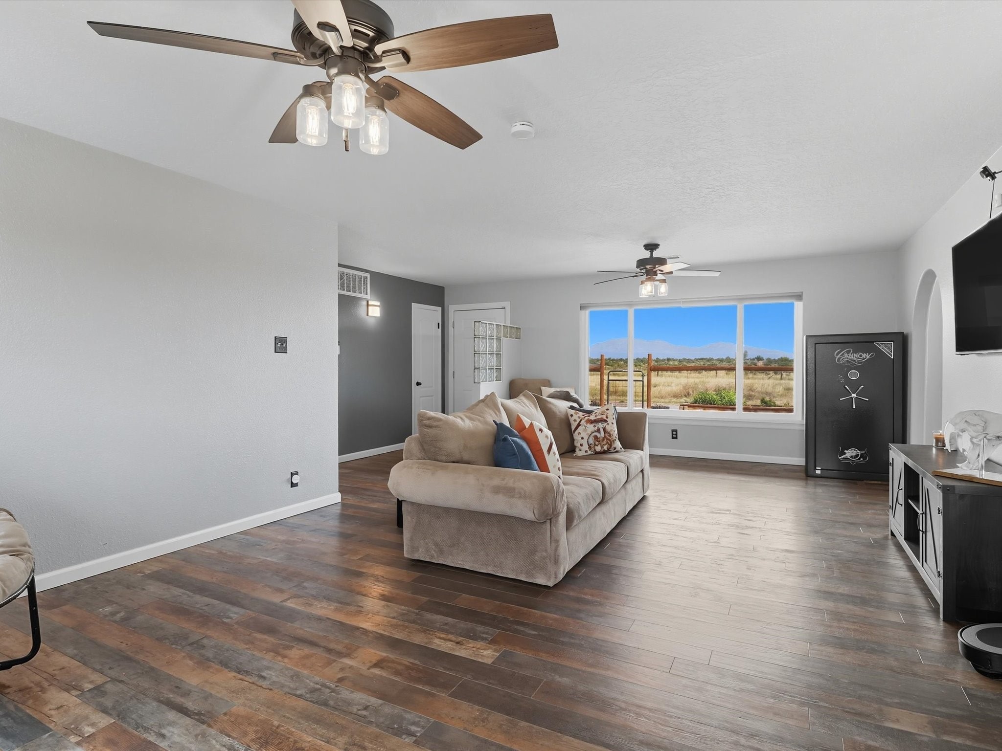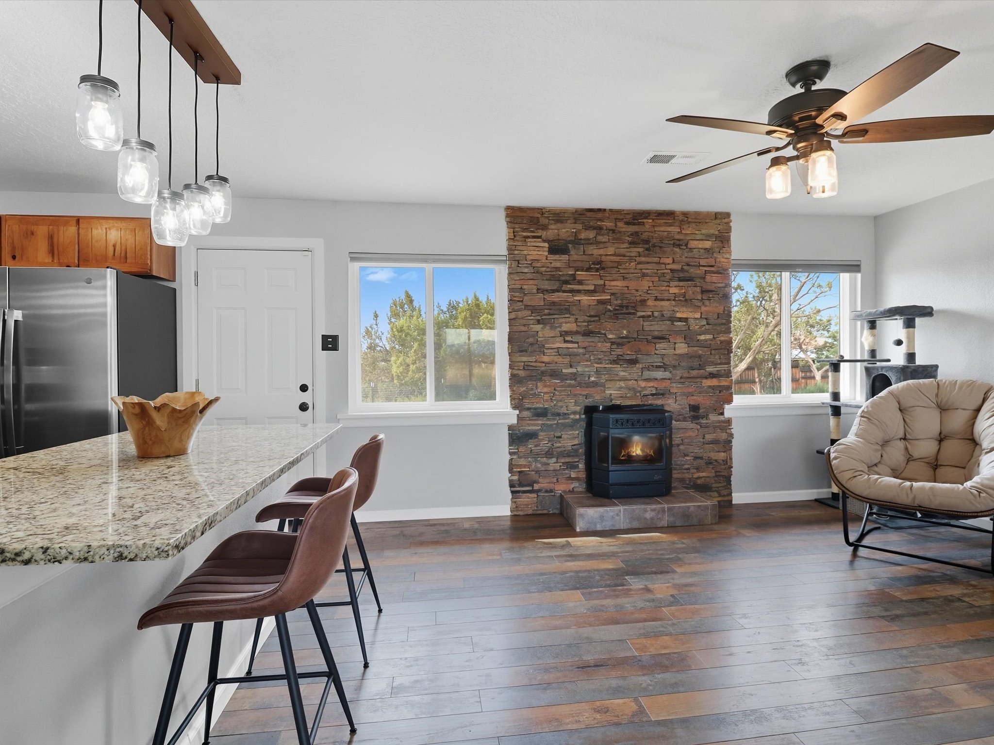 Discover peaceful, single-level living on a sprawling 3-acre lot in Edgewood, where modern luxury meets tranquil country charm. The heart of this home is the fully remodeled kitchen, featuring custom-crafted cabinetry, sleek granite countertops, and new luxury vinyl flooring that flows throughout the home. In 2021 new windows were put in the home, including a large living room window that frames a spectacular view of the mountains and surrounding landscape. The property includes a fully fenced acre ideal for pets or outdoor recreation, leaving 2 acres for horses or recreational vehicles. The spacious, detached garage offers ample room for vehicles, storage, or a workshop, catering to any hobbyist. No HOA offers unmatched freedom and flexibility. This property is full of upgrades and ready for you to move in.