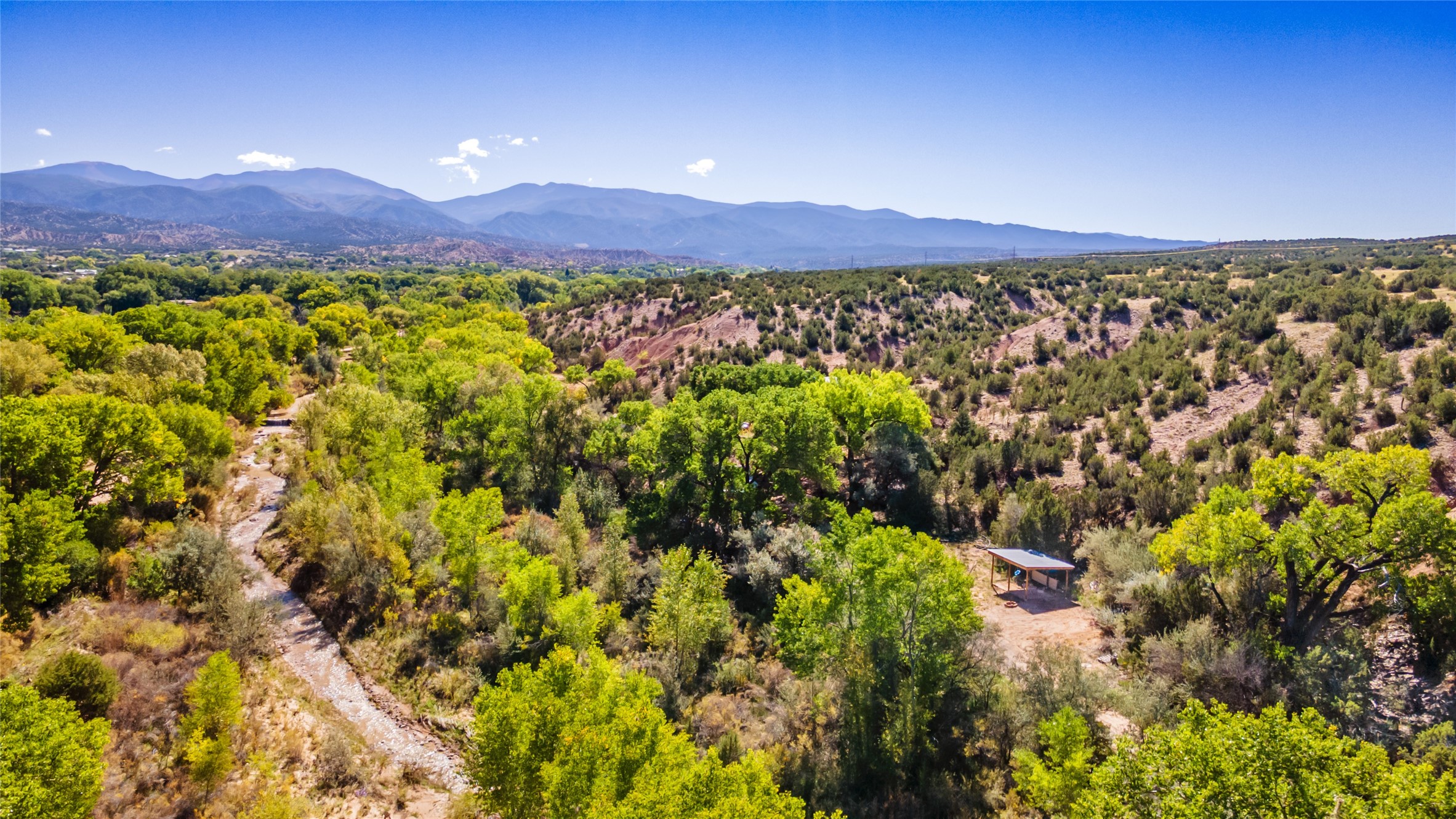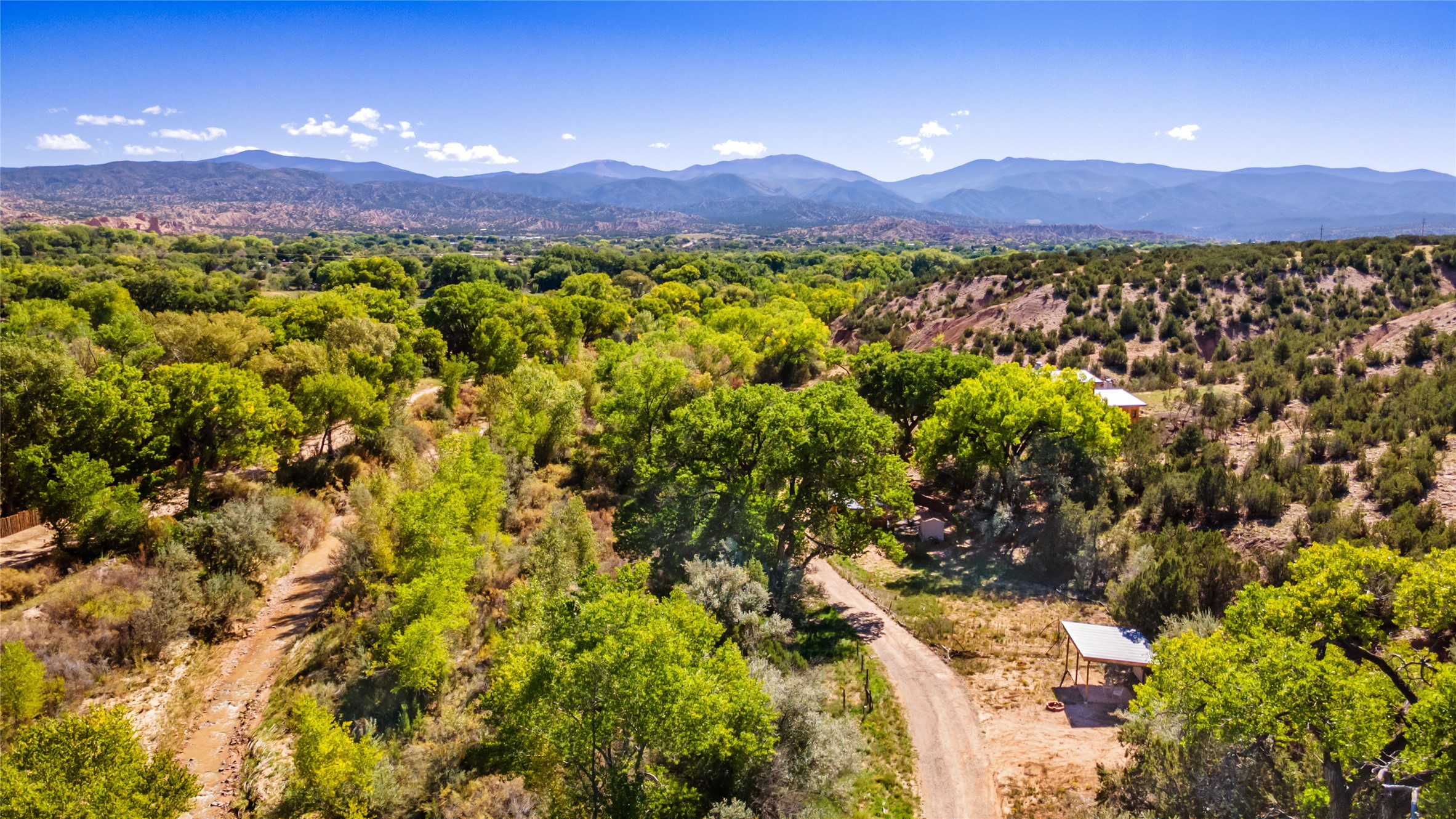 Discover a rare chance to own your own secluded retreat in Nambe with acequia water rights! This 1.58-acre property, just steps from the Rio Nambe and acequia, is dotted with fruit trees and equipped with catchment tanks and irrigation lines--perfect for a garden or small orchard. A shared well sits in a walk-in well house at the entrance, and electricity is already in place, ready to power your dream home in this private, scenic setting. With year-round beauty and tranquility, this land is a special find. Sellers may consider owner financing. Schedule your showing today to experience this beautiful piece of Nambe for yourself!