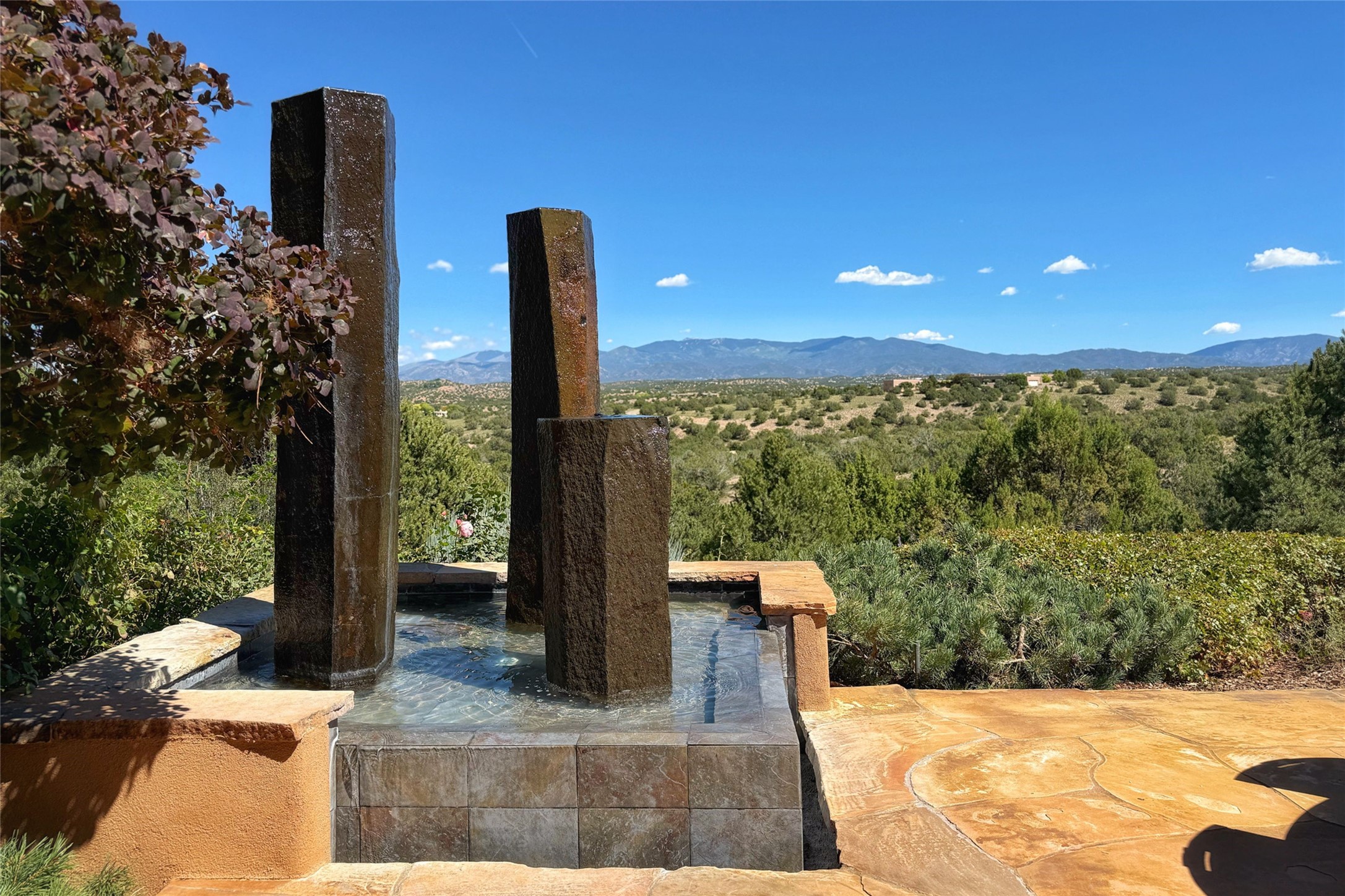 Welcome to 'The Dusty Boot', a 25.3-acre sanctuary where the spirit of the Old West meets the artistry of modern living. Set on a buildable ridgetop with sweeping 360 views of the Sangre de Cristo and Jemez Mountains, this 5,186 sqft estate combines a luxury residence, guest compound, and world-class equestrian facility within the gated community of La Tierra Nueva, minutes from Santa Fe and The Club at Las Campanas. Designed by Steven Samuelson Studio and built in 2007, the Pueblo-revival residence (2 BD/3BA) radiates rustic sophistication: a grand great room centered on a stone-and-copper fireplace beneath soaring ceilings, an infinity patio that seems to float above the desert horizon, and an outdoor chef's kitchen anchored by a wood-fired pizza oven. Your guests will enjoy comfort and hospitality in a cozy standalone guest house (1BD/2BA) just steps from the main living area. The equestrian compound (1 BD/2BA), envisioned by Pedro Marquez, extends far beyond function. Four oversized heated stalls with turnouts, automatic waterers, tack room, horse wash, arena, round pen, and horse walker support the finest in equine care. Cantilevered vigas and lush courtyards with a sala, double water-trough waterfall, and firepit create a striking architectural setting for entertaining. At the heart of the stable complex lies a spacious studio and office suite, climate-controlled, connected, and light-filled space ideal for various endeavors: a fully integrated, executive-level remote office, professional art studio, music recording and production studio, or a serene environment for yoga, pilates, tai chi, or fitness. This flexible environment bridges creativity and productivity, all within the serenity of Santa Fe's high desert. Completing the lifestyle and integrated with the exquisite landscaping are orchards, gardens, water features, and a hen house. The 'Dusty Boot' is more than a property, it is a private world where work, creativity, and leisure thrive in harmony.