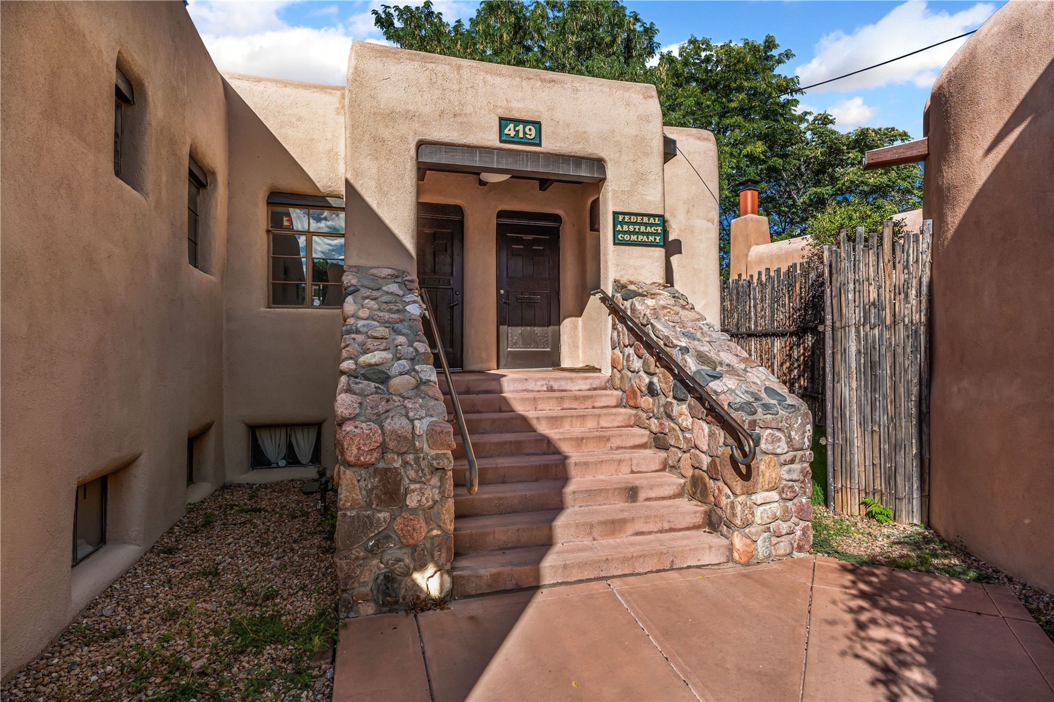 Excellent opportunity to own a mixed-use building on E. Palace Avenue in the heart of the Historic Eastside. Zoned BCD Zone 4 which includes residential and multiple commercial uses. Two-story building with elevator comprised of 3,523 sq. ft. Onsite parking. This is a one-of-a-kind property. Adobe (Primarily) and Frame construction; building is commercially wired and plumbed. Outside security lighting and security/fire alarm. 8 parking spaces and storage unit conveys with sale. Ideally located just minutes from the downtown historic plaza and Canyon Rd.