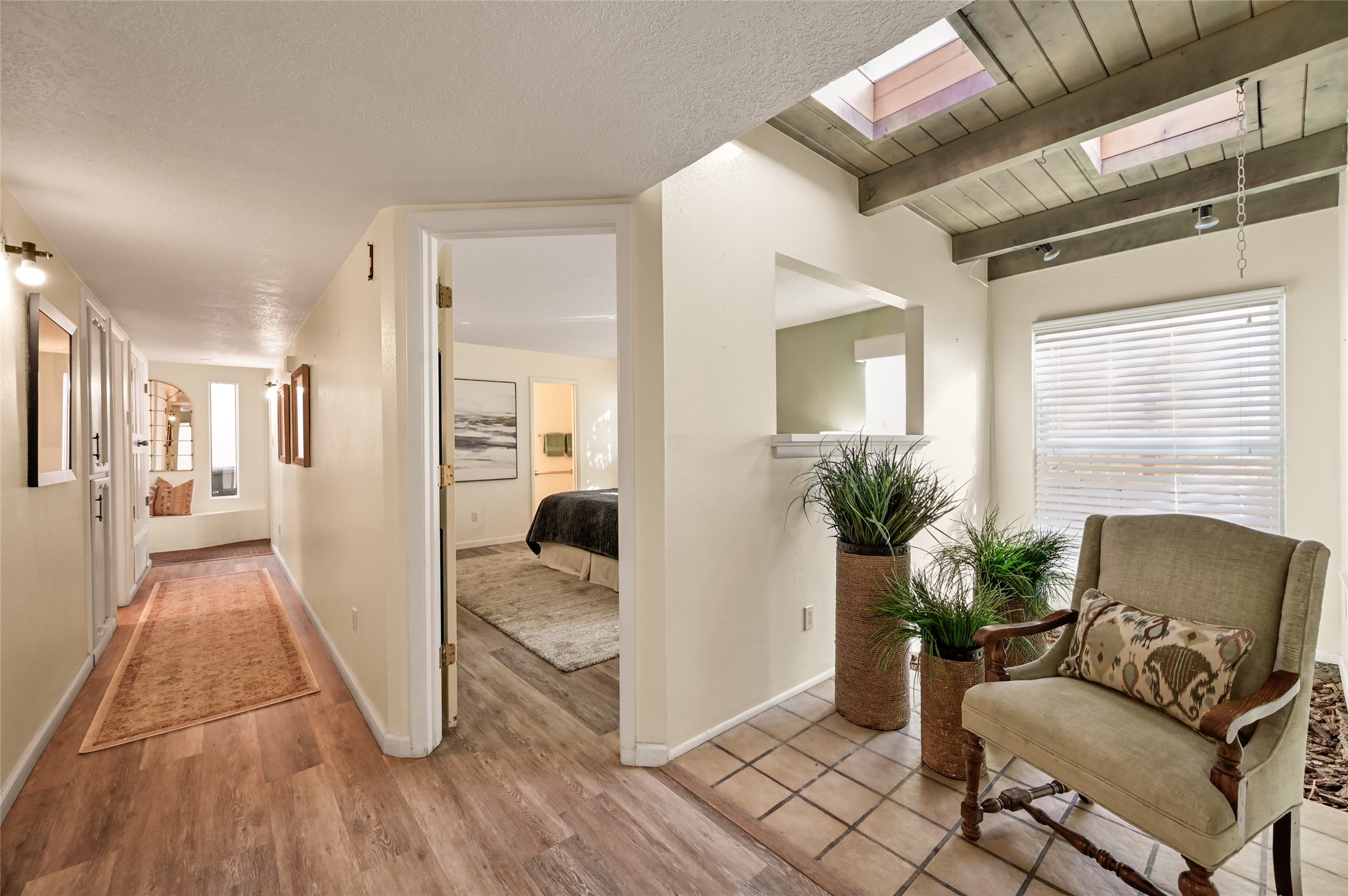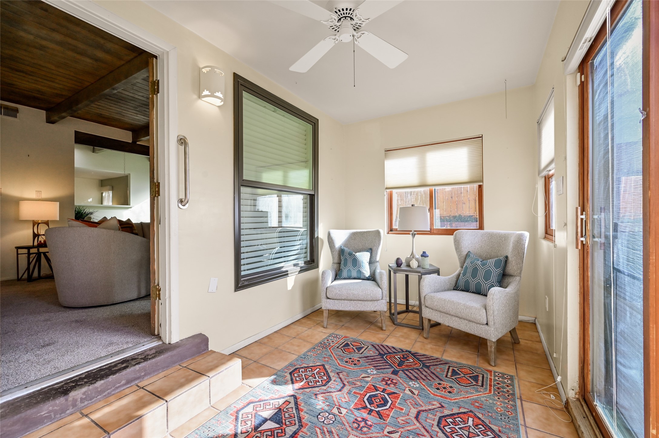 Step into this charming 2-bedroom, 2-bath retreat of approximately 1,384 sq ft in the desirable Park Plazas neighborhood of Santa Fe. This home offers an exceptional blend of comfort, potential and outdoor space.Inside, the residence showcases a flowing open-living concept anchored by a living room with a kiva fireplace and rich New Mexico character. The adjacent kitchen and dining area afford functionality and ease for daily living and entertaining. Two well-sized bedrooms provide room for guests, a home-office or creative studio, and the full bath completes the thoughtfully arranged floorplan.Outside, the expansive lot offers unique potential-- imagine a private terrace or garden oasis, within a serene, tucked-away setting yet minutes from city conveniences. Walkable trails, community green space and an active HOA atmosphere make Park Plazas a unique address in the Santa Fe market.