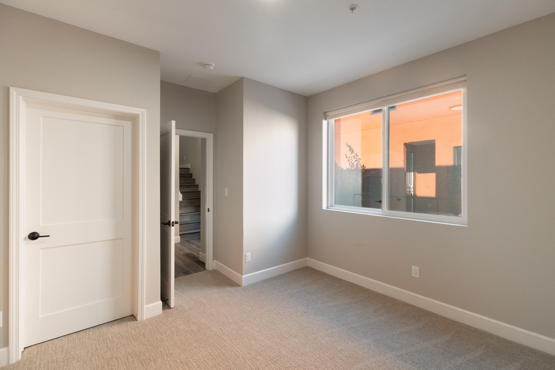 Welcome to Unit #45 at Zocalo, Santa Fe--A refined interior unit that perfectly melds luxury with comfort. As you step into the inviting foyer, you are presented with two enticing options: descend to the lower level where the expansive great room awaits, complete with modern grey toned, sophisticated brushed nickel finishes, and contemporary maple-finished flooring that radiates modern elegance. This level also houses the well-appointed kitchen and provides access to the beautifully landscaped patio, ideal for both vibrant entertainment and serene relaxation.Alternatively, ascend to the upper level where you will find the luxurious primary suite, featuring a cozy second fireplace that creates an opulent sanctuary perfect for restful nights. Atop boasts a junior suite offering additional comfort and privacy.