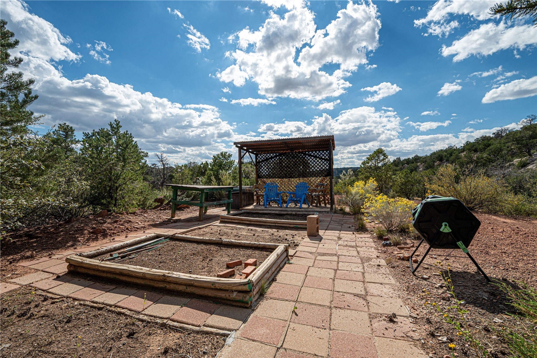 Welcome to your private Southwestern sanctuary--an enchanting 3-bedroom, 2-bathroom retreat nestled on 6.5 acres of beautifully landscaped land. Horses allowed! Acreage backs to preserved land. From the moment you step inside, you're greeted by the warmth of traditional wood vigas and the inviting glow of a kiva fireplace.The thoughtfully designed layout offers two spacious bedrooms and a full bathroom on the main level, perfect for guests or family. A bonus living area opens to a gated courtyard, creating a peaceful space for morning coffee or evening gatherings under the stars. Upstairs, the primary suite is a true haven, featuring a wood-lined deck with breathtaking mountain views and a bonus room ideal for an art studio, yoga space, or home office.Outside the magic continues to a shaded gazebo, perfect for relaxing or entertaining. A separate outbuilding offers endless possibilities--whether you dream of a workshop, creative studio, or guest space. The covered carport includes additional storage. There is no HOA.This property is more than a home--it's a lifestyle. A rare opportunity to embrace tranquility, creativity, and the natural beauty of New Mexico, all within your own private oasis.