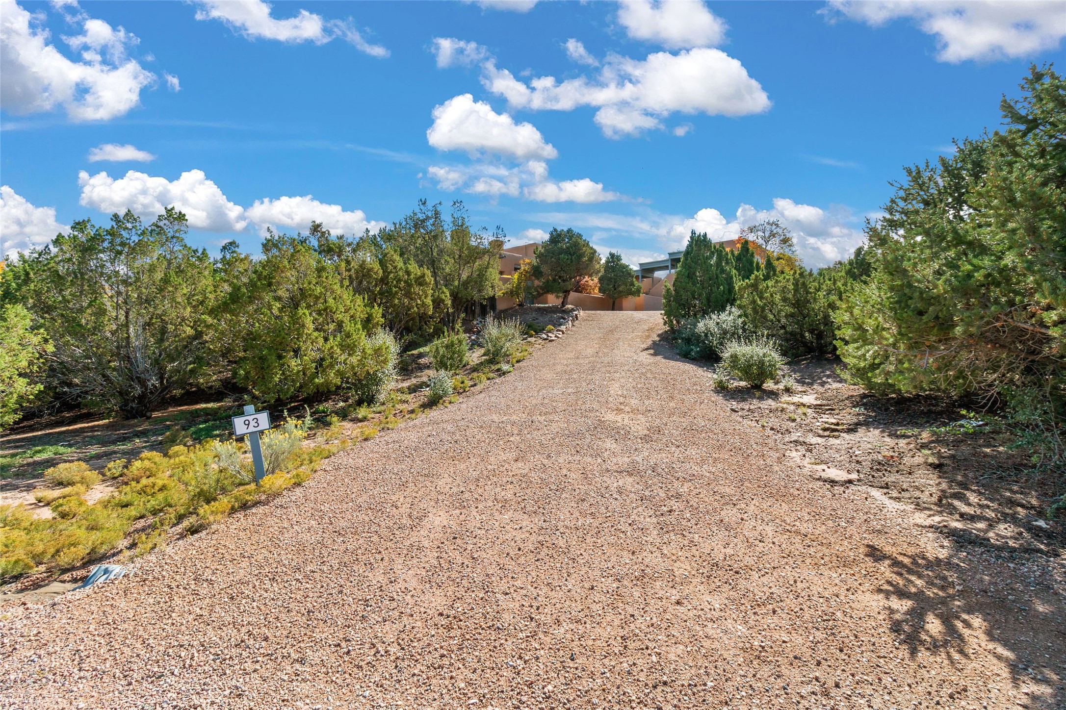 The story goes that when John Crosby (the original developer and founder of the Santa Fe Opera) chose a lot for their model, he chose this interior Casas de San Juan lot due to it's seclusion, privacy, and spectacular views. The main house, separate guest house, and heated swimming pool are singular in the condominium configuration in the subdivision. The living room features a high ceiling and glass window wall the inspire "Wow" when one walks in the home...it also features a wet bar, corner kiva fireplace, and a wall for media. The newly installed/renovated kitchen (by renowned kitchen designer Jeanne') features stone counter tops, Sub-Zero and Kitchen Aid appliances with a range/oven and a 2nd oven for big togethers. The kitchen space features high ceilings and lots of light. The over-sized Primary suite again features the views, a corner kiva fireplace, and a beautifully renovated full bath with separate tub and shower. The second large bedroom suite is on the other end of the home for privacy, and the home is rounded out by a 3rd bedroom and hallway full bath. The separate guest house sits atop the garage and is a welcome retreat from the main house with lots of space, privacy and comfort. To the east of the main part of the home is a large courtyard/garden area that provides plenty of options for outdoor living. And the large lap pool (41 x 12) sits to the north and is fenced in with a cabana, kiva fireplace and a barbecue area. The home has forced air heat and refrigerated air conditioning, w/ supplemental heat & AC via mini-split in the north bedroom suite and in the guest house. The home has a wired sound system, and utilizes a shared well and septic via the HOA. Casas de San Juan is a gated subdivision accessed by the Main Entrance front gate staffed during the day for added Security.
