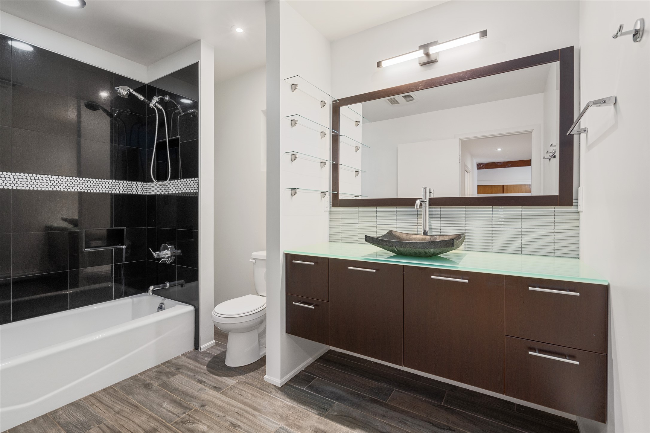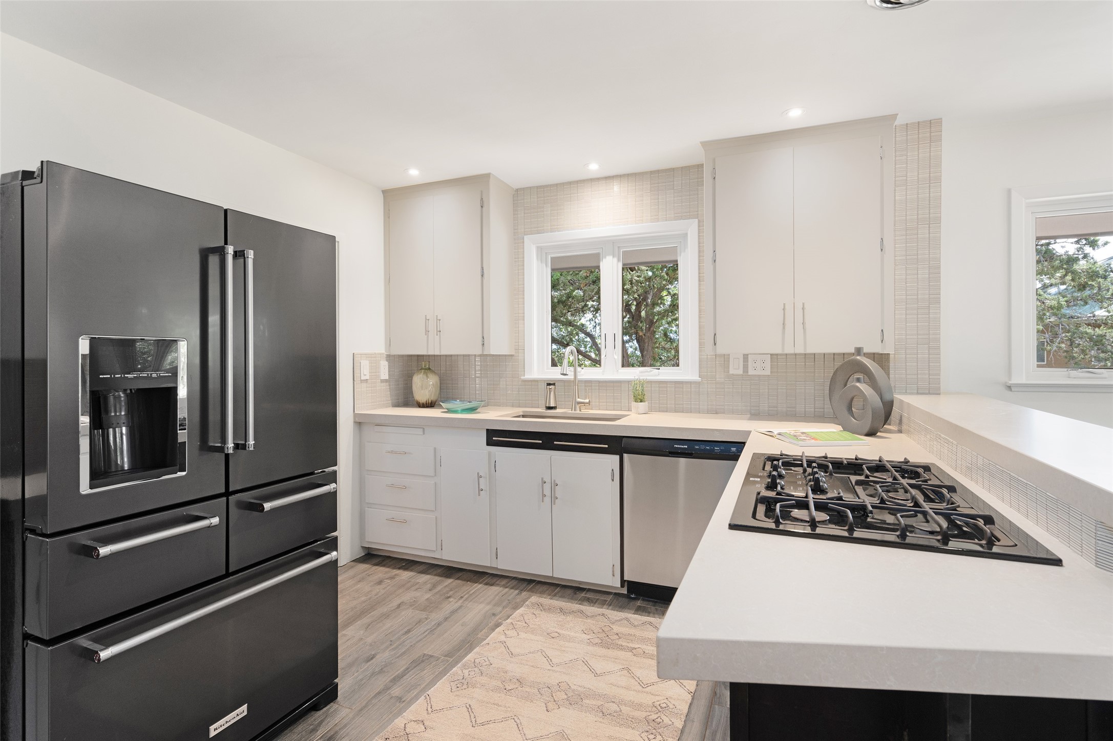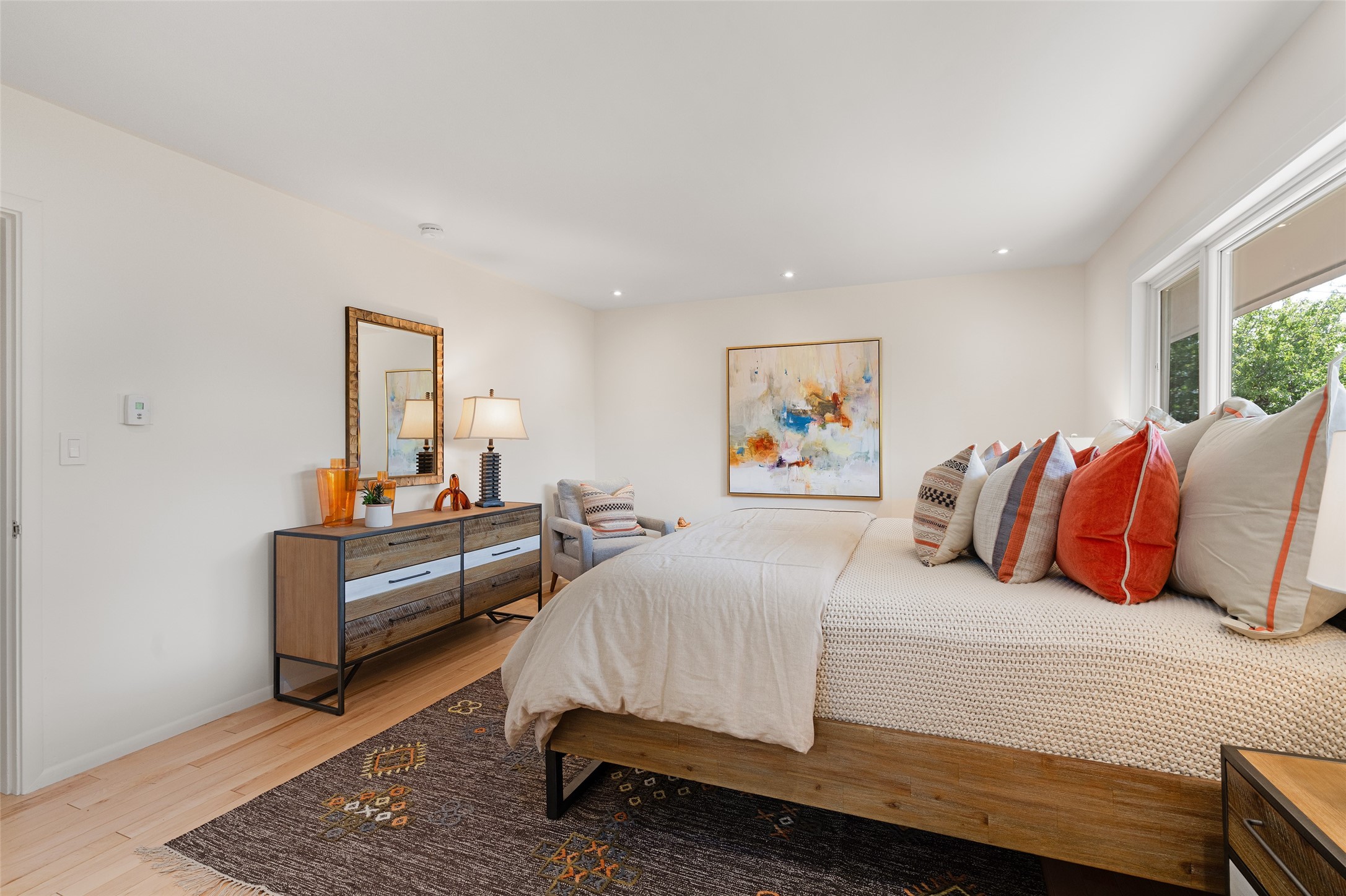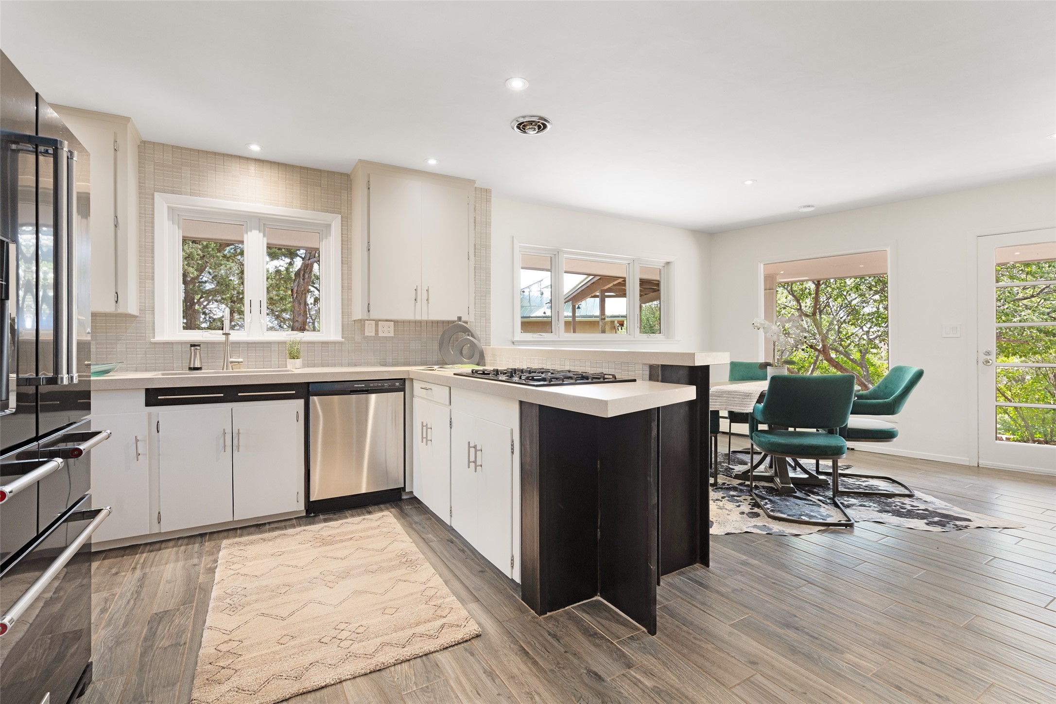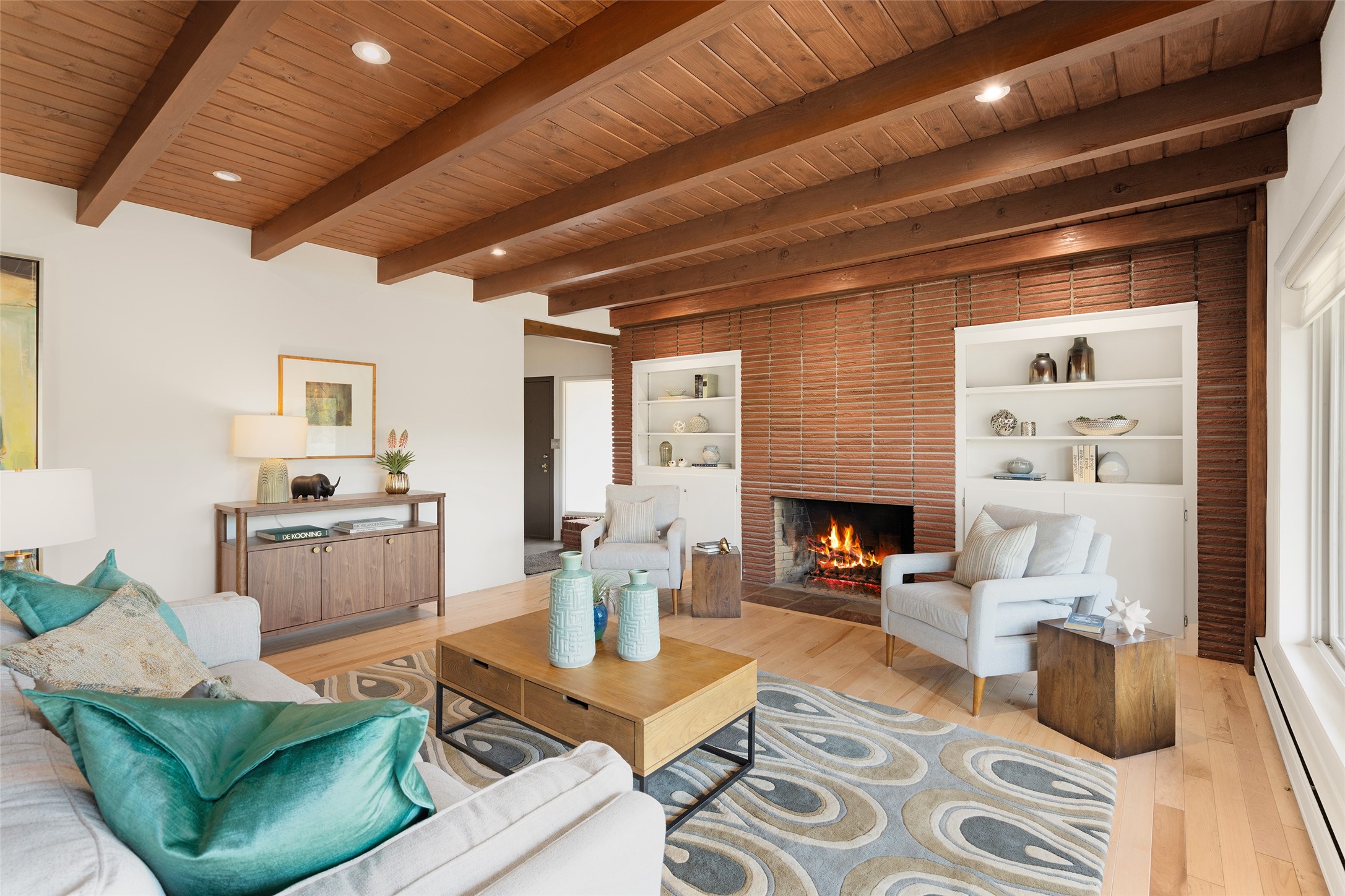 Set apart from the ordinary and just 2.5 miles from the Santa Fe Plaza, this striking custom Stamm home blends classic Northern New Mexico pitched-roof architecture with timeless Santa Fe charm. Sited on a generous 0.70-acre lot with expansive views of the foothills and Ortiz Mountains, this home offers a rare sense of space and privacy -- all while keeping you close to the heart of town. Thoughtfully renovated throughout, the main residence features three bedrooms, wood floors, and a warm, wood-plank ceiling with exposed beams. The living room centers around a charming brick fireplace flanked by custom bookcases, and the stylish kitchen boasts cool glass tile backsplash, great gas cook top, ample storage, and even a wood burning fireplace for ambiance. The sunlit primary suite includes California Closets and a beautifully modern bath with a large walk-in shower. A fully operational photovoltaic solar system helps keep energy costs low. A standout feature of the property is the detached 750-square-foot studio -- complete with its own 100-amp service, bath, soaring ceilings, custom wrought iron doors, and an upstairs loft (not included in the listed square footage). Whether you're an artist, entrepreneur, or simply seeking bonus flex space, this studio delivers. Recent improvements include a Propanel roof, new Anderson windows, high efficiency tankless water heater, remodeled bathrooms, new tile and wood flooring, updated kitchen countertops (2024), all-new interior lighting (2023), and fresh paint throughout (2025). This is a one-of-a-kind offering that feels private and peaceful -- yet is mere minutes from galleries, dining, and all the cultural vibrancy of downtown Santa Fe.