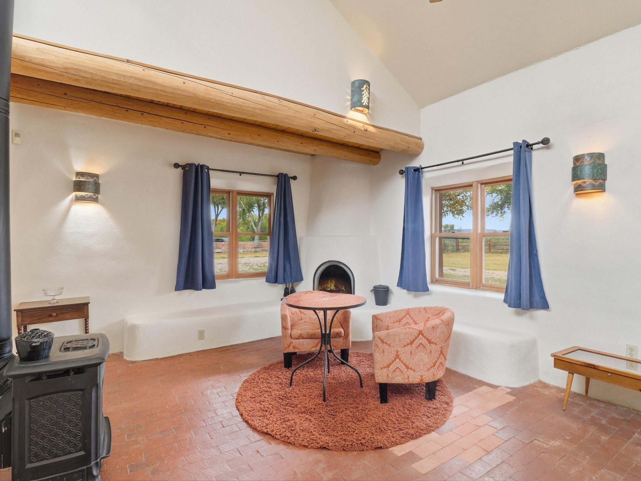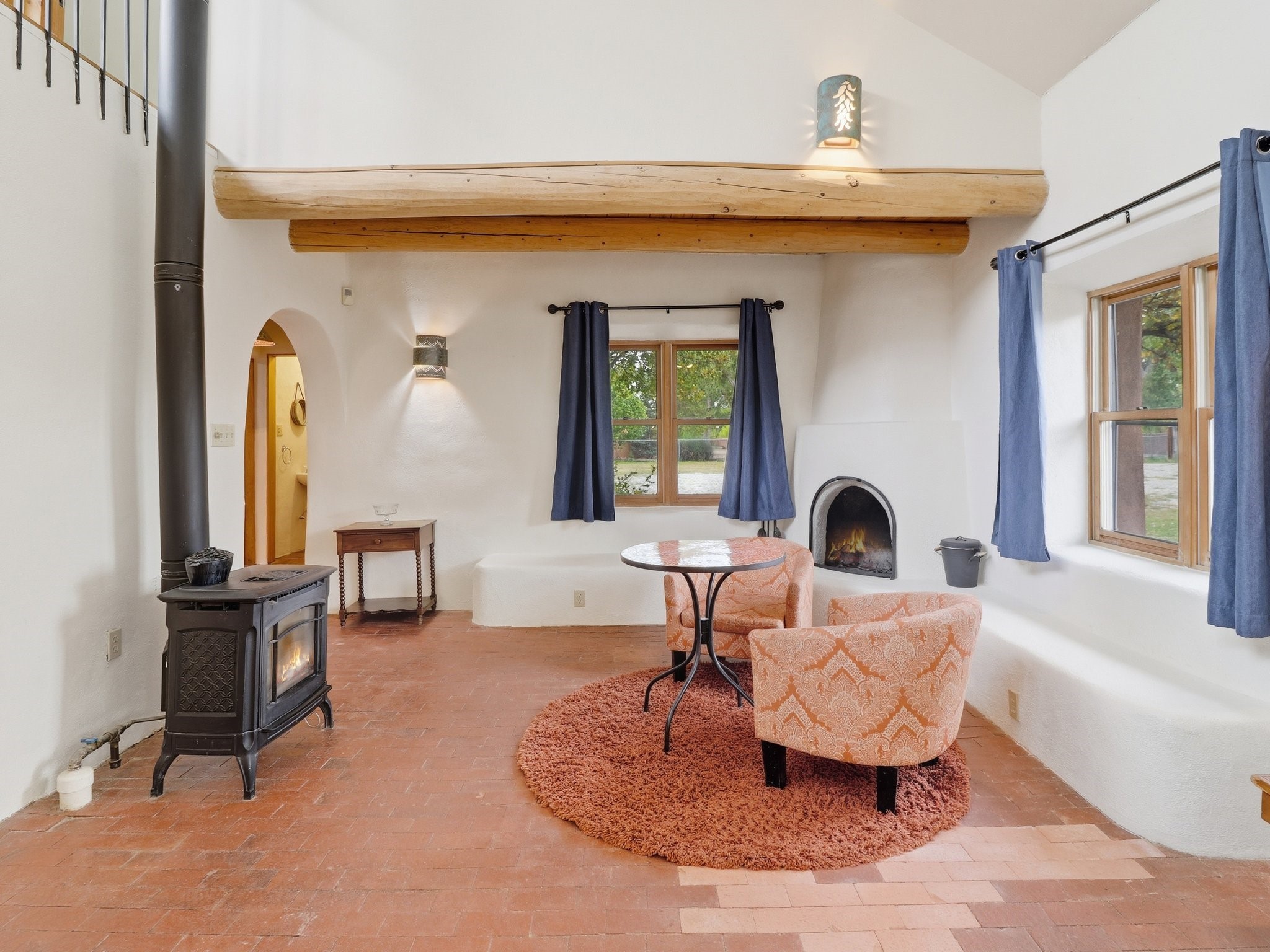 Your Private Northern New Mexico Retreat -- Two Residences, One Unforgettable PropertyNestled in the serene Pojoaque Valley and perfectly positioned between Santa Fe's historic charm and Los Alamos' thriving innovation hub, 40 County Road 84B is a rare find offering two distinct homes on a beautifully landscaped 1.46-acre parcel.The main residence is a warm and inviting 4-bedroom, 2.5-bath adobe-style home that exudes classic New Mexico character. Soaring with natural light, this 2,450 sq ft home boasts both a cozy family room and a separate living room, ideal for multi-generational living or work-from-home flexibility. Rich wood and brick accents, traditional touches, and thoughtful flow create an atmosphere of rustic elegance. Step onto the upstairs deck or into the walled backyard to soak in tranquil views of cottonwoods, distant mesas, and the Ortiz Well Ditch that mirrors the shimmer of a pond just across the way.Complementing the main house is a 927 sq ft two-bedroom casita, currently a successful short-term rental generating over $24,000 in annual income. With its own private yard and entrance, it offers versatility as a guesthouse, in-law suite, or income-producing asset from day one.Additional features include: Classic adobe construction with metal roofing, two fireplaces and baseboard heating, a private well with water rights, landscaped and natural grounds with mature trees, two storage units and ample off-street parking and no HOA restrictions.Located just 20 minutes to Los Alamos National Lab and 25 minutes to downtown Santa Fe, this property is ideal for LANL commuters, artists, remote workers, or anyone seeking the balance of rural tranquility and urban access. Only minutes to groceries, schools, and cultural attractions, this hidden gem is the perfect base for Northern New Mexico living.Whether you're envisioning a multi-generational compound, live-work space, or income-generating retreat, 40 County Road 84B delivers lifestyle and opportunity in one extraordinary package.