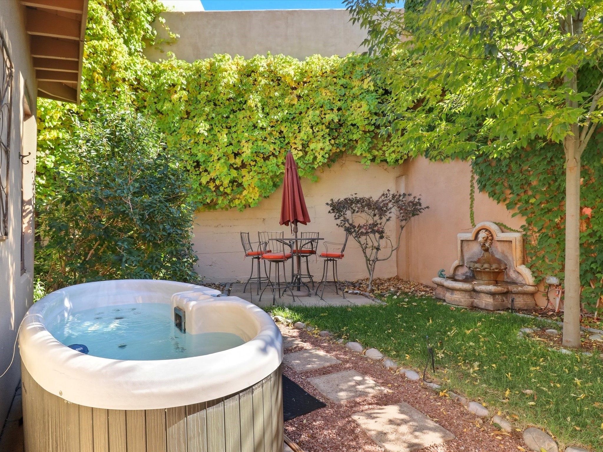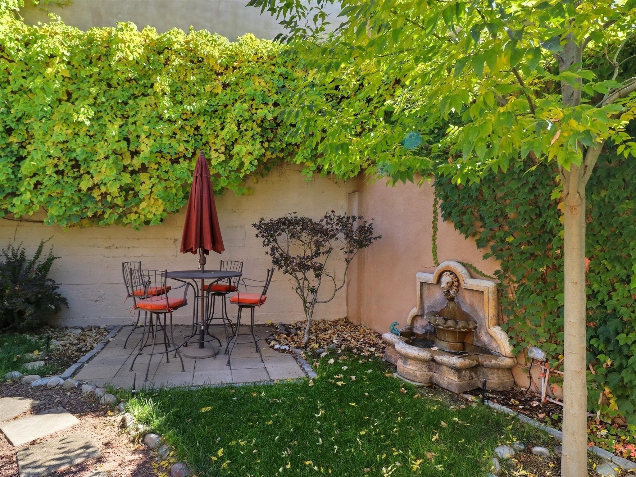 One of Santa Fe's most desirable locations. This historically 'contributing' home on East Agua Fria is a light-filled jewel, perfectly situated to enjoy all the vibrancy of Santa Fe's Railyard District and Santa Fe's Downtown. Imagine being just blocks away from world-class art galleries, dining, shopping, movie theaters, and music. The Santa Fe Farmers Market, a beloved community hub, is just a few blocks to the south. This charming 1900 Craftsman Bungalow home offers four bedrooms, 2 baths, many thoughtful upgrades, double adobe construction with exterior stone base pillars, creating a timeless, inviting and quiet home. A gracious interior - original stenciled fir floors, bay windows, gorgeous antique lighting fixtures, a crisp black and white kitchen. Additionally, this property offers an attractive flexibility with two distinct areas, each featuring separate entrances and sitting areas providing excellent options for guests or potential rental income. The home boasts a charming, deep Craftsman-style porch, perfect for relaxing and enjoying the neighborhood. The current owners have meticulously cultivated romantic garden areas over many years, showcasing roses, wisteria, daylilies, and climbing vines, maintained by an automatic drip system. The large rear patio serves as an urban sanctuary, ideal for entertaining or simply unwinding. Further enhancing convenience and livability are the unusually generous gated off-street parking in the front, a single-story design and a 200-square-foot storage area in the rear. Come see and be captivated! Neither Listing Brokers nor Seller warrants the square footage of the home or lot. If the size of the home or lot is of material consideration to the Buyer, then the Buyer should have them measured. Tax Levy is from the Assessor website. All fires depicted are photo-shopped. Buyer to verify the functionality of the fireplace.